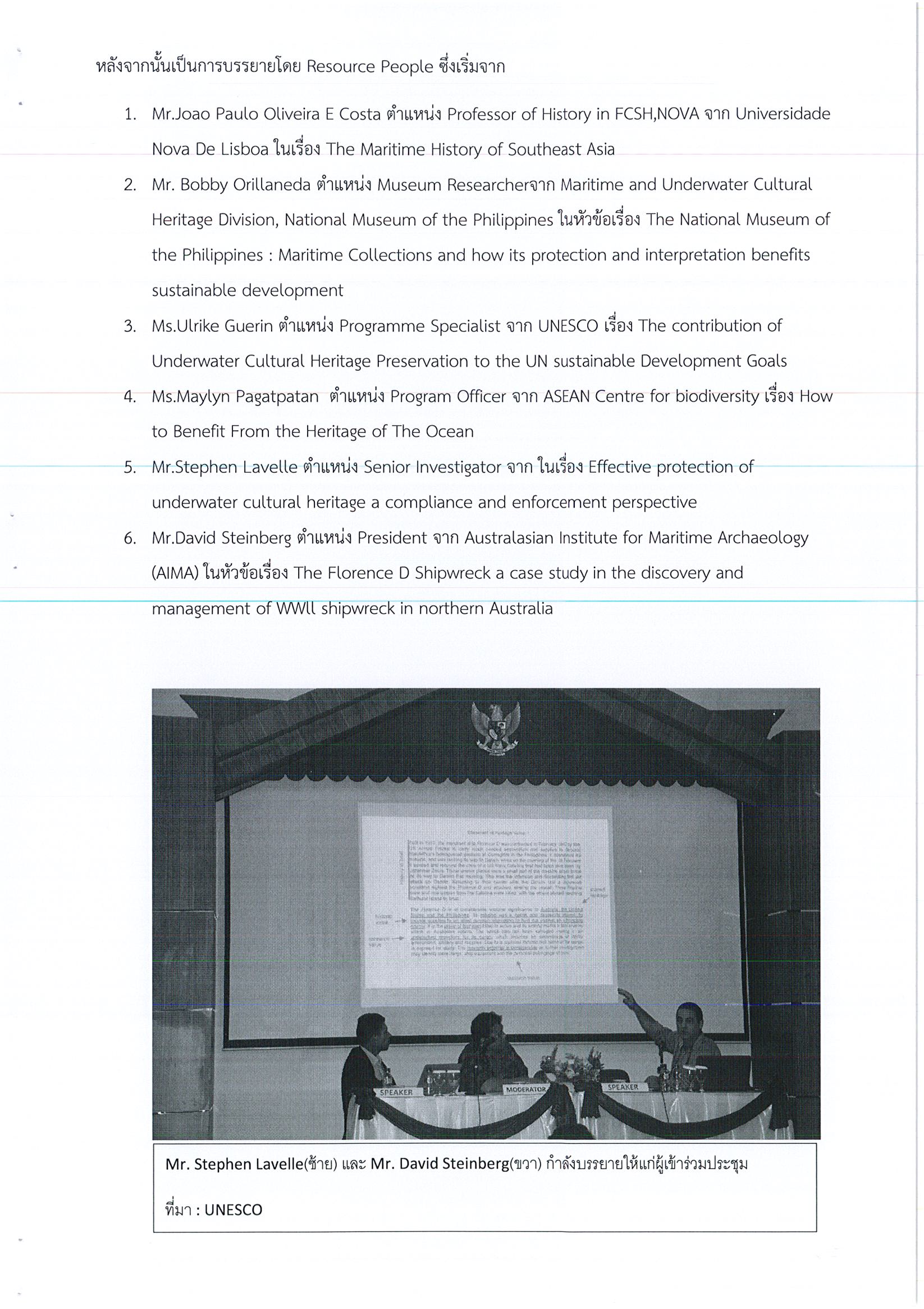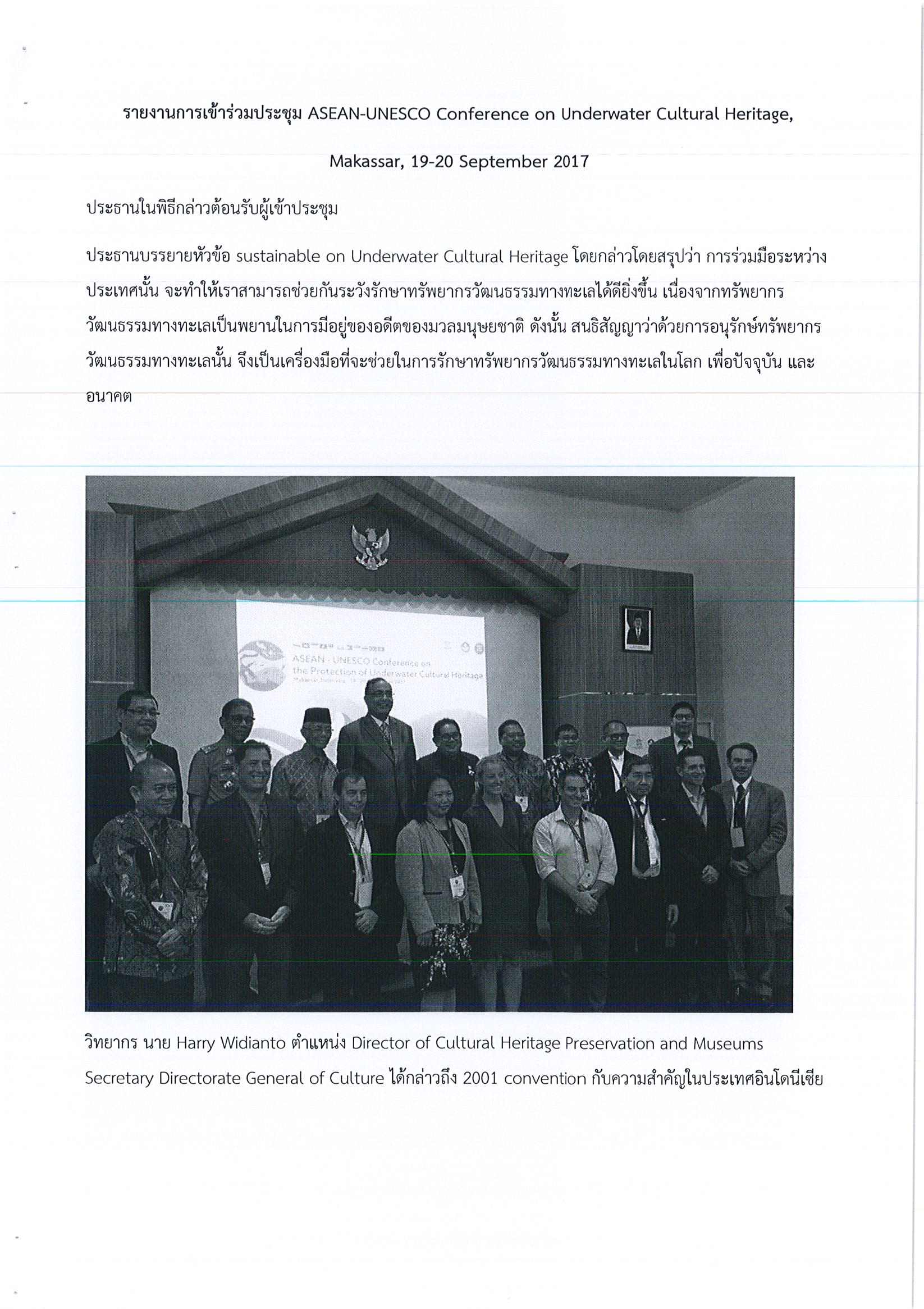 รายงานการเดินทางไปราชการ ณ สาธารณรัฐอินโดนีเซีย ระหว่างวันที่ 18 – 21 กันยายน 2560 โครงการ ASEAN – UNESCO Conference on the Protection of Underwater Cultural Heritage