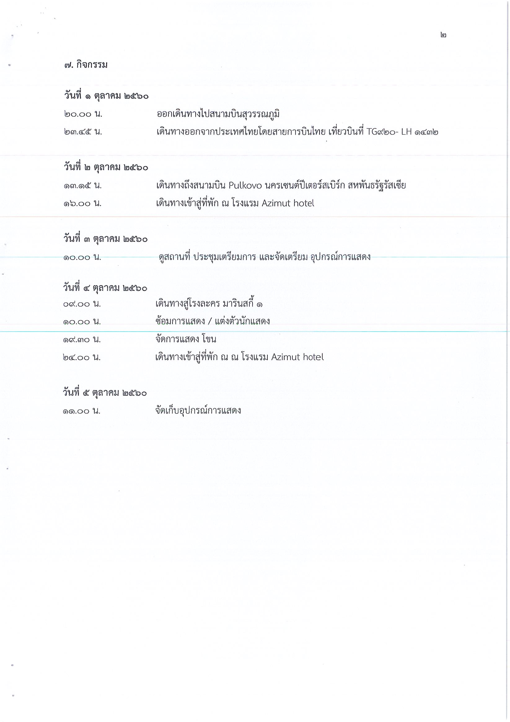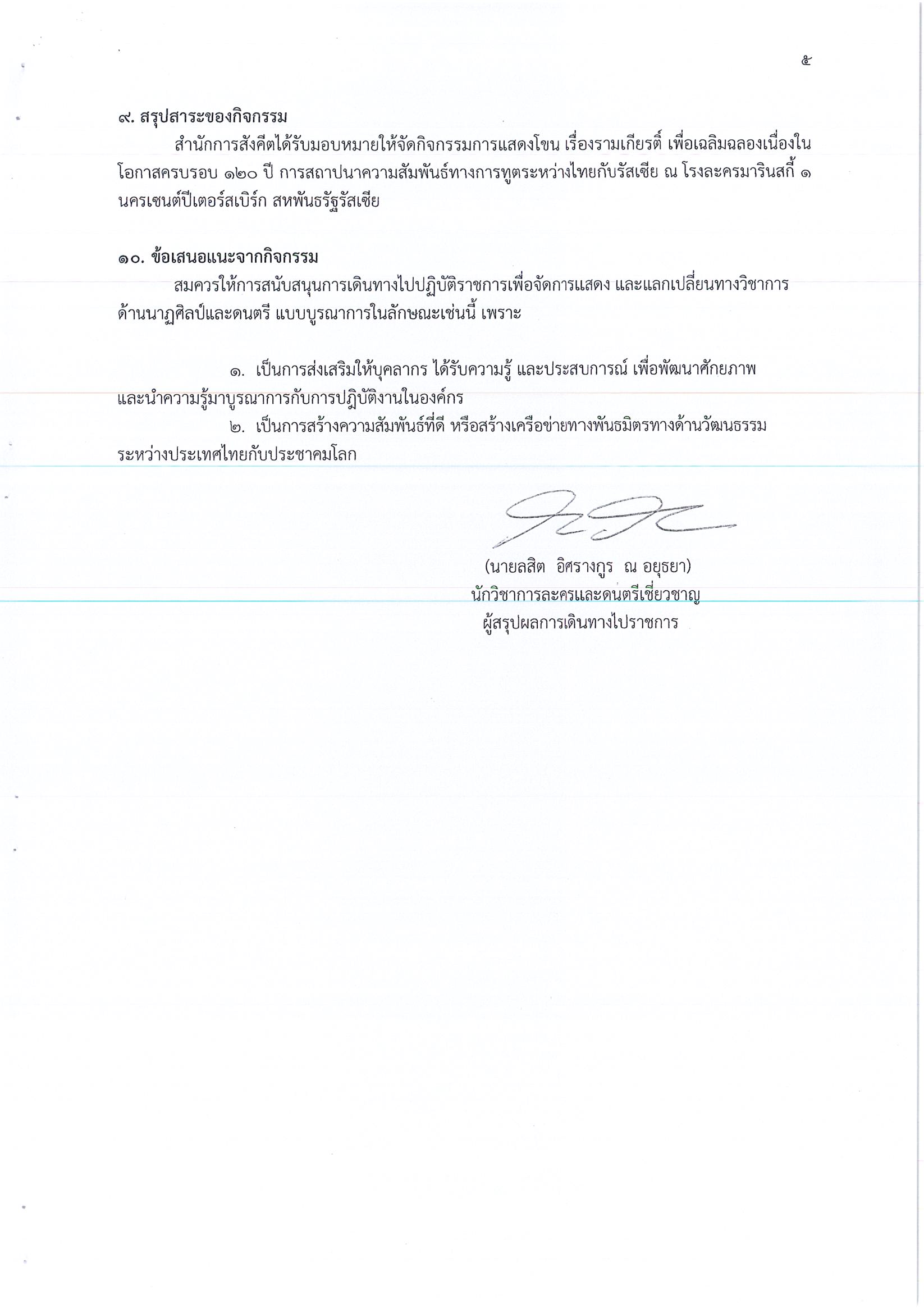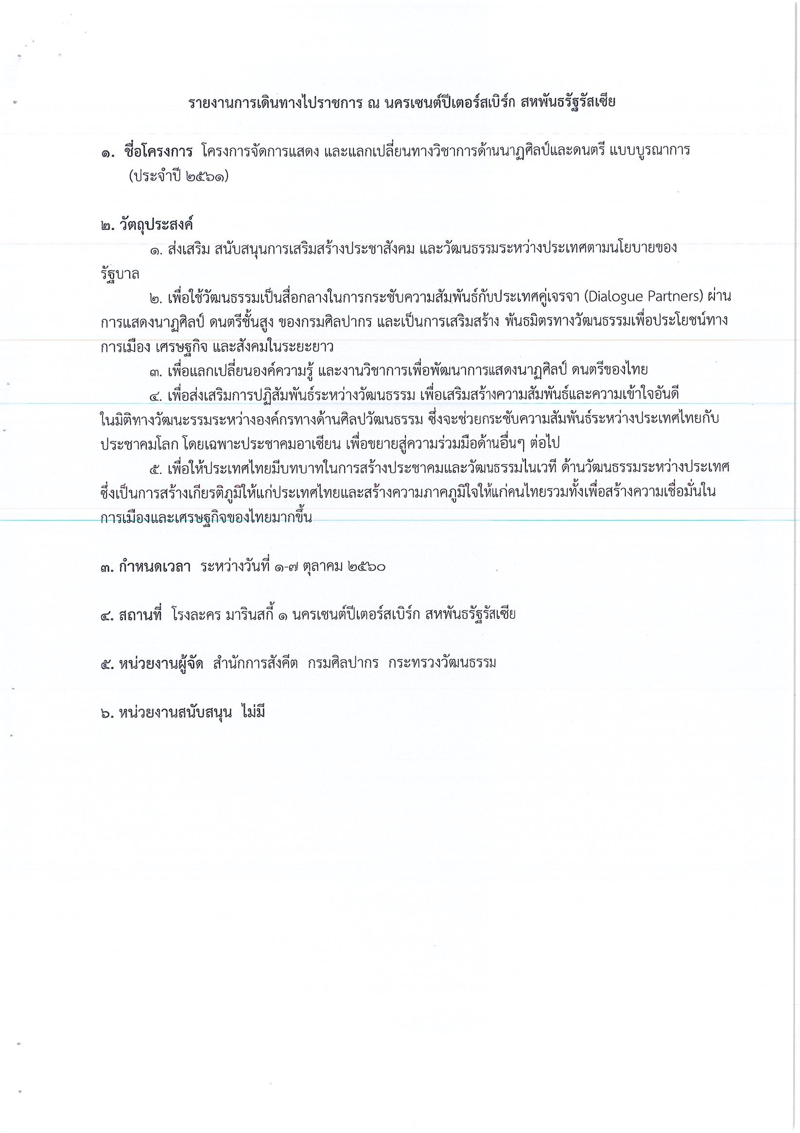 รายงานการเดินทางไปราชการ ณ สหพันธรัฐรัสเซีย ระหว่างวันที่ 1 – 7 ตุลาคม 2560 โครงการจัดการแสดง และแลกเปลี่ยนทางวิชาการด้านนาฏศิลป์และดนตรีแบบบูรณาการ ประจำปี 2561