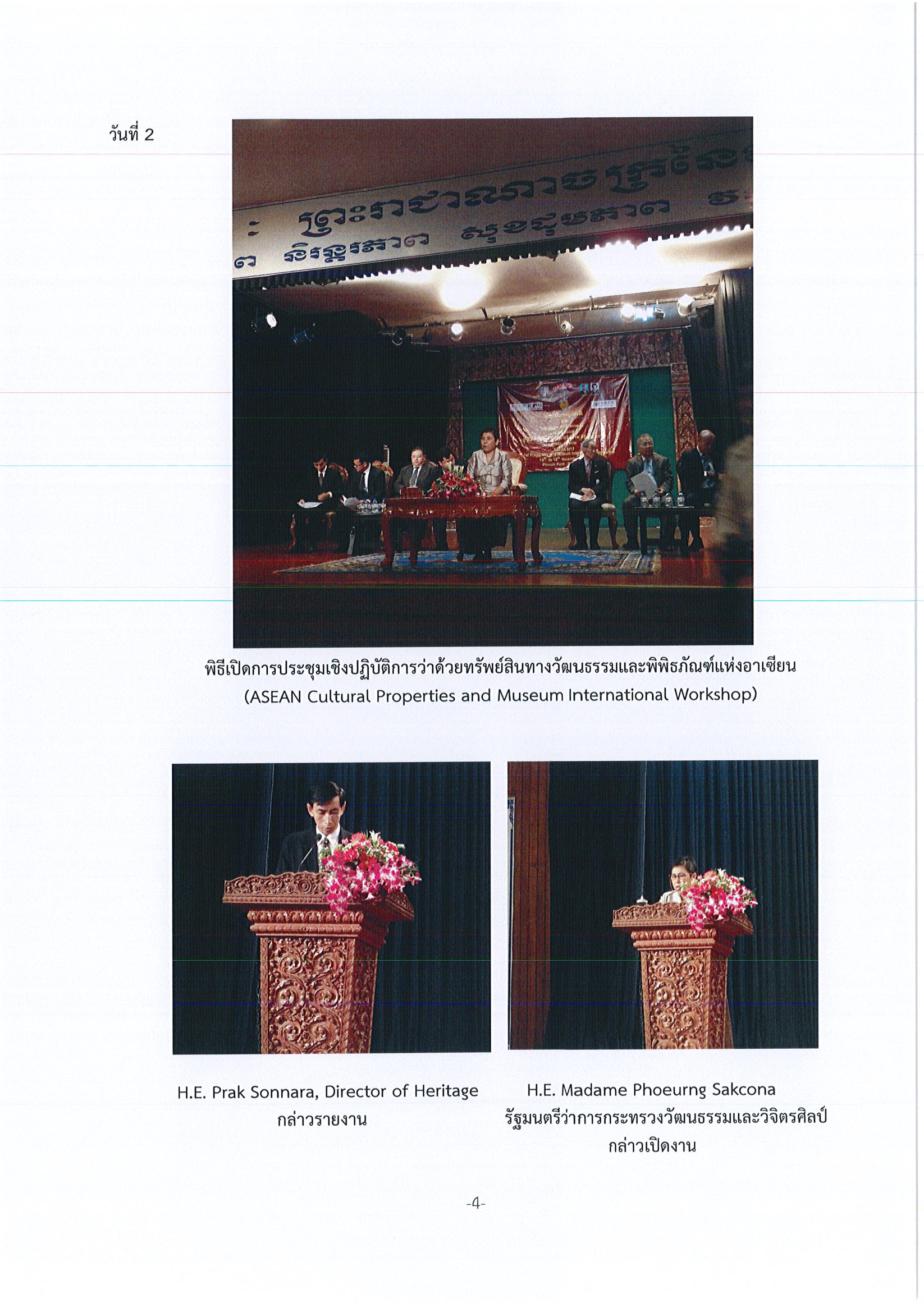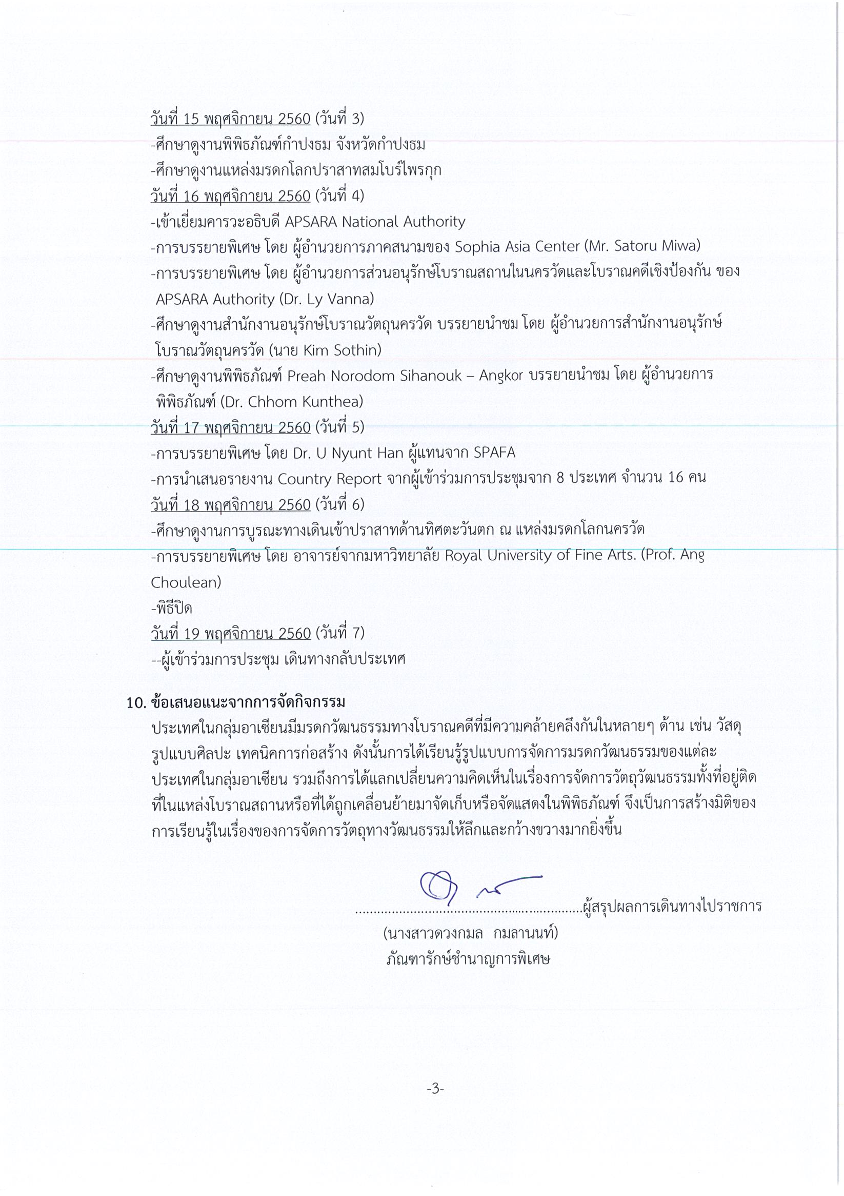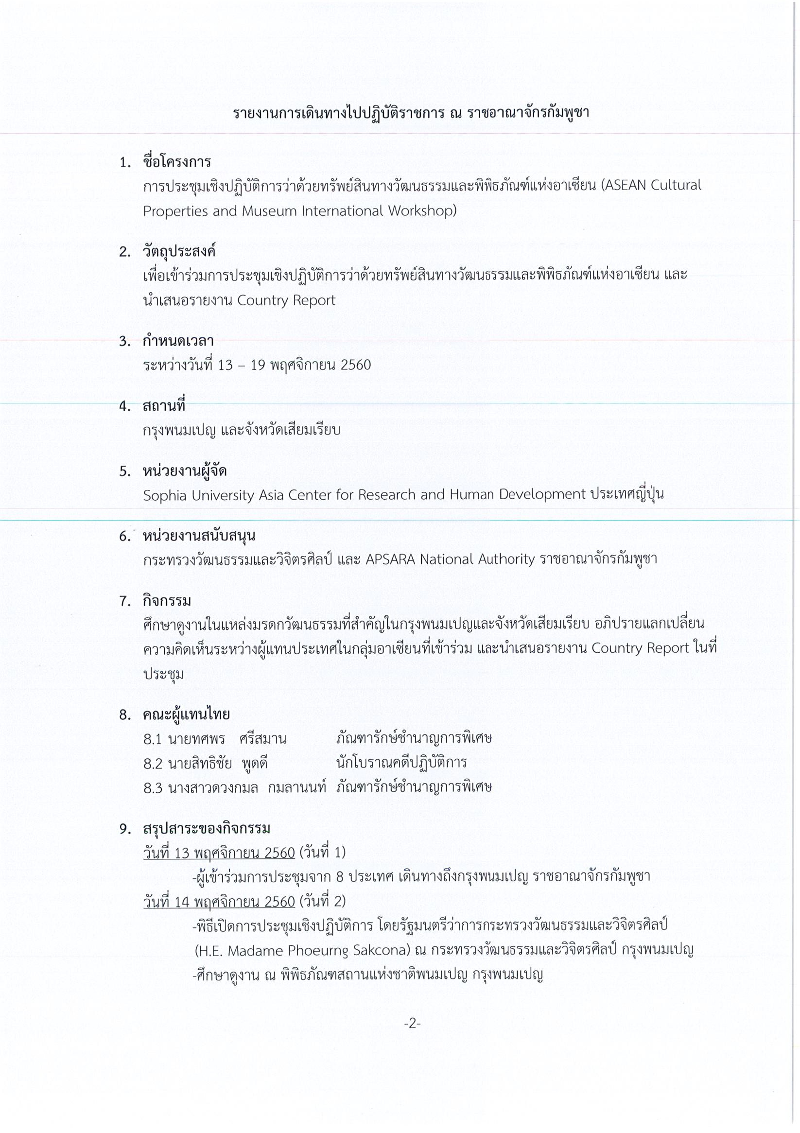 รายงานการเดินทางไปราชการ ณ ราชอาณาจักรกัมพูชา ระหว่างวันที่ 13 – 19 พฤศจิกายน 2560 โครงการประชุมเชิงปฏิบัติการว่าด้วยทรัพย์สินทางวัฒนธรรมและพิพิธภัณฑ์ท้องถิ่นอาเซียน