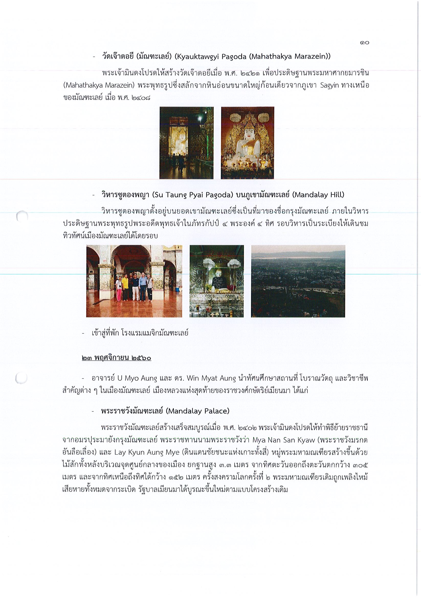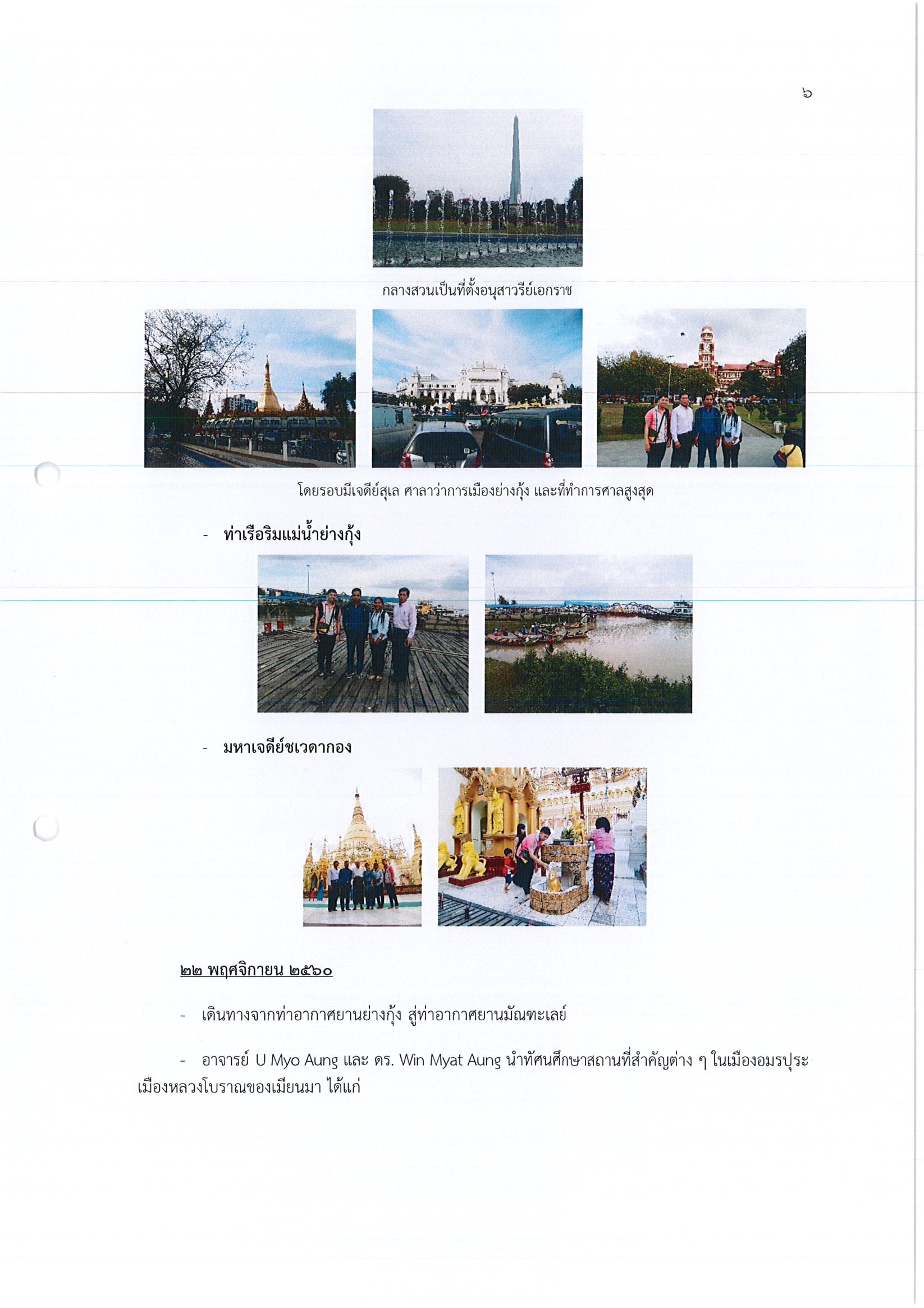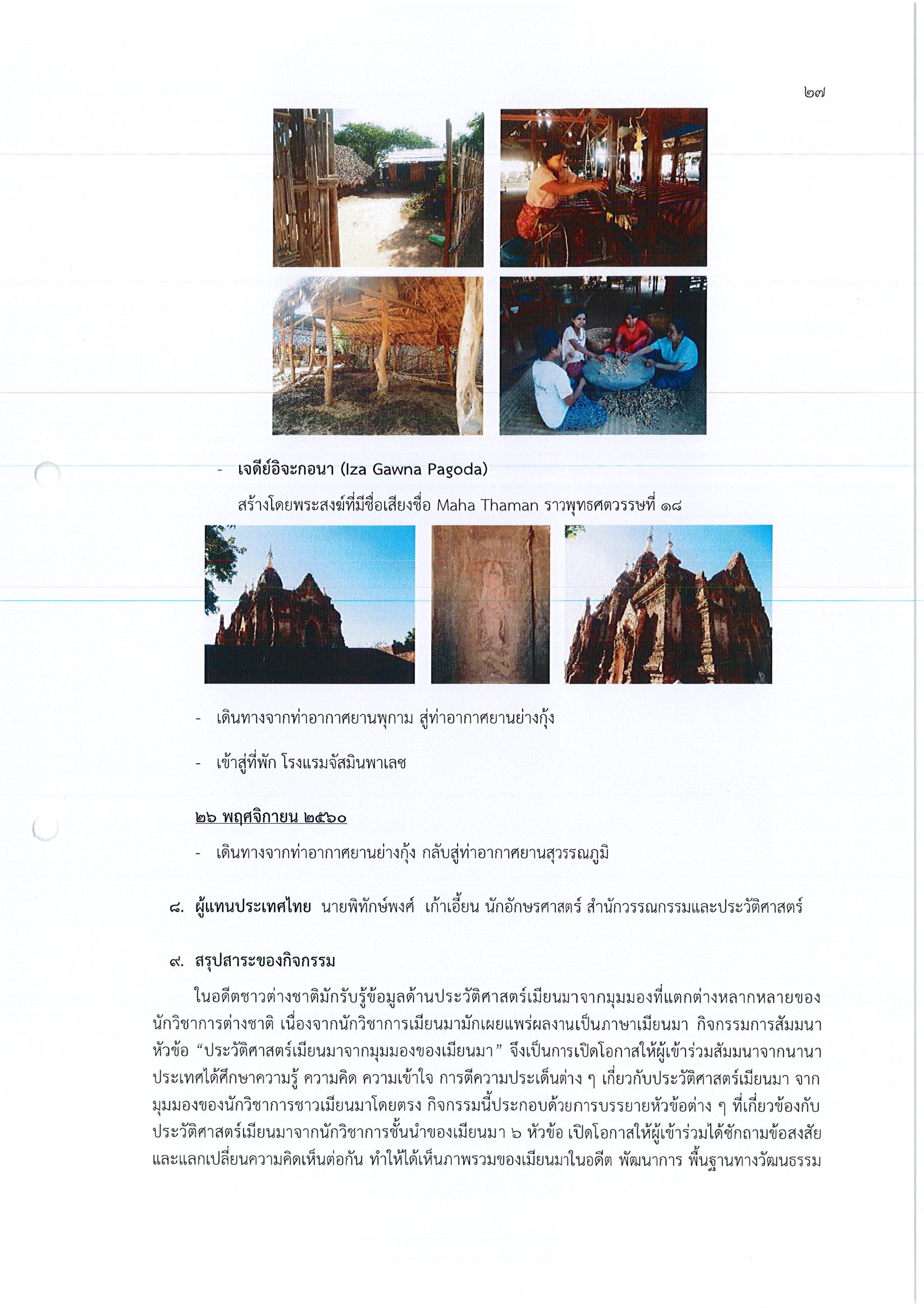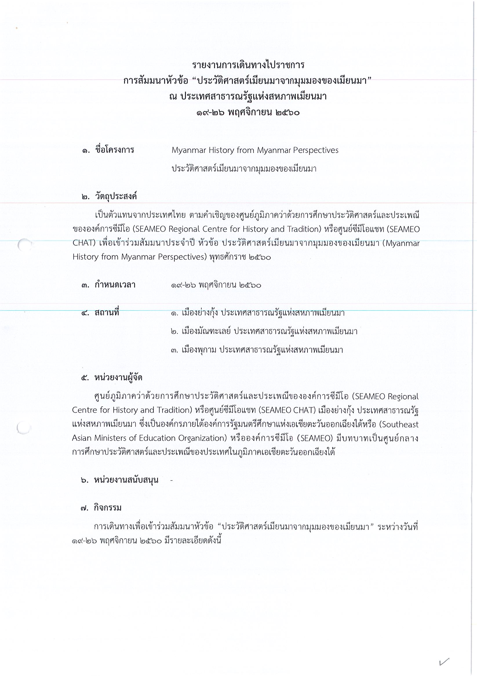 รายงานการเดินทางไปราชการ ณ สาธารณรัฐแห่งสหภาพเมียนมาร์ ระหว่างวันที่ 19 – 26 พฤศจิกายน 2560 โครงการสัมมนาในหัวข้อ Myanmar History from Myanmar Perspectives