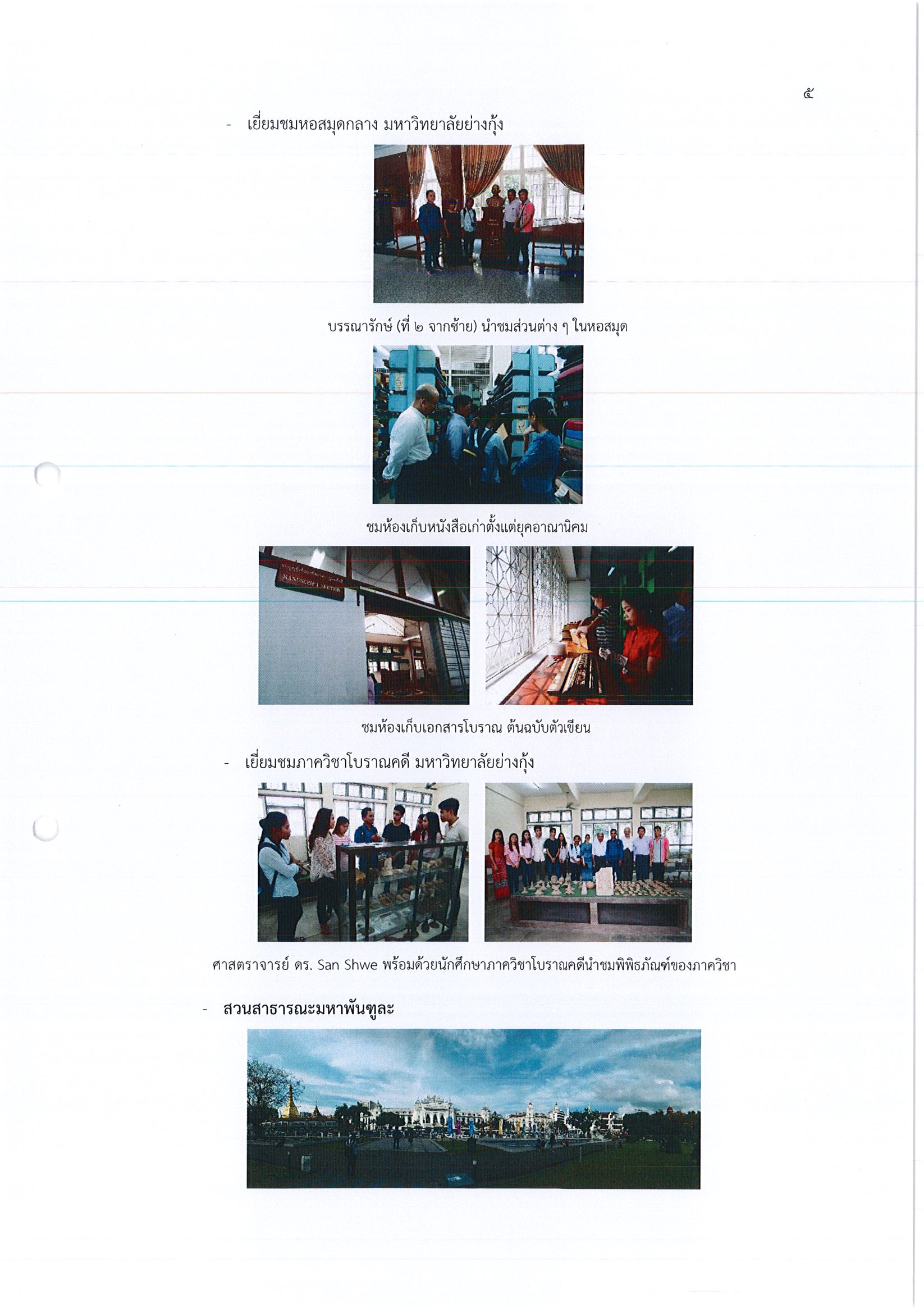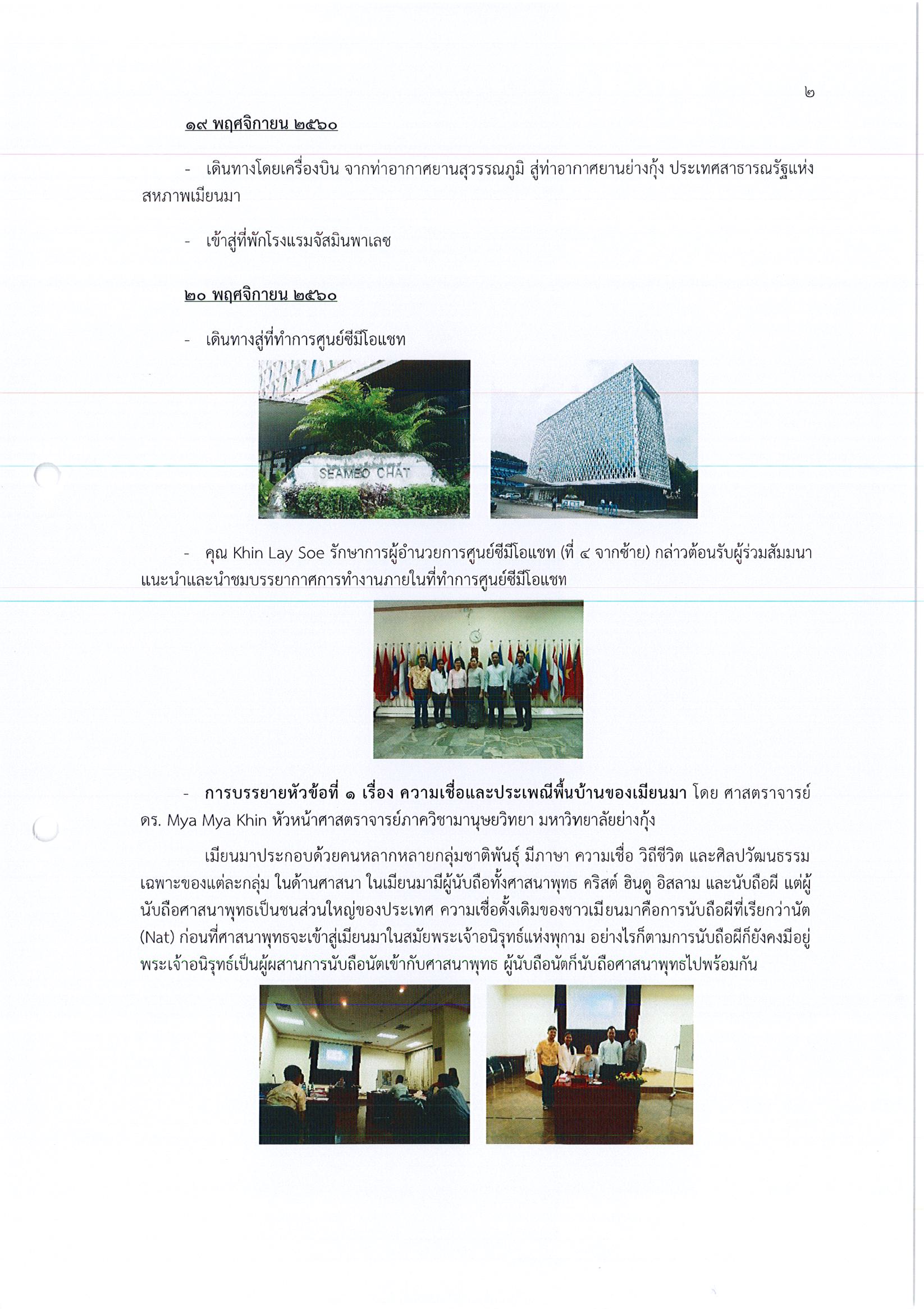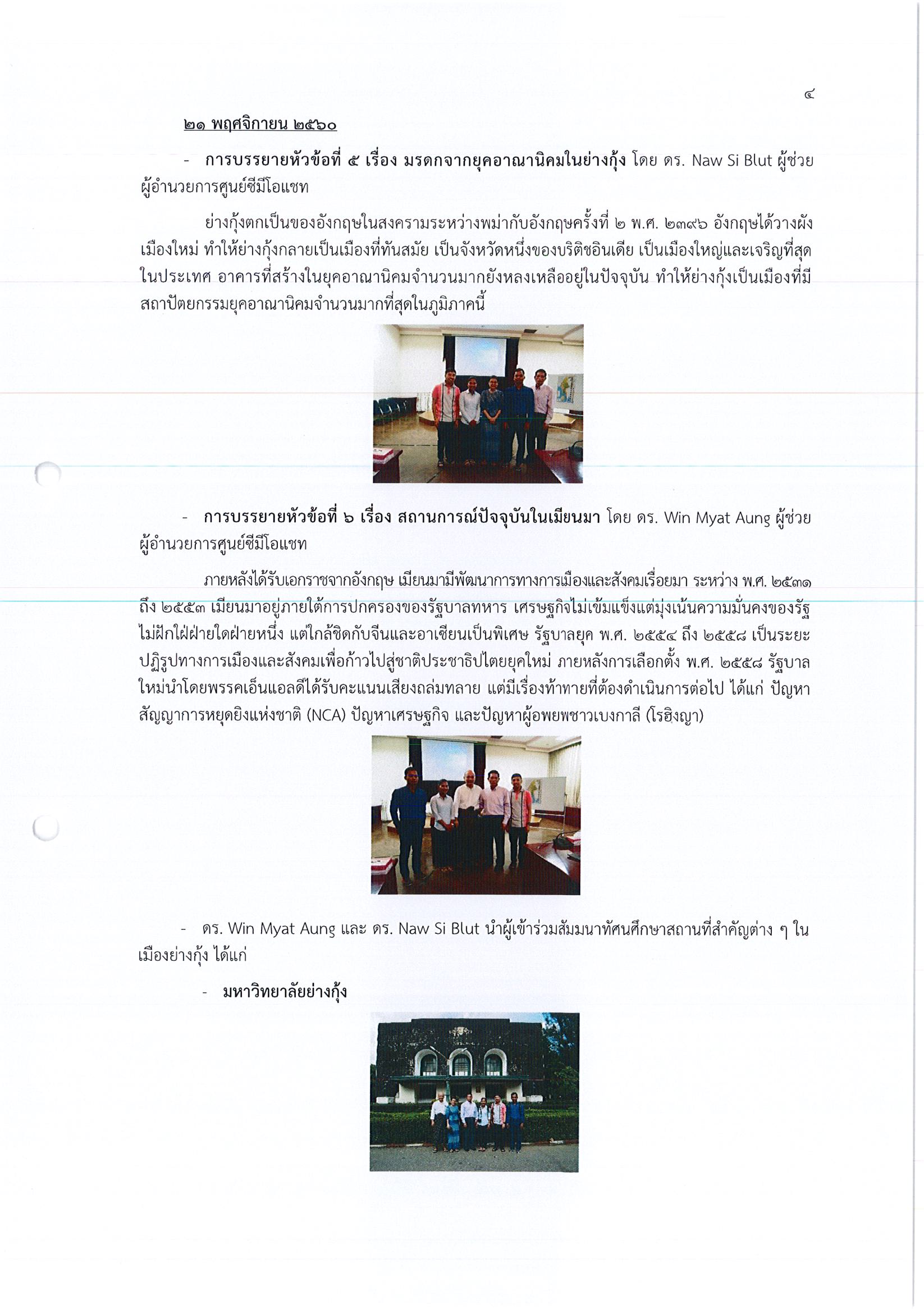 รายงานการเดินทางไปราชการ ณ สาธารณรัฐแห่งสหภาพเมียนมาร์ ระหว่างวันที่ 19 – 26 พฤศจิกายน 2560 โครงการสัมมนาในหัวข้อ Myanmar History from Myanmar Perspectives
