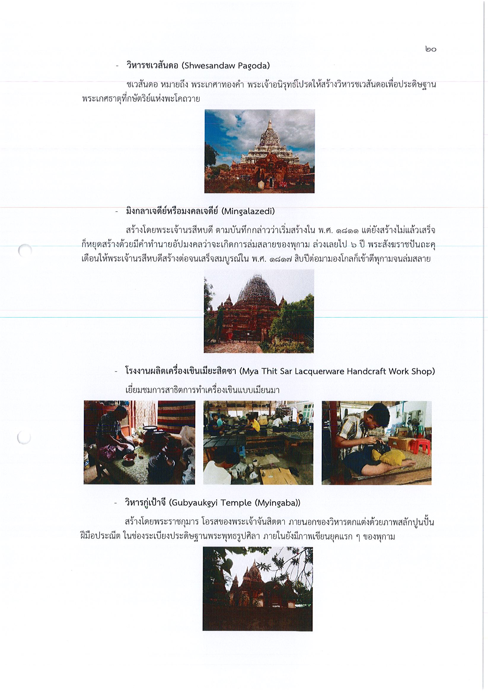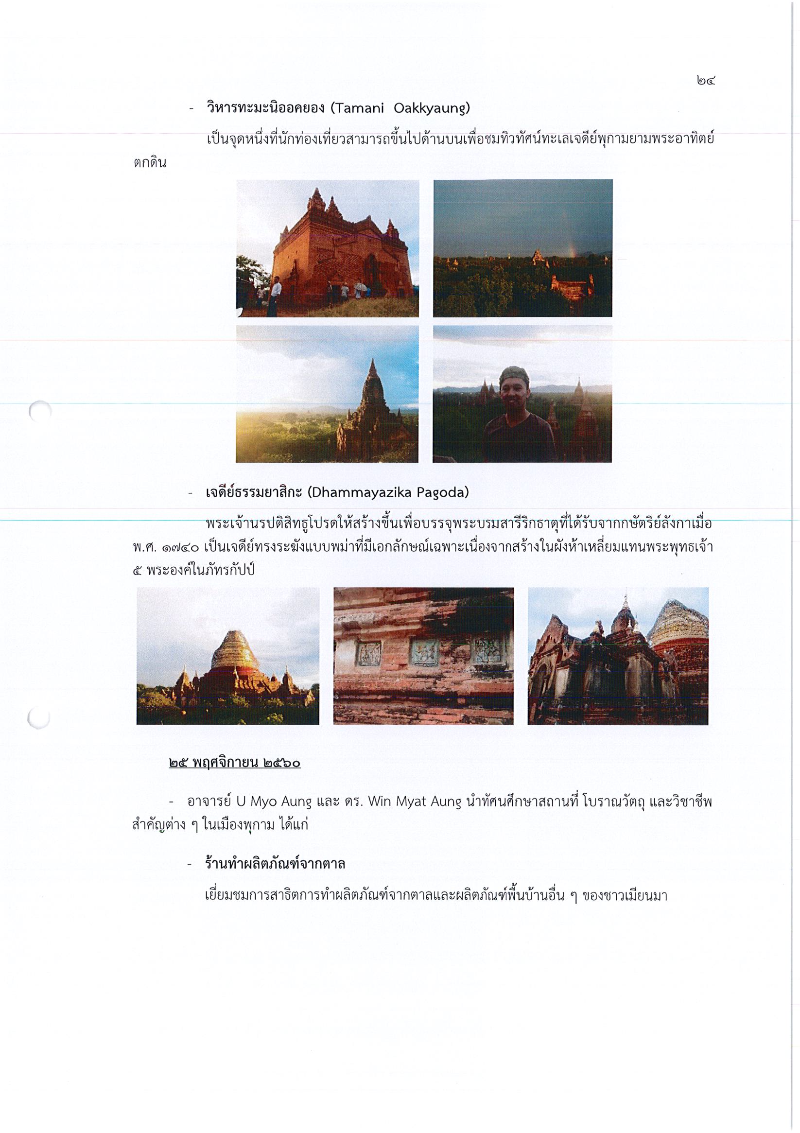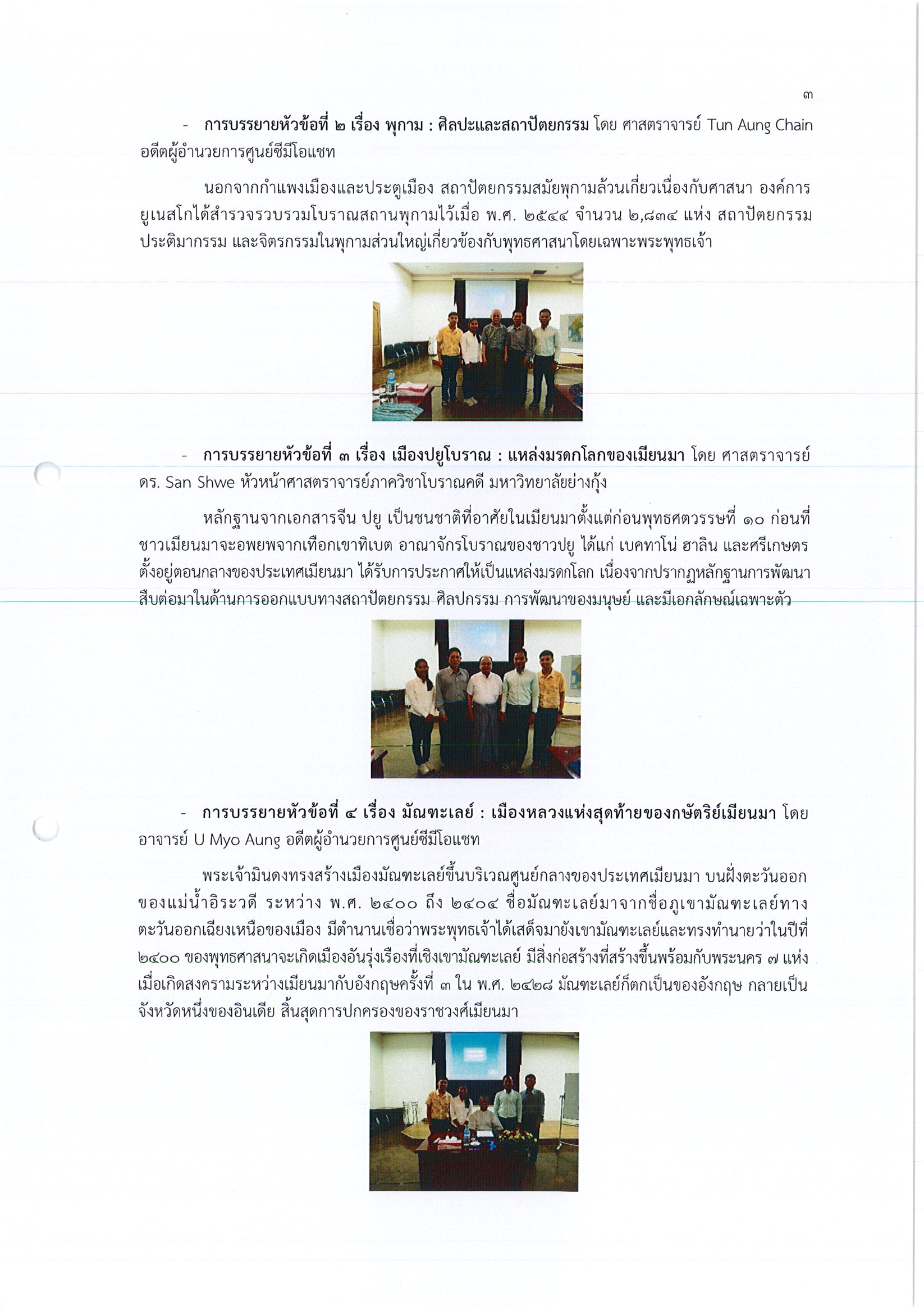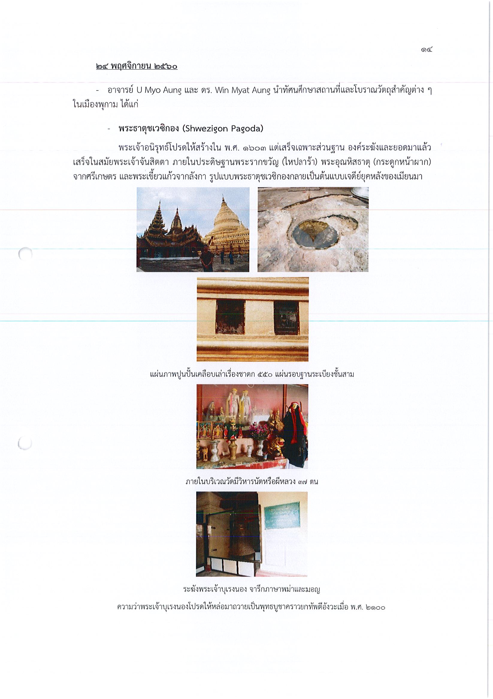 รายงานการเดินทางไปราชการ ณ สาธารณรัฐแห่งสหภาพเมียนมาร์ ระหว่างวันที่ 19 – 26 พฤศจิกายน 2560 โครงการสัมมนาในหัวข้อ Myanmar History from Myanmar Perspectives