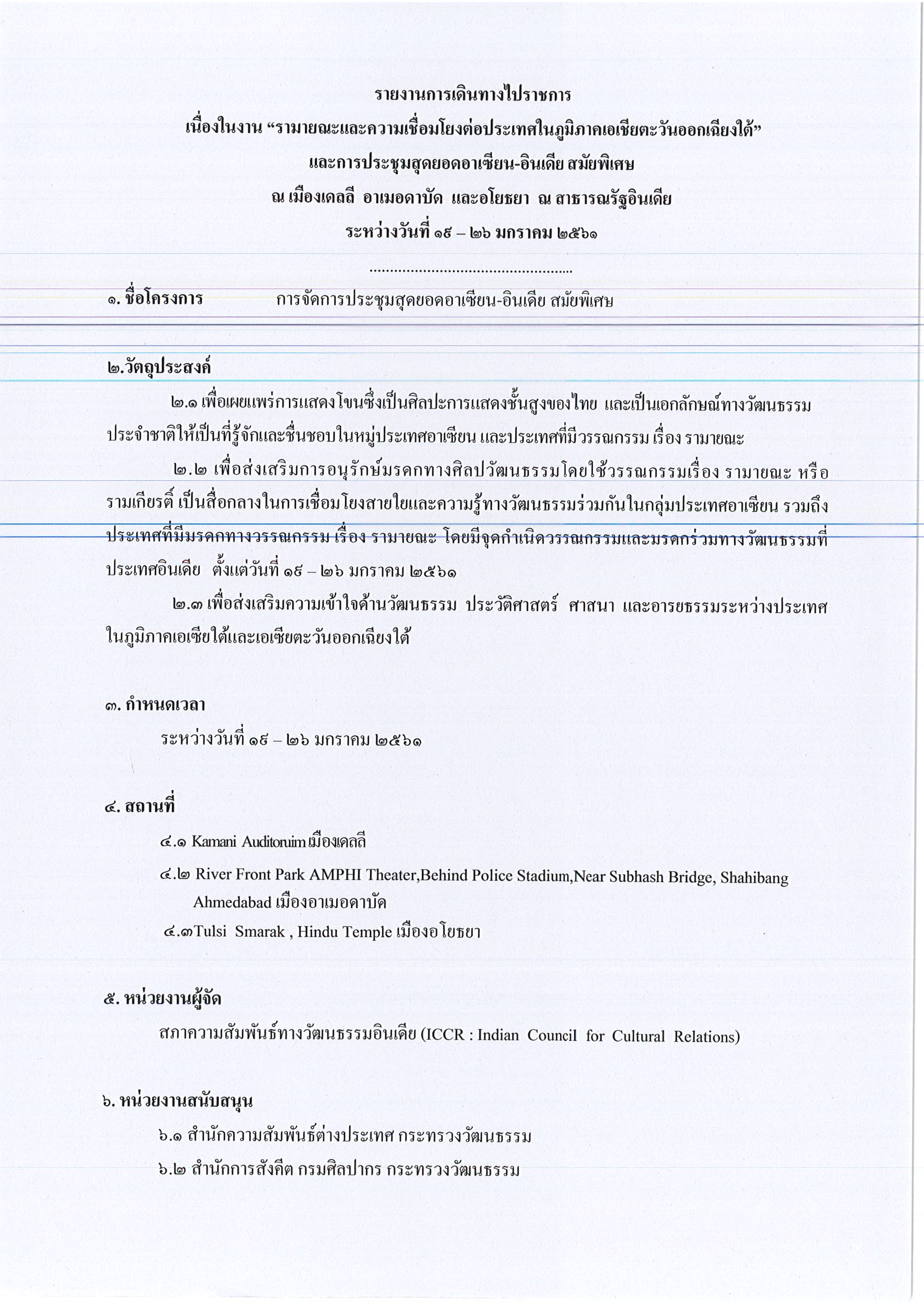 รายงานการดินทางไปราชการ ณ สาธารณรัฐอินเดีย ระหว่างวันที่ 19 – 26 มกราคม 2561 โครงการงานรามายณะและความเชื่อมโยงต่อประเทศในภูภาคเอเชียตะวันออกเฉียงใต้