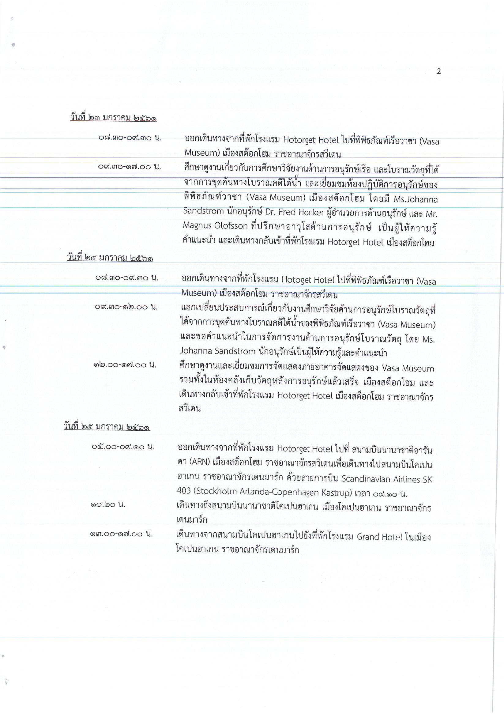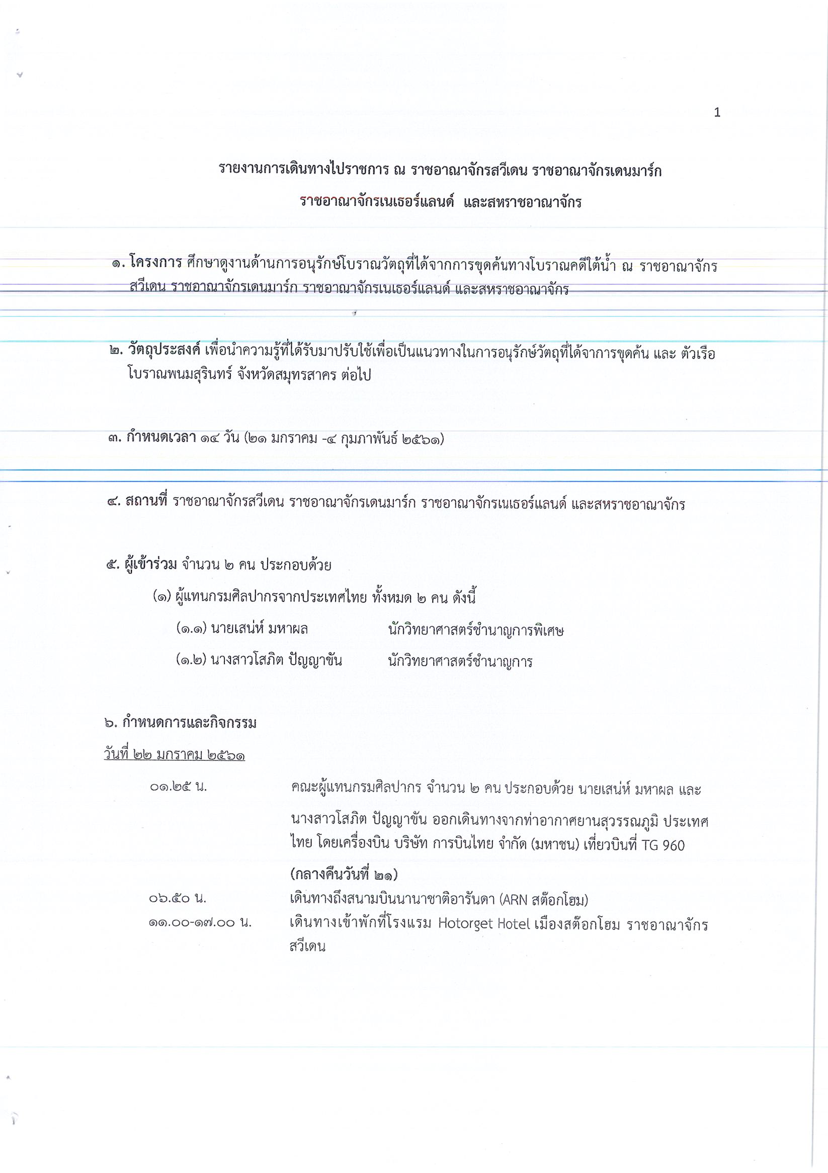 รายงานการเดินทางไปราชการ ณ ราชอาณาจักรสวีเดน และราชอาณาจักกรเดนมาร์ก ระหว่างวันที่ 21 มกราคม – 4 กุมภาพันธ์ 2561 โครงการศึกษาดูงานการอนุรักษ์โบราณวัตถุที่ได้จากการขุดค้นทางโบราณคดีใต้น้ำเพื่อนำมาสู่การอนุรักษ์วัตถุจากเรือโบราณพนม – สุรินทร์ จังหวัดสมุทรสาคร
