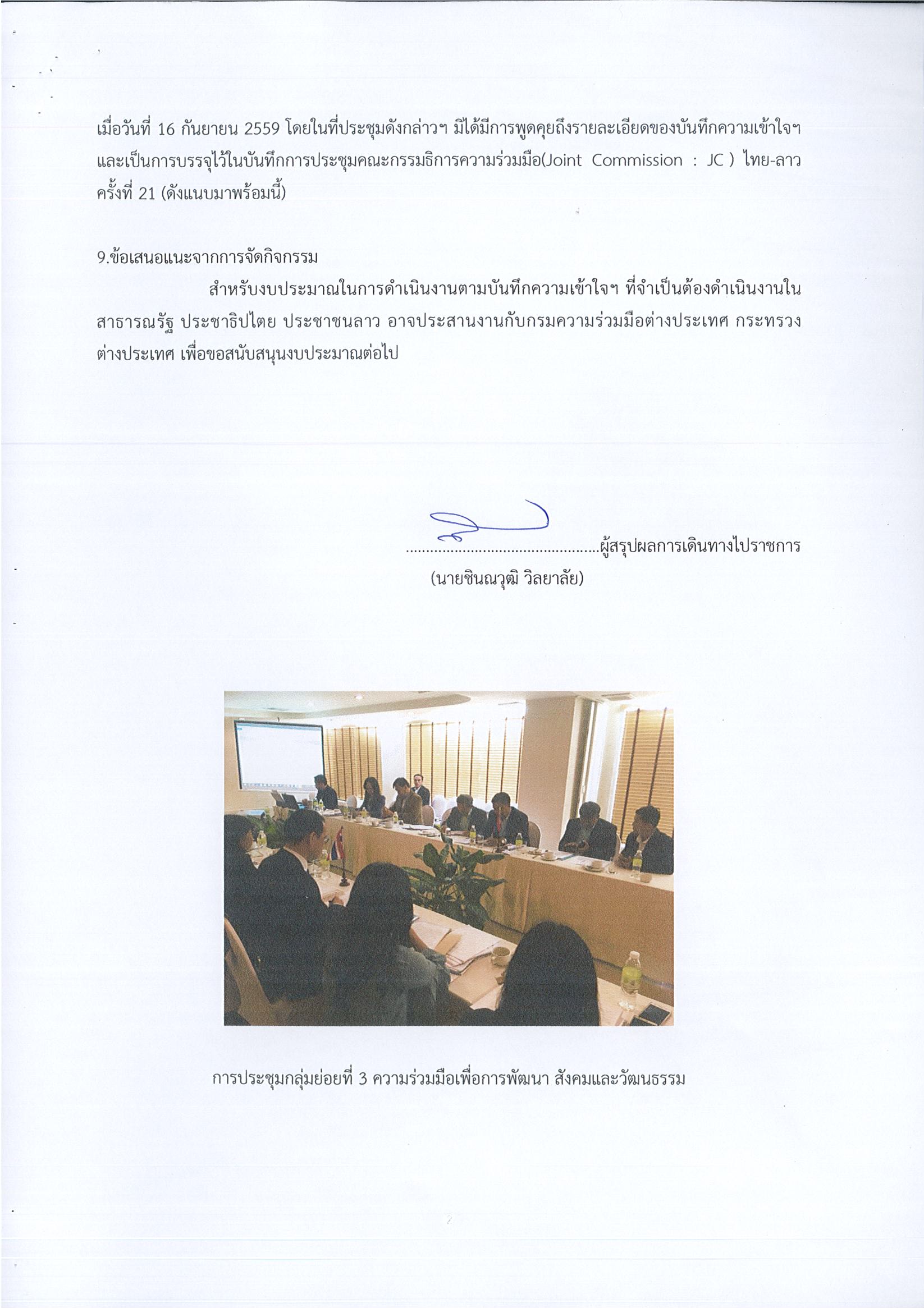 รายงานการเดินทางไปราชการ ณ สาธารณรัฐประชาธิปไตยประชาชนลาว ระหว่างวันที่ 31 มกราคม – 3 กุมภาพันธ์ 2561 โครงการประชุมคณะกรรมาธิการความร่วมมือไทย – ลาว ครั้งที่ 21