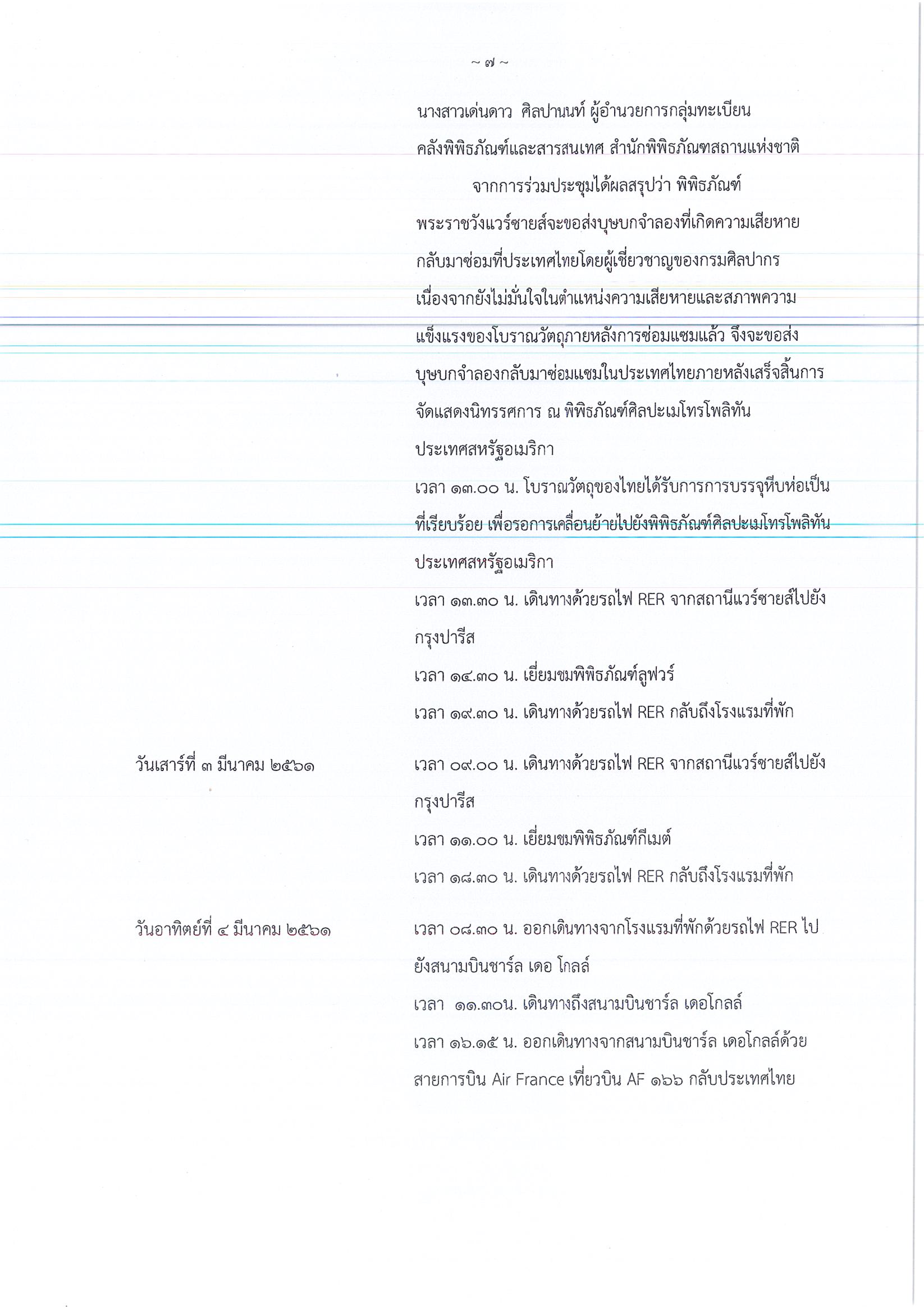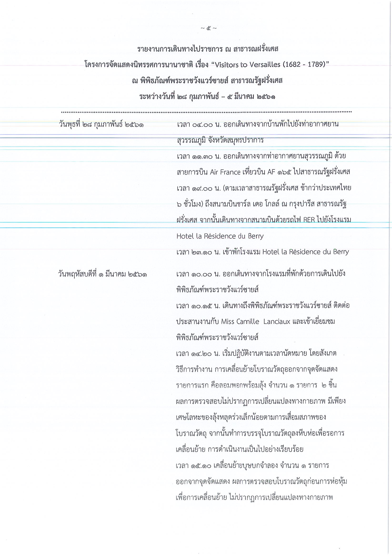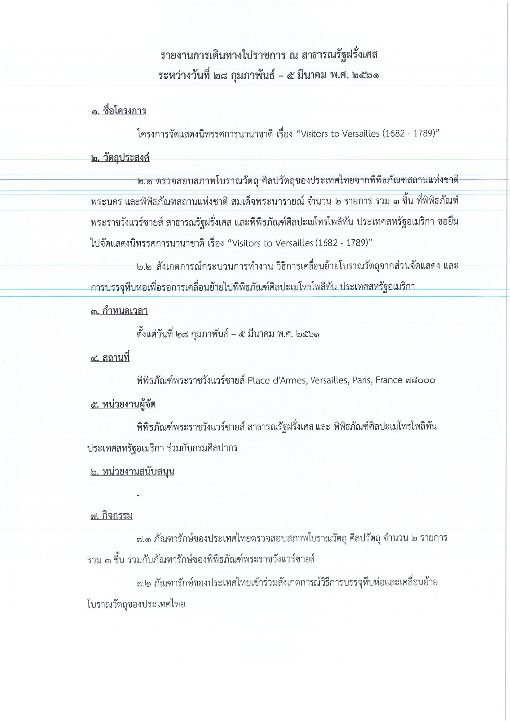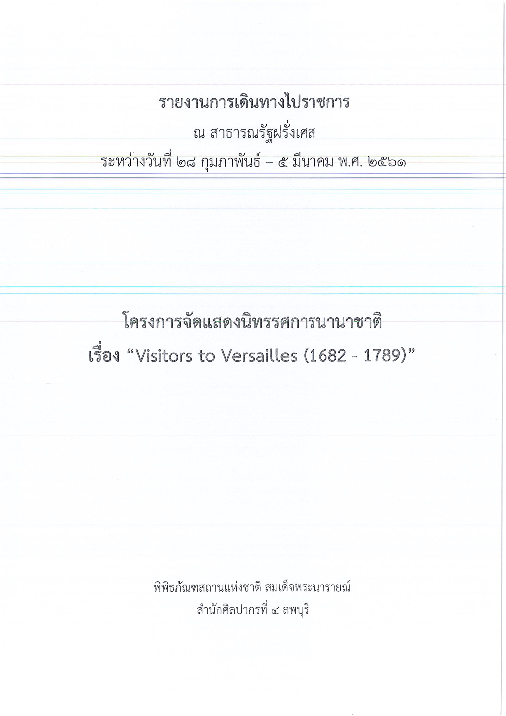 รายงานการเดินทางไปราชการ ณ สาธารณรัฐฝรั่งเศส ระหว่างวันที่ 28 กุมภาพันธ์ – 5 มีนาคม 2561 โครงการจัดแสดงนิทรรศการนานาชาติ “Visitors to Versailles”