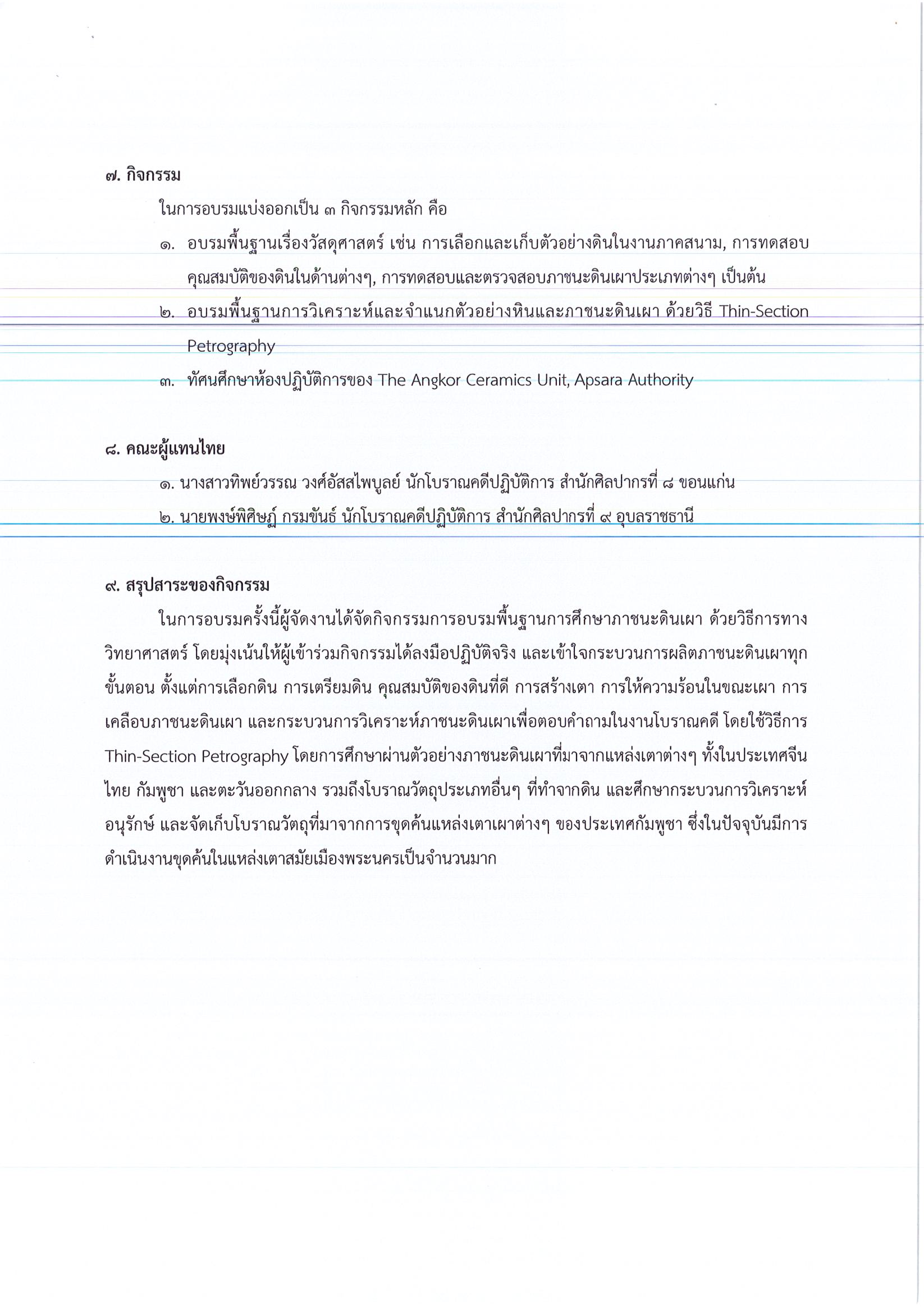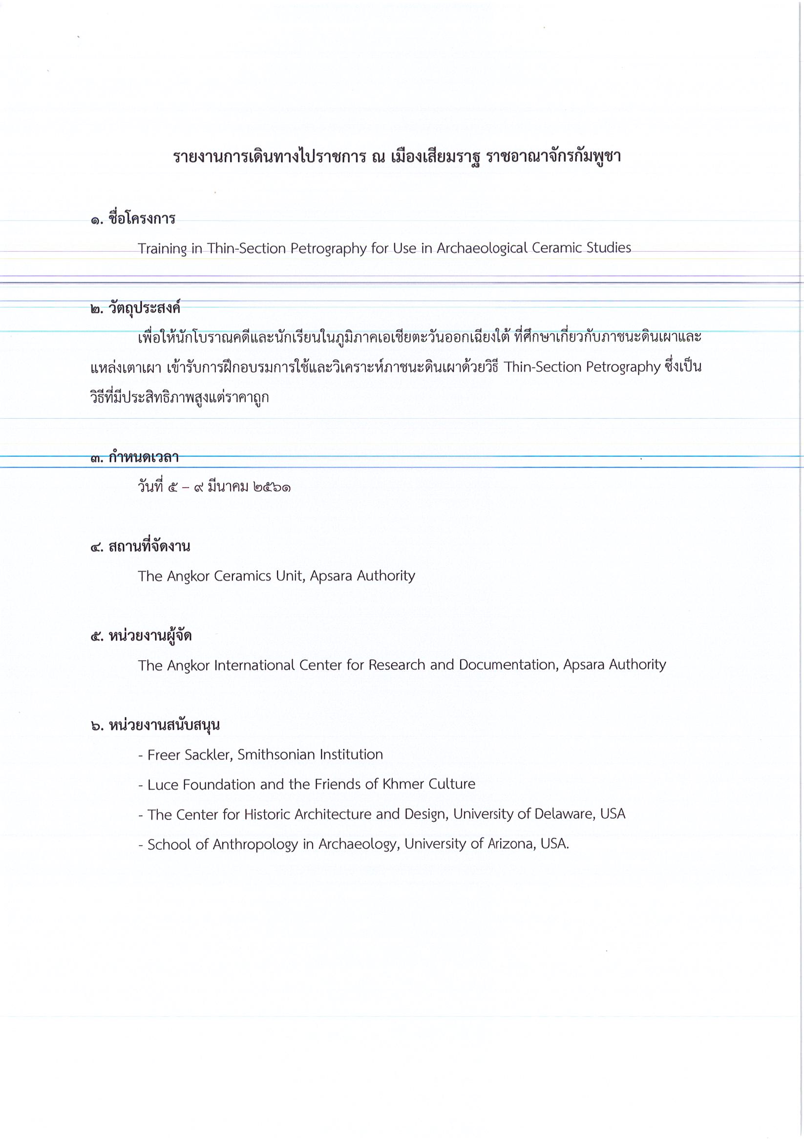 รายงานการเดินทางไปราชการ ณ ราชอาณาจักรกัมพูชา ระหว่างวันที่ 5 – 9 มีนาคม 2561 โครงการฝึกอบรมเรื่อง “Training in Thin-Section Petrography for Use in Archaeological Ceramic Studies”
