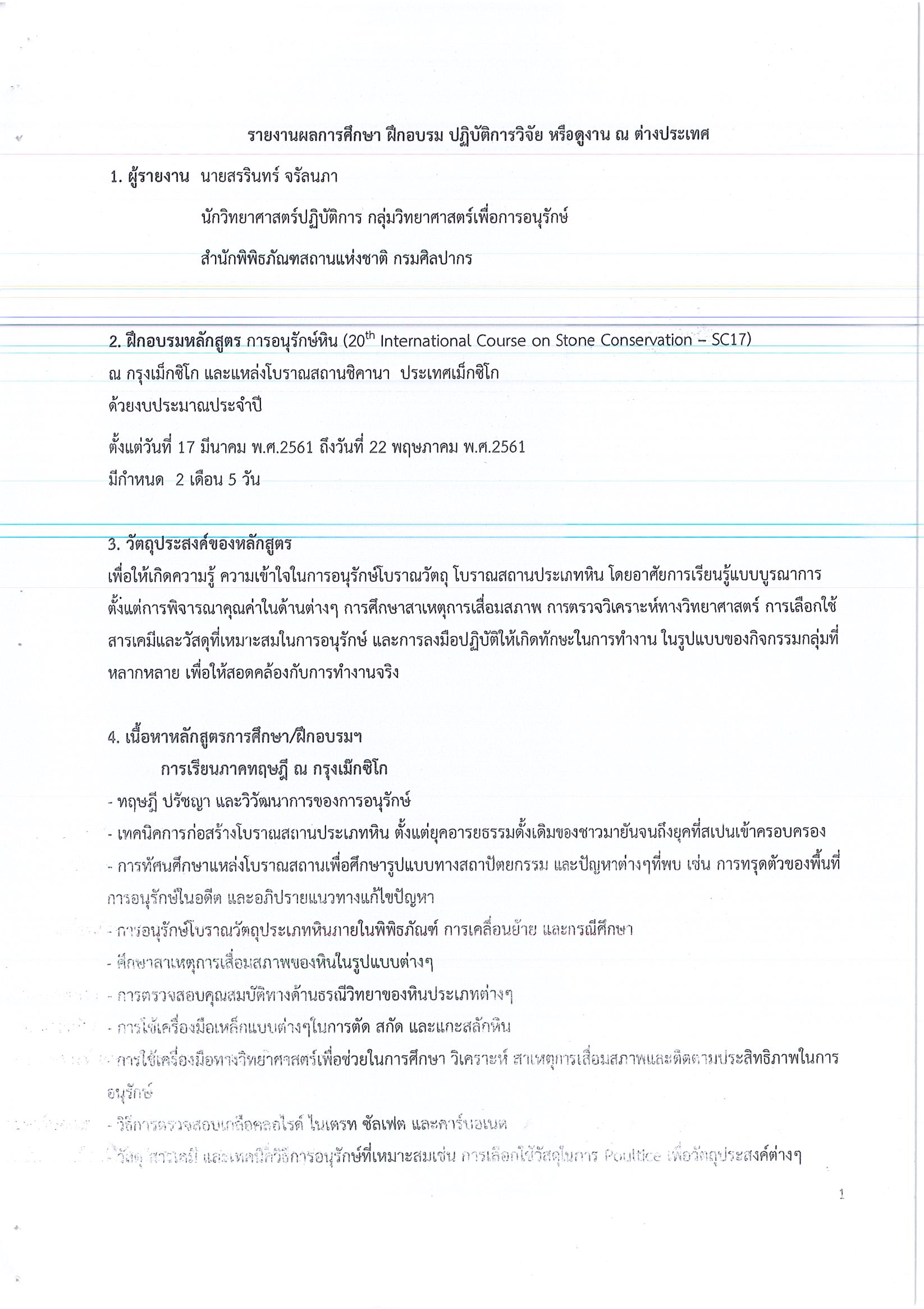 รายงานการเดินทางไปราชการ ณ สหรัฐเม็กซิโก ระหว่างวันที่ 17 มีนาคม – 22 พฤษภาคม 2561 โครงการอนุรักษ์หิน