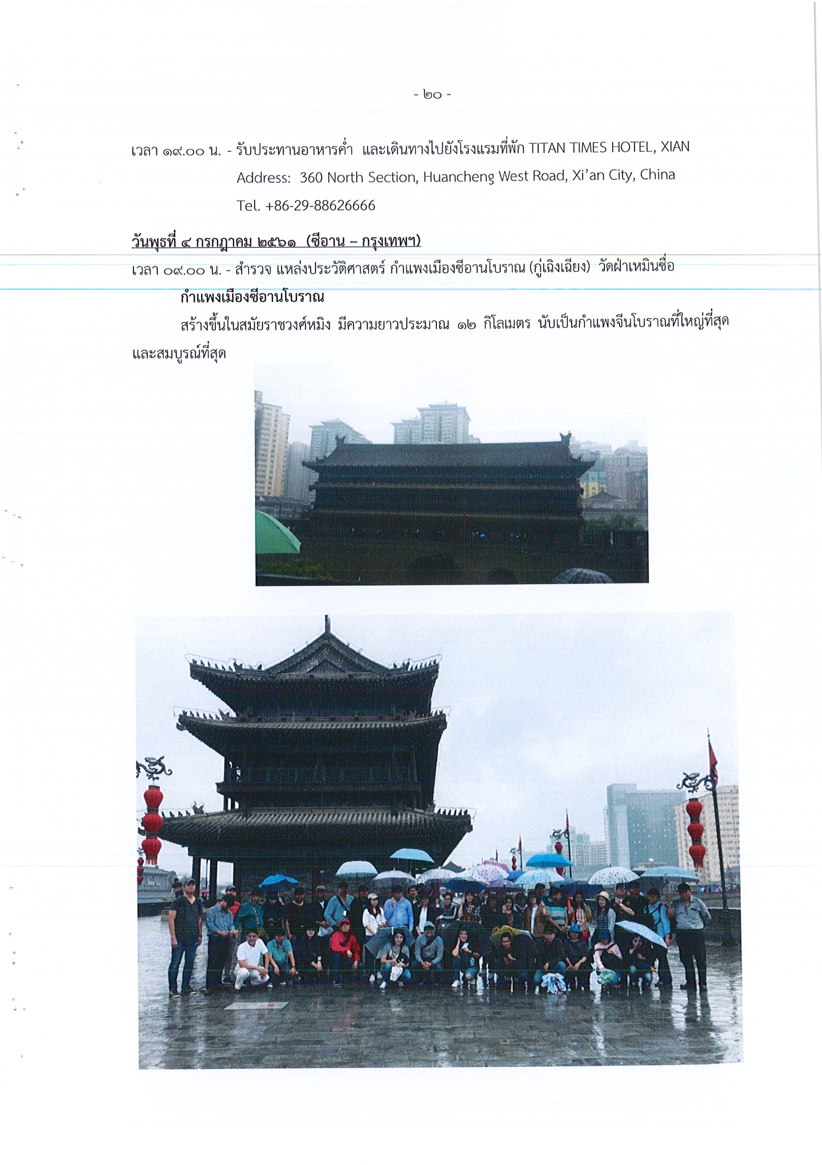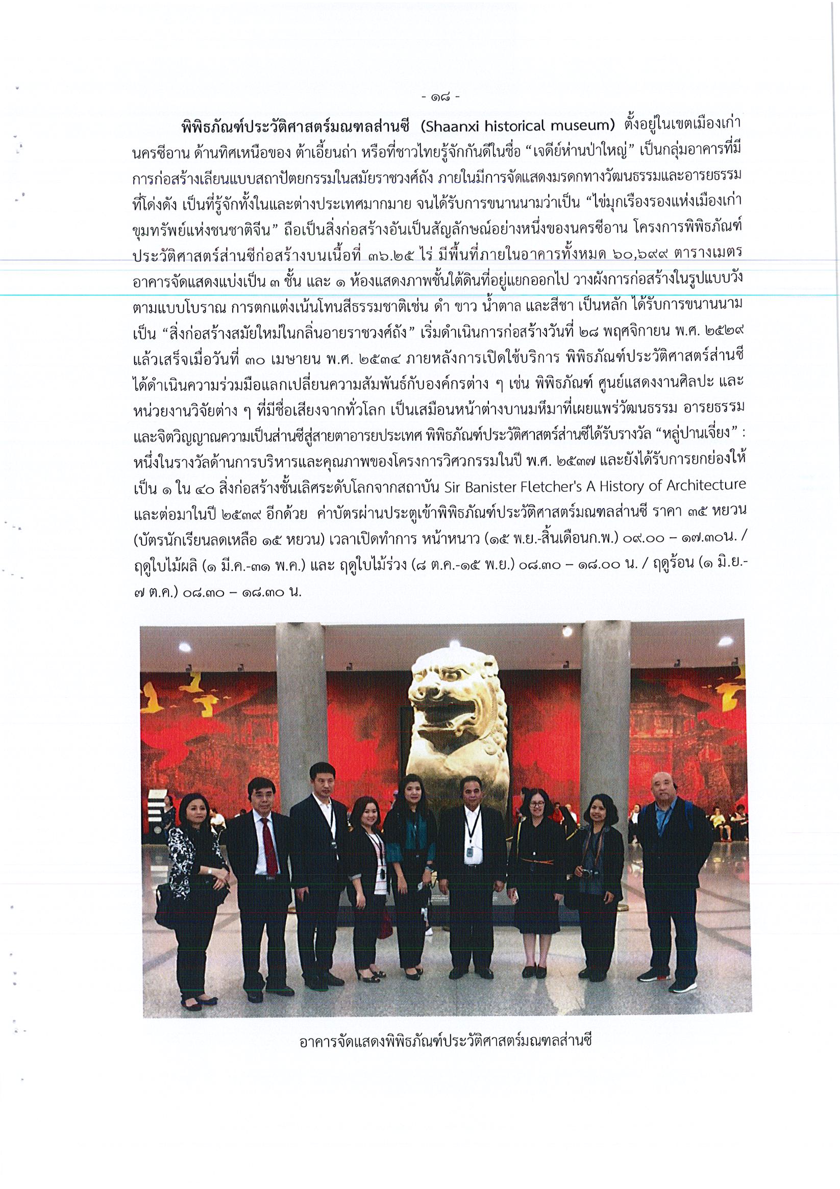 รายงานการเดินทางไปราชการ ณ สาธารณรัฐประชาชนจีน ระหว่างวันที่ 1 – 5 กรกฎาคม 2561 โครงการสำรวจแหล่งความรู้ด้านงานศิลปกรรม สถาปัตยกรรม วิศวกรรม พิพิธภัณฑ์และการอนุรักษ์ ณ แหล่งมรดกโลกเมืองซีอาน