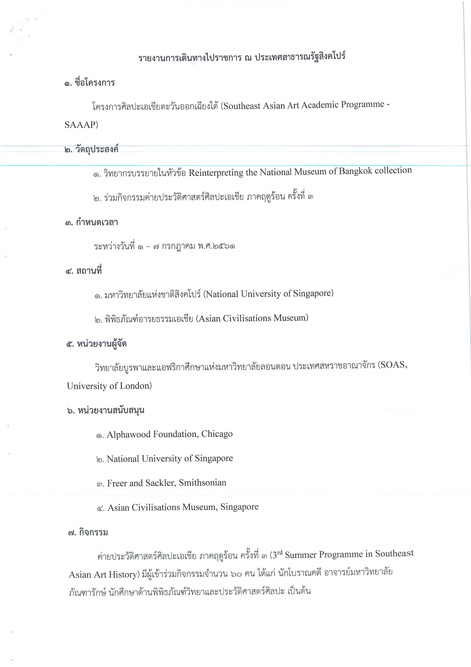 รายงานการเดินทางไปราชการ ณ สาธารณรัฐสิงคโปร์ ระหว่างวันที่ 1 – 7 กรกฎาคม 2561 โครงการศิลปะเอเชียตะวันออกเฉียงใต้