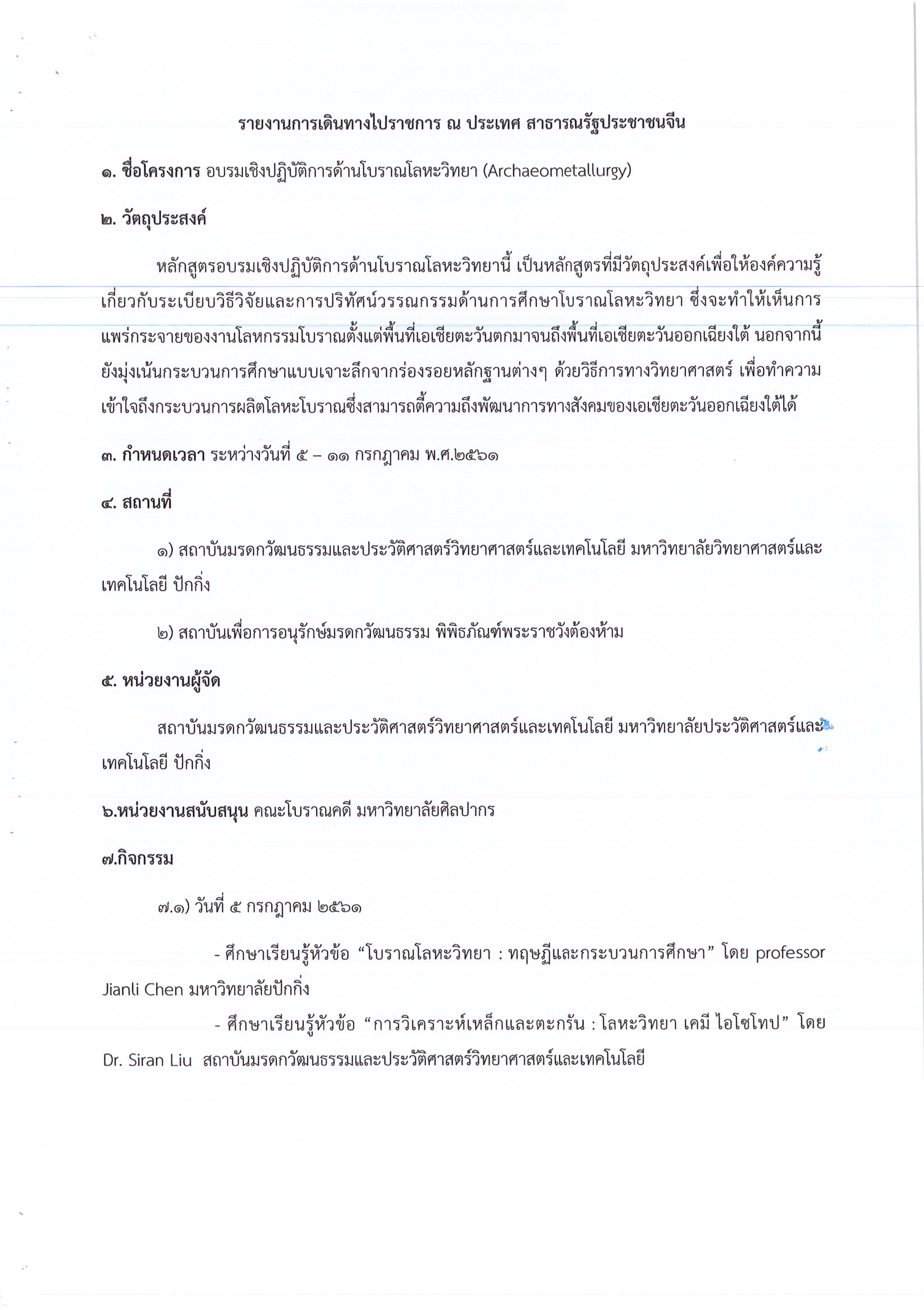 รายงานการเดินทางไปราชการ ณ สาธารณรัฐประชาชนจีน ระหว่างวันที่ 4 – 12 กรกฎาคม 2561 โครงการอบรมเชิงปฏิบัติการด้านโลหะวิทยาโบราณ(Archaeometallurgy)