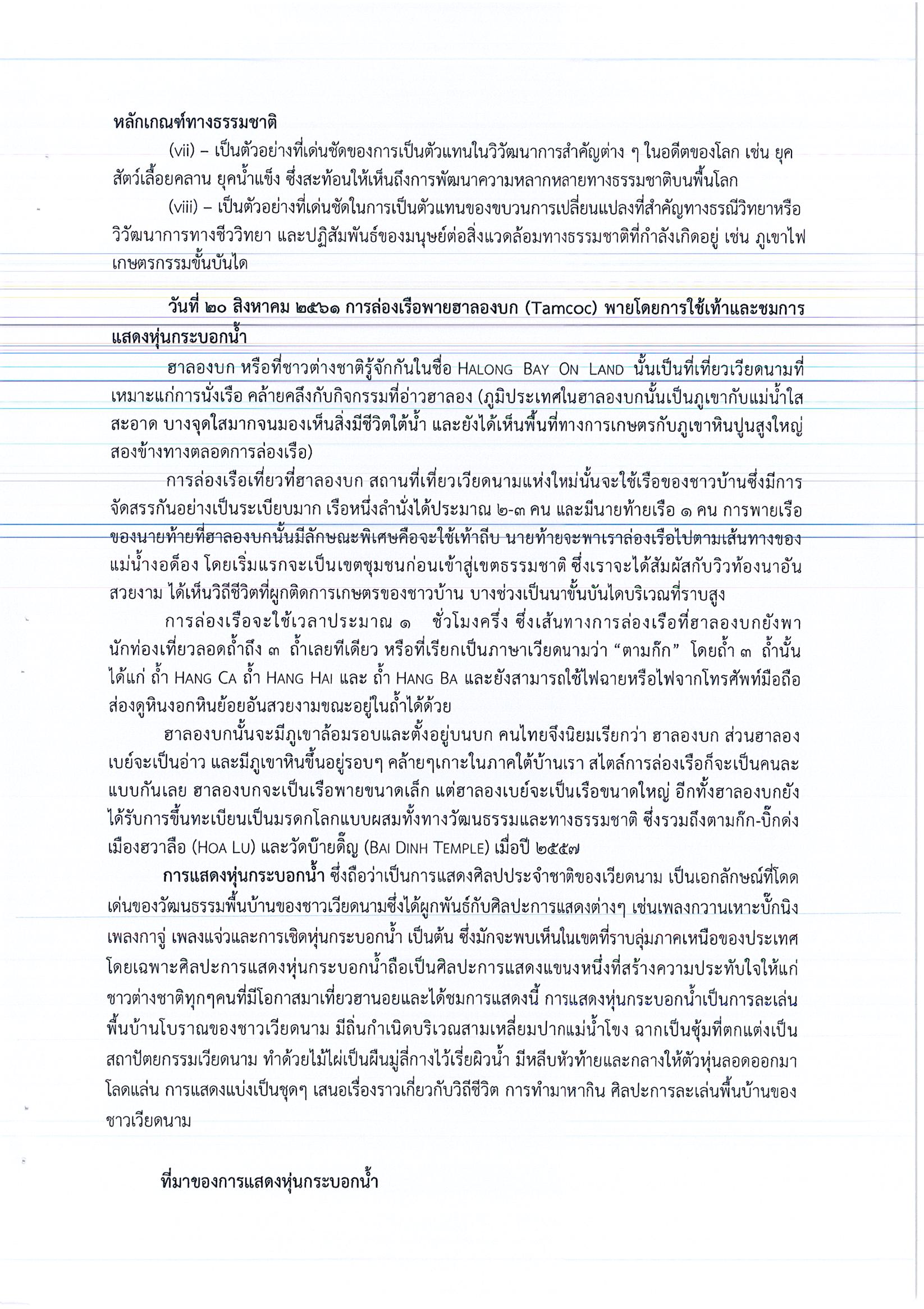 รายงานการเดินทางไปราชการ ณ สาธารณรัฐสังคมนิยมเวียดนาม ระหว่างวันที่ 19 – 22 สิงหาคม 2561 โครงการเสริมสร้างทัศนคติแรงจูงใจ ปลูกฝังแนวคิดในการพัฒนาการท่องเที่ยวแบบมีส่วนร่วมของชุมชนให้แก่ภาคีที่เกี่ยวข้องในระดับต่างๆ ผ่านกลไกเครือข่ายประชารัฐ ประจำปี 2561