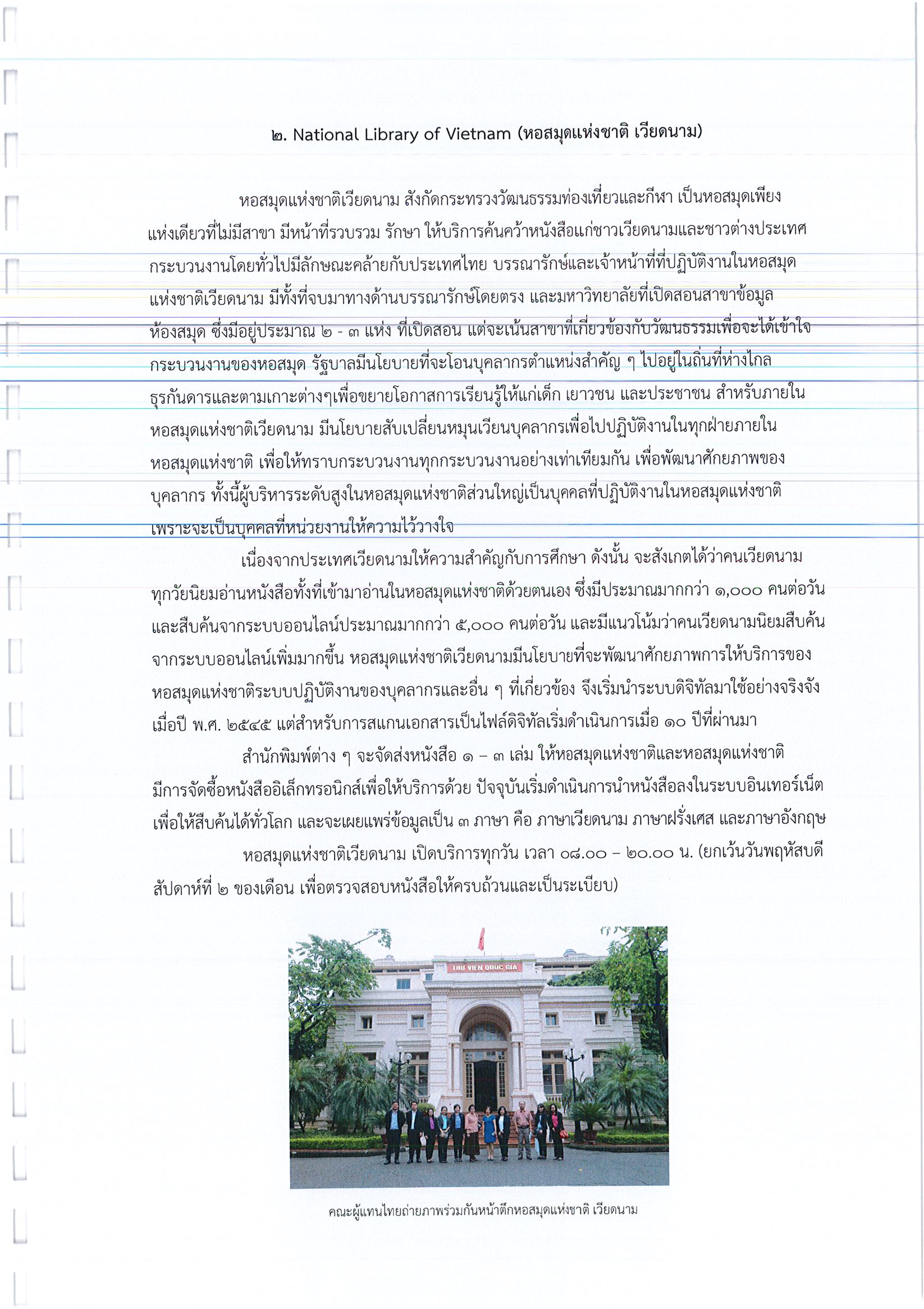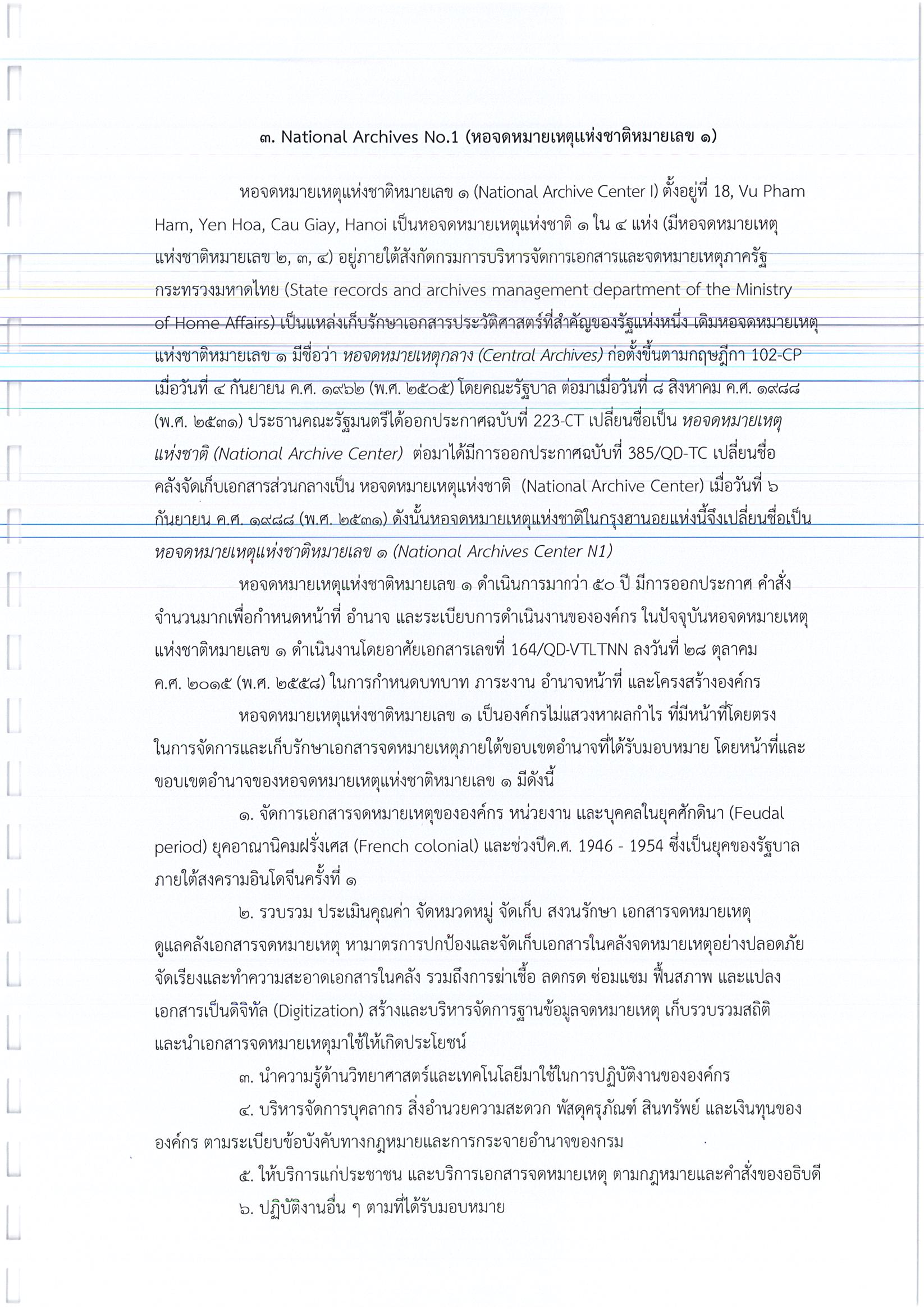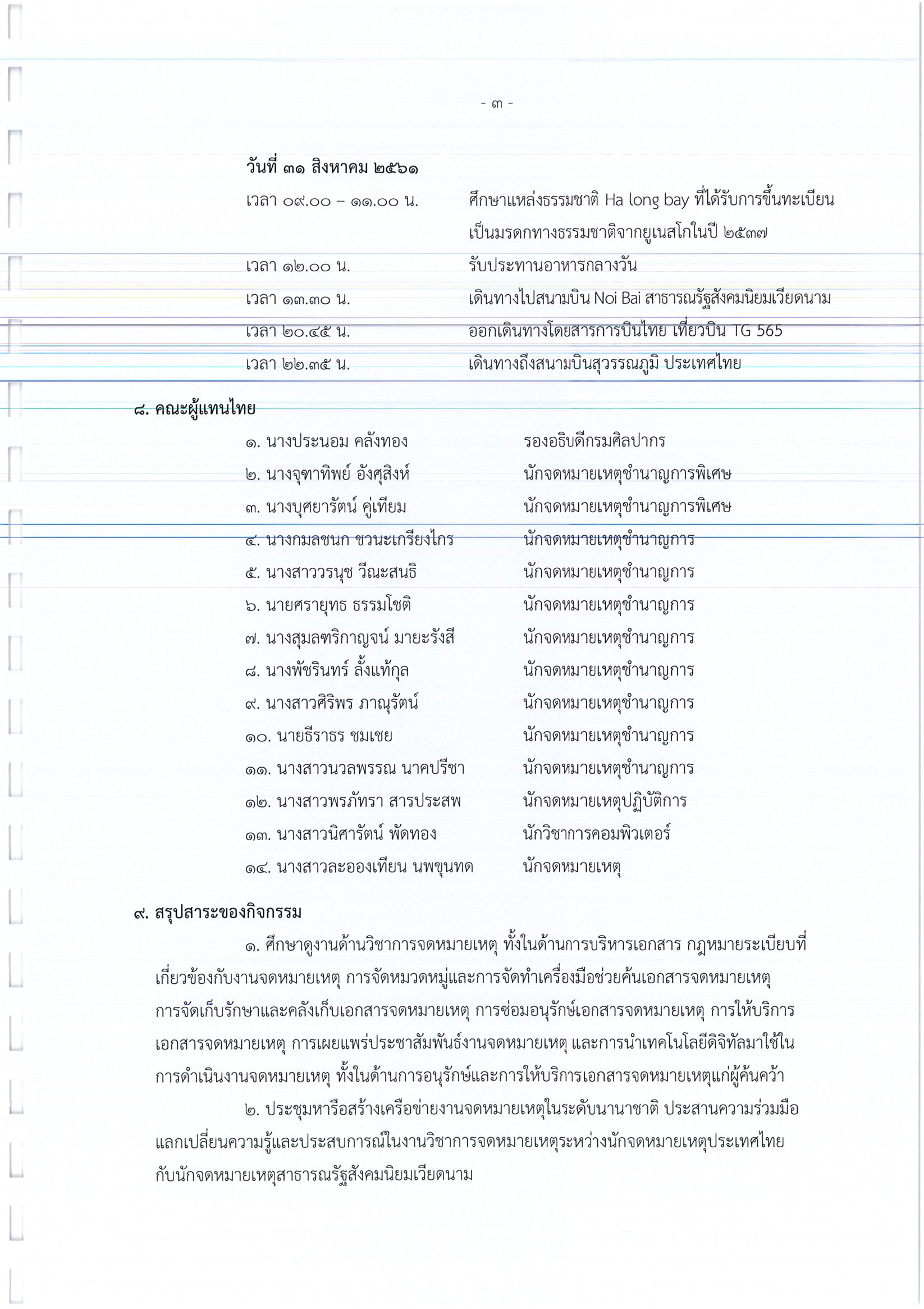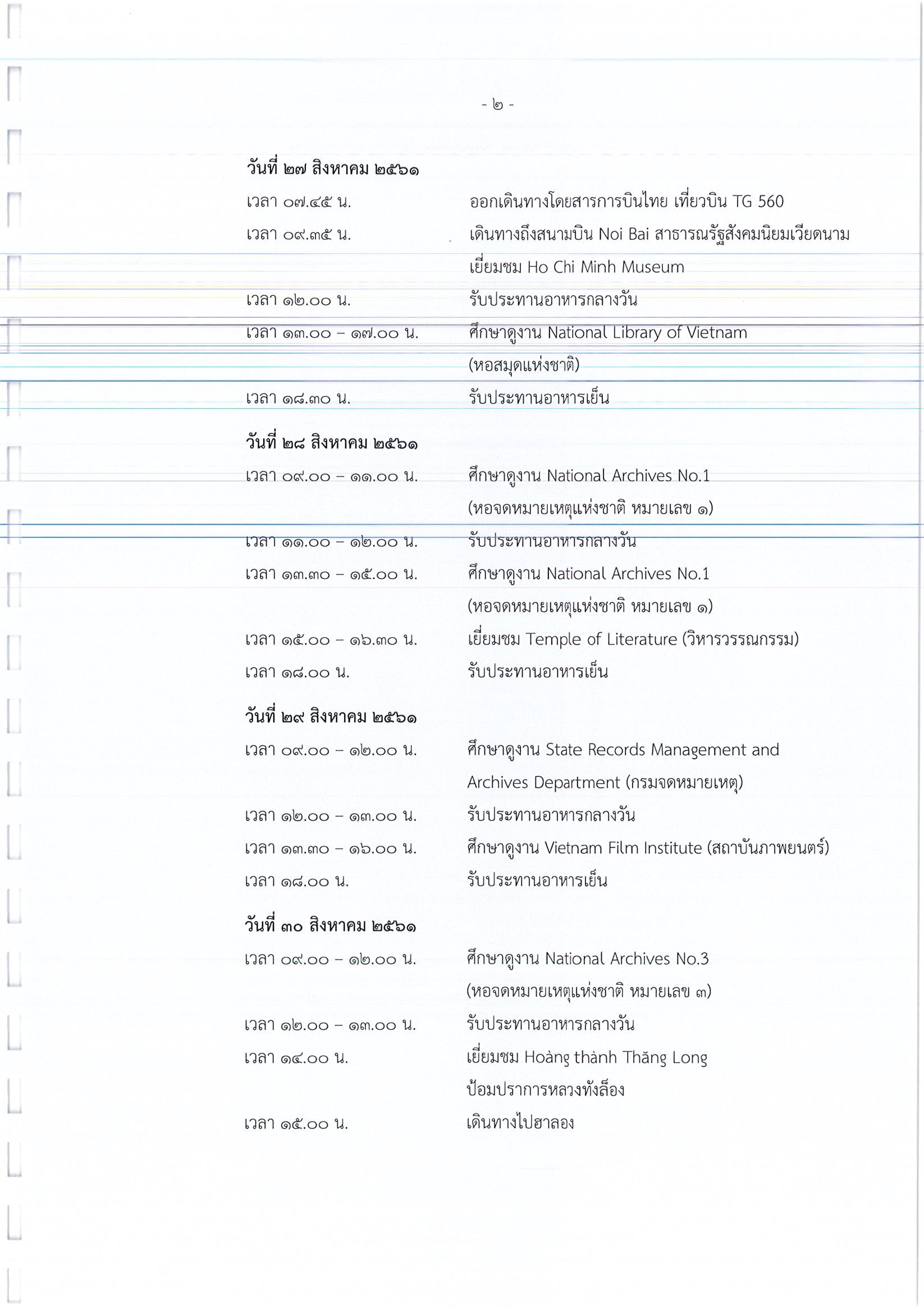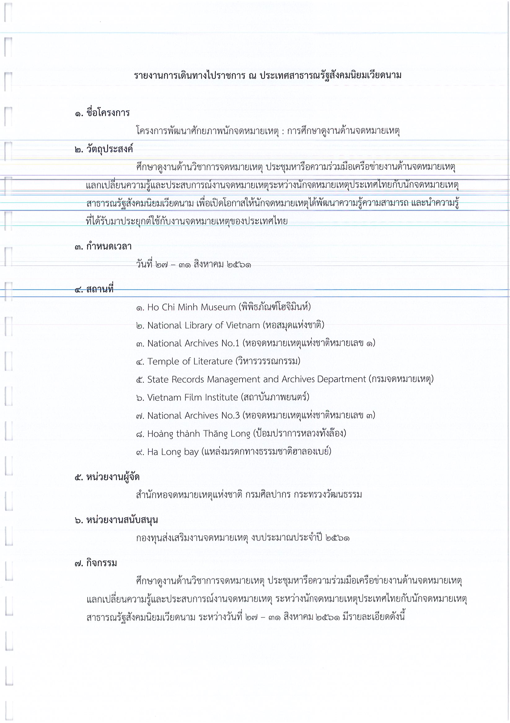รายงานการเดินทางไปราชการ ณ สาธารณรัฐสังคมนิยมเวียดนาม ระหว่างวันที่ 27 – 31 สิงหาคม 2561 โครงการพัฒนาศักยภาพจดหมายเหตุ : การศึกษาดูงานด้านจดหมายเหตุ