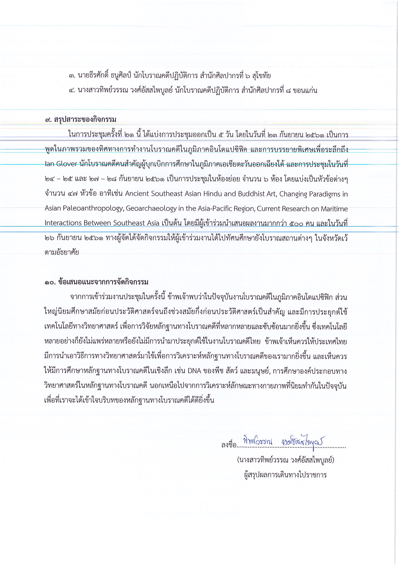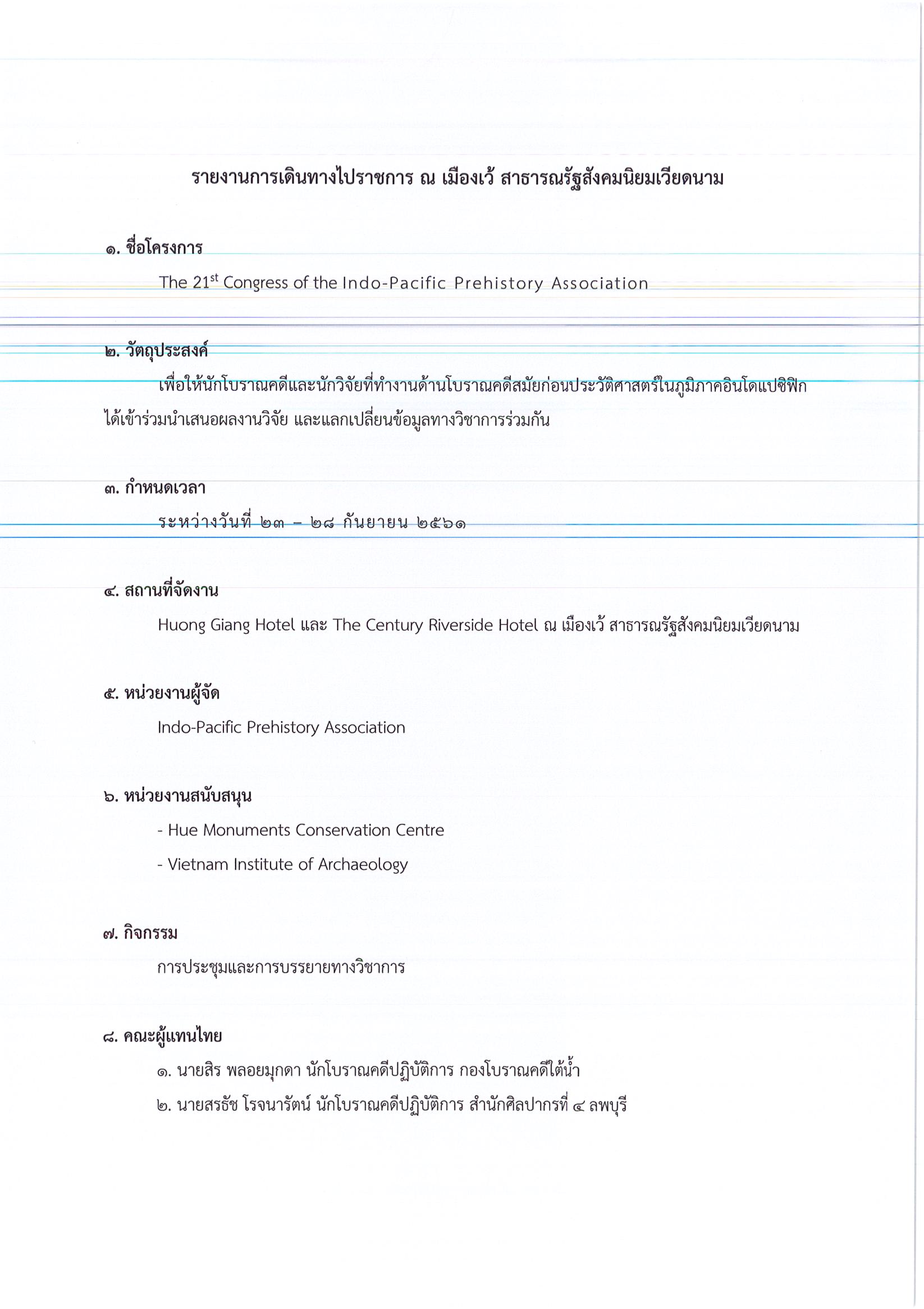 รายงานการเดินทางไปราชการ ณ สาธารณรัฐสังคมนิยมเวียดนาม ระหว่างวันที่ 23 – 29 กันยายน 2561 โครงการ The 21st Congress of the Indo – Pacific Prehistory Association