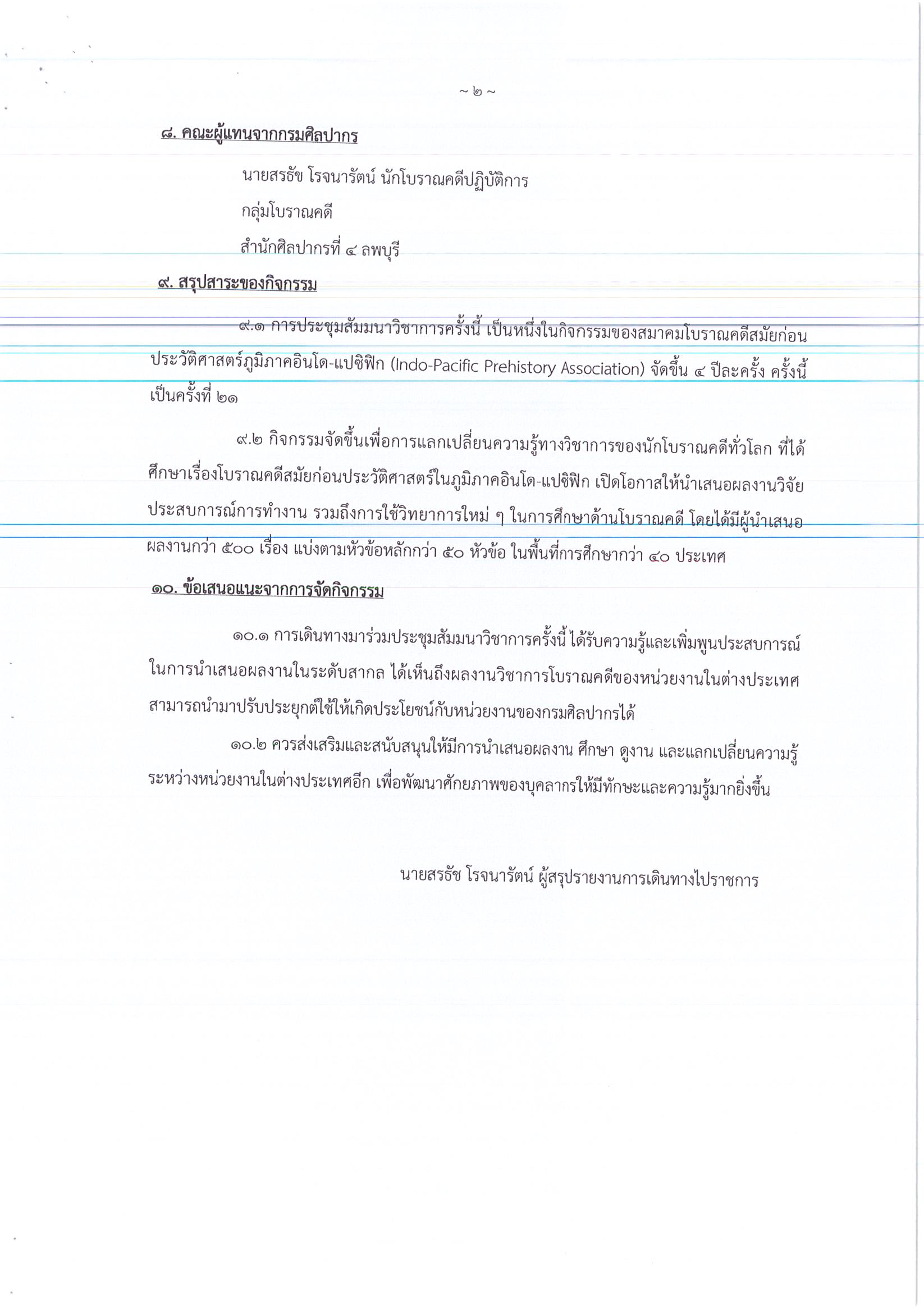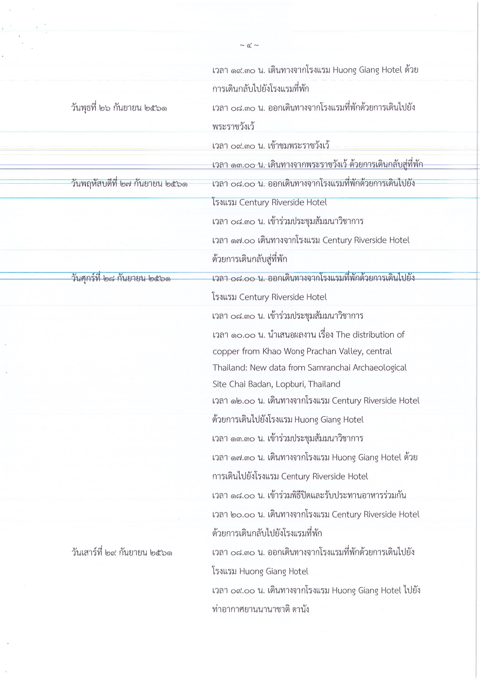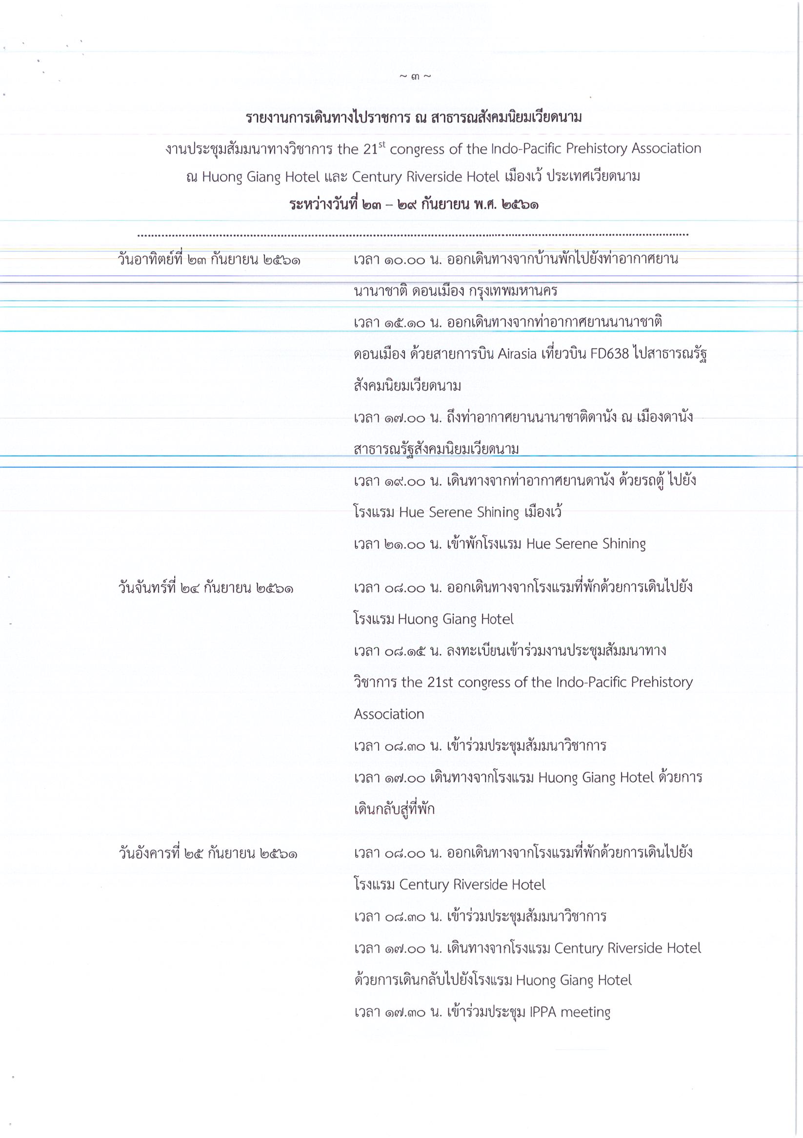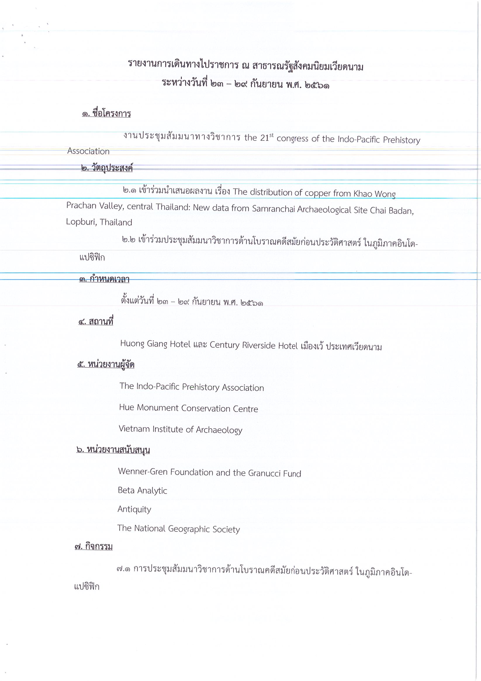 รายงานการเดินทางไปราชการ ณ เมืองเว้ สาธารณรัฐสังคมนิยมเวียดนาม ระหว่างวันที่ 23 – 29 กันยายน 2561 โครงการ The 21st Congress of the Indo – Pacific Prehistory Association