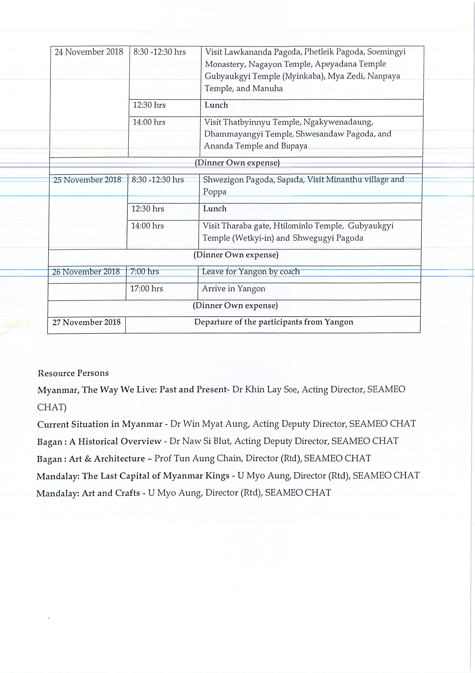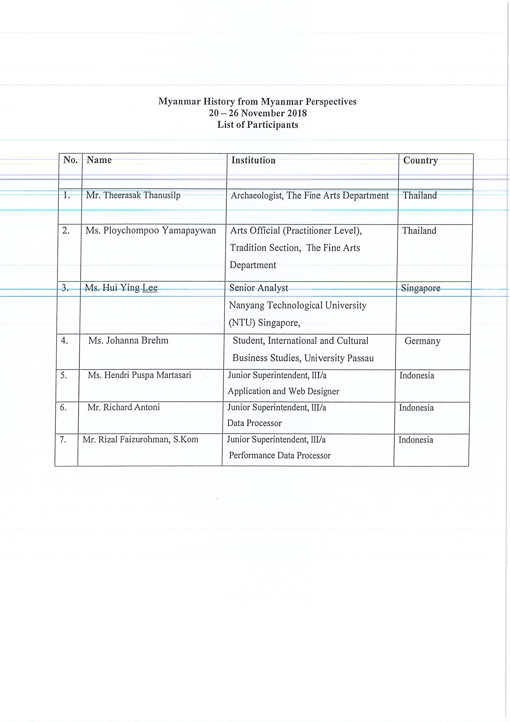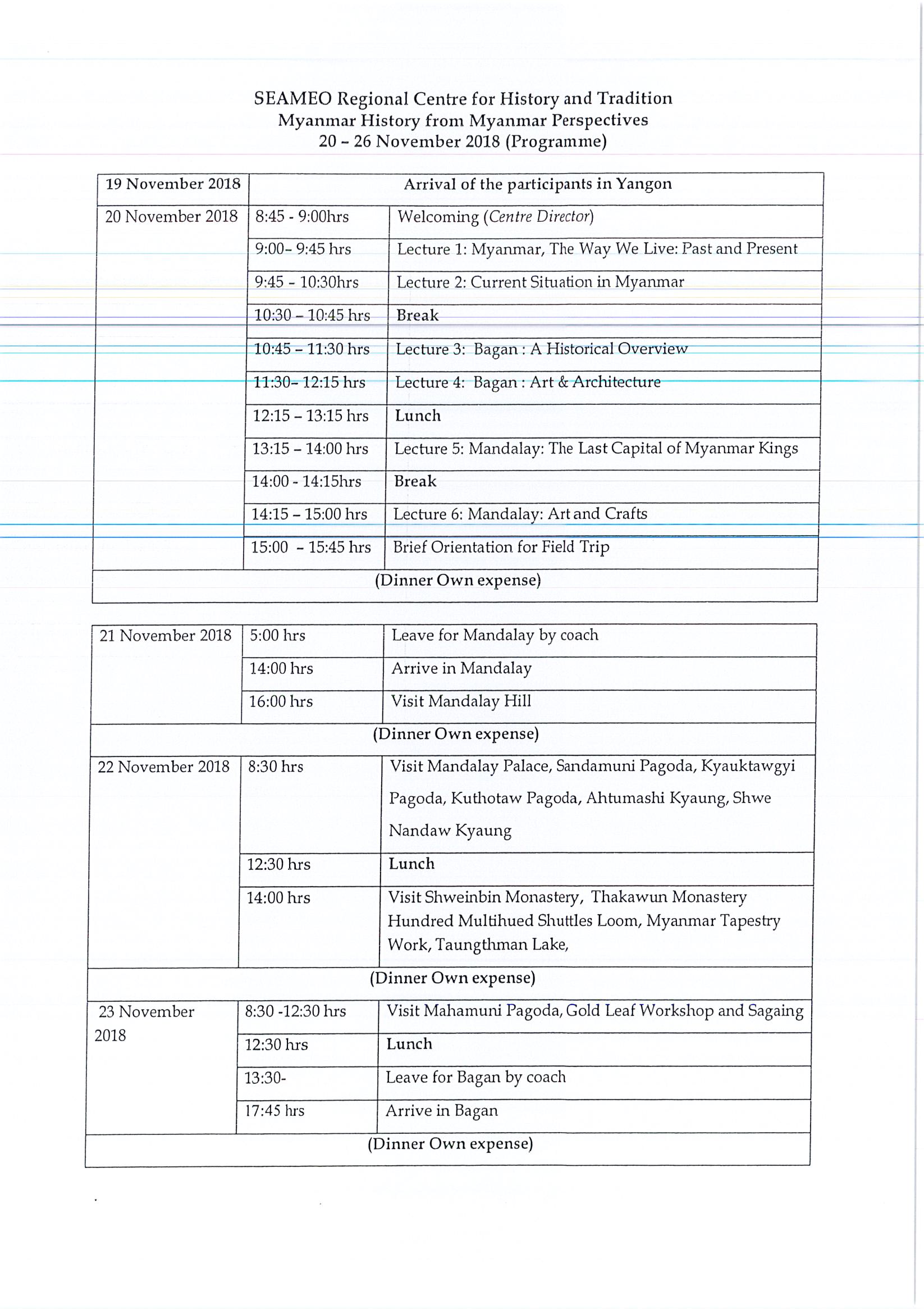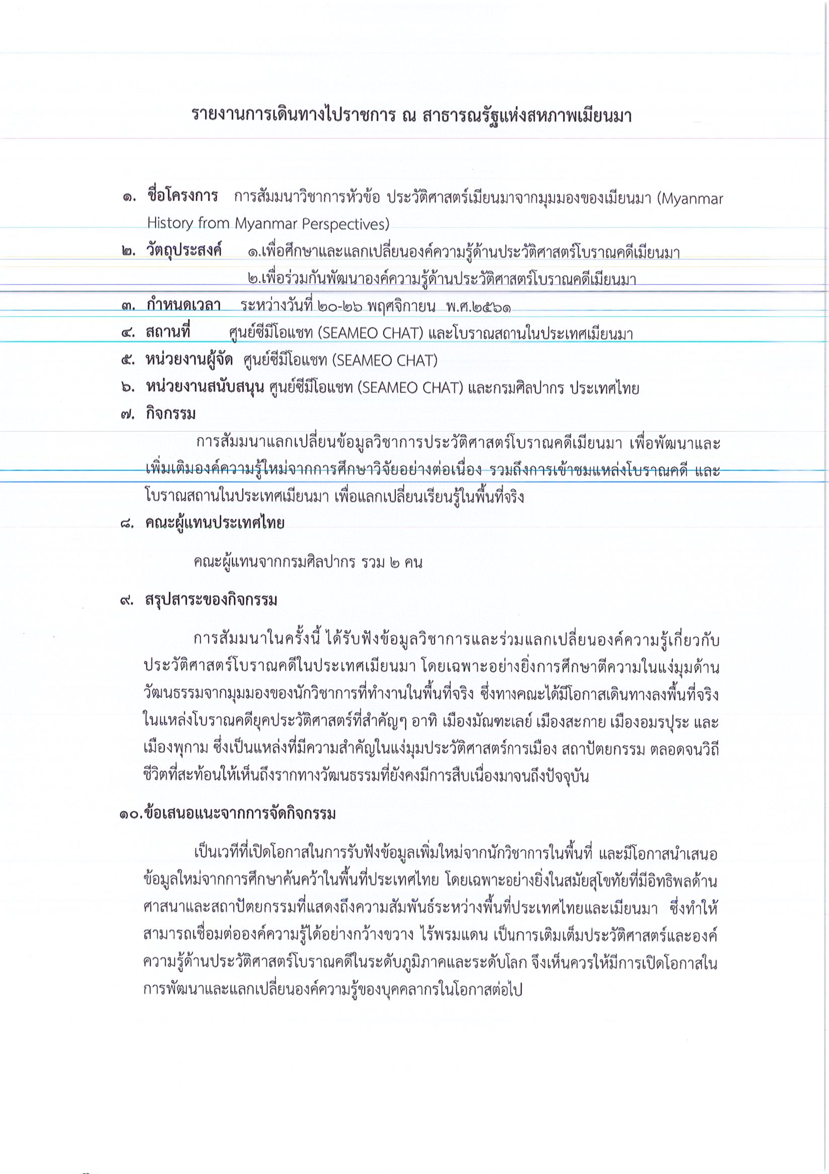 รายงานการเดินทางไปราชการ ณ สาธารณรัฐแห่งสหภาพเมียนมาร์ ระหว่างวันที่ 20 – 26 พฤศจิกายน 2561 โครงการสัมมนาวิชาการ “ประวัติศาสตร์เมียนมาร์จากมุมมองของเมียนมาร์”