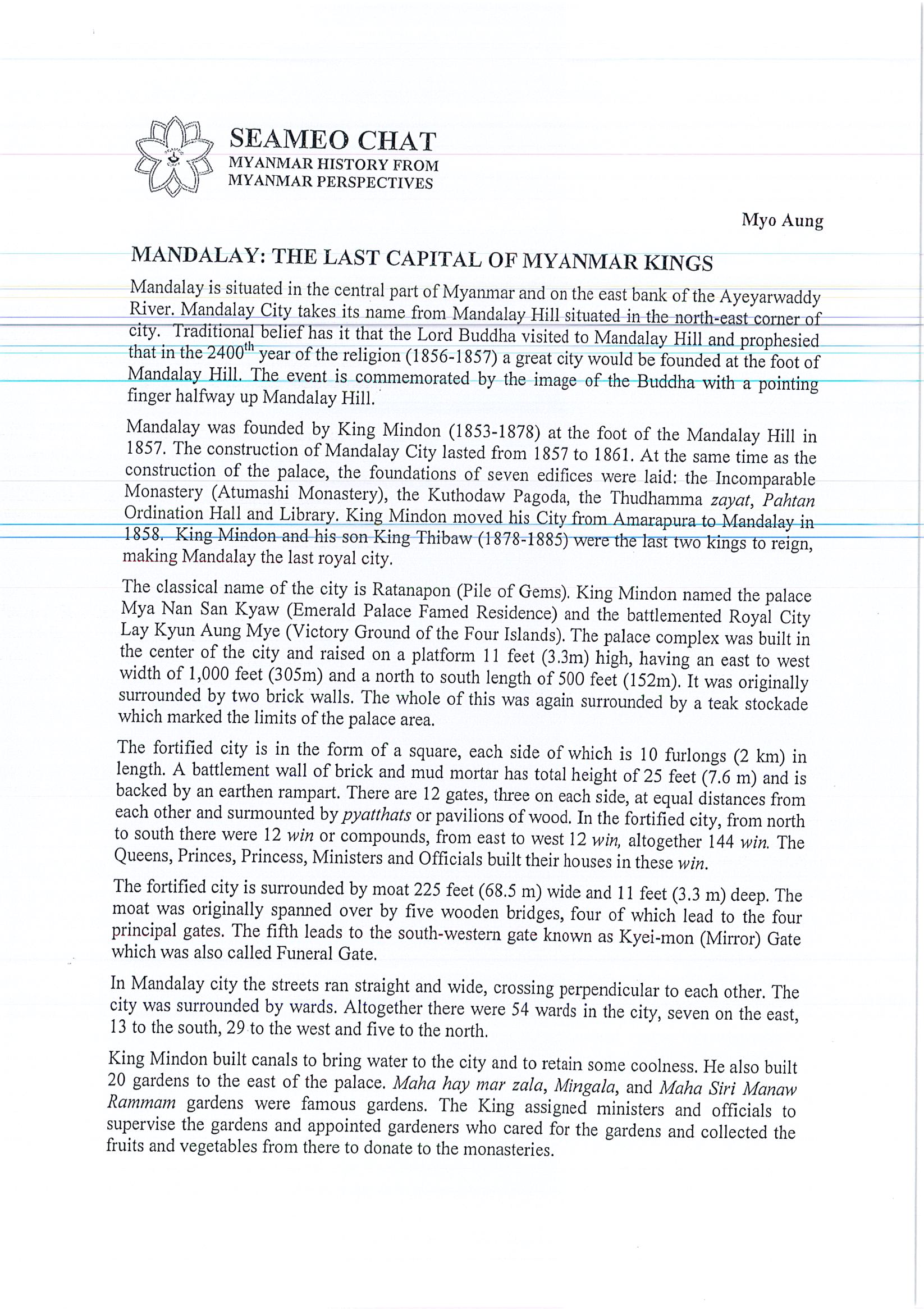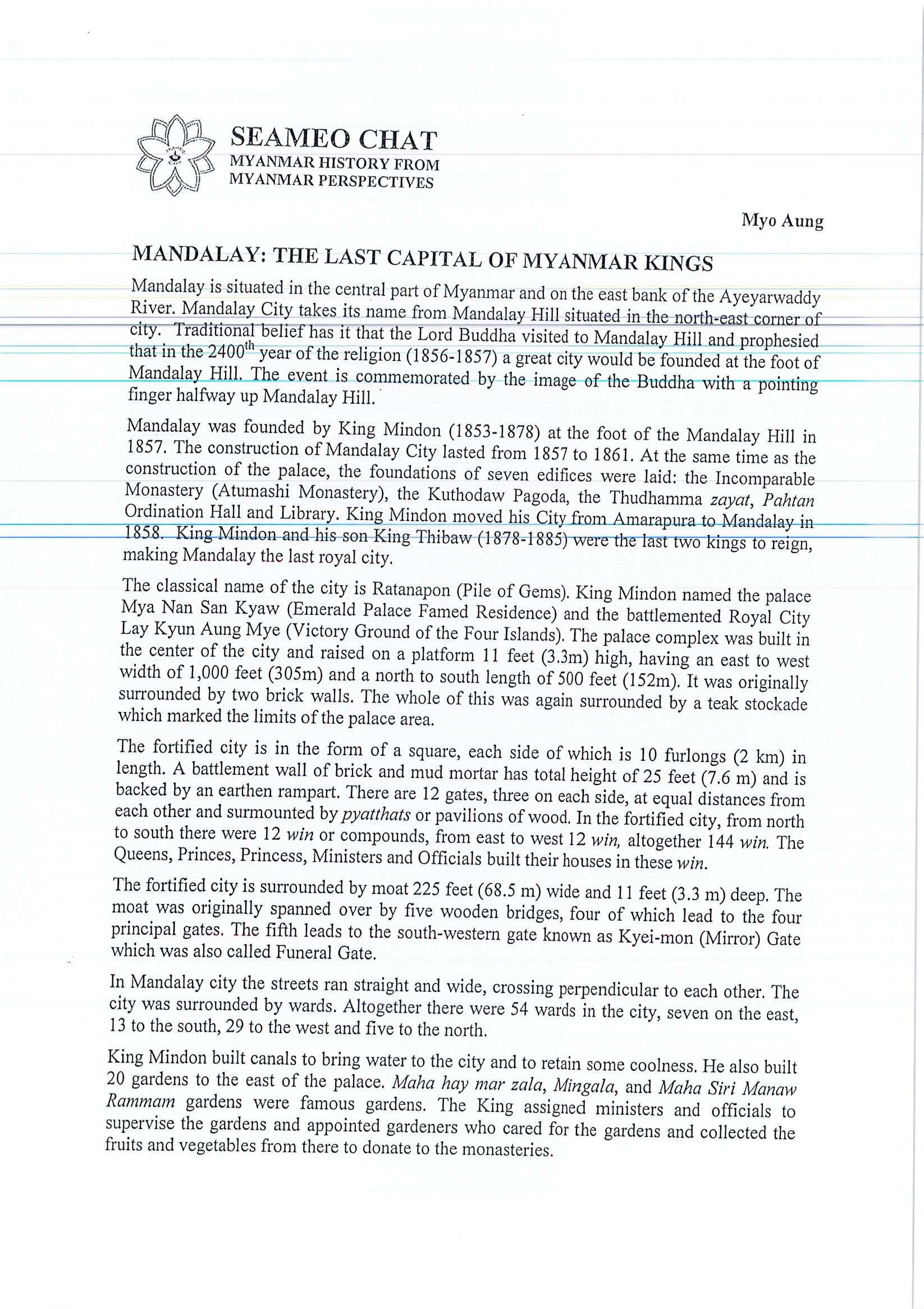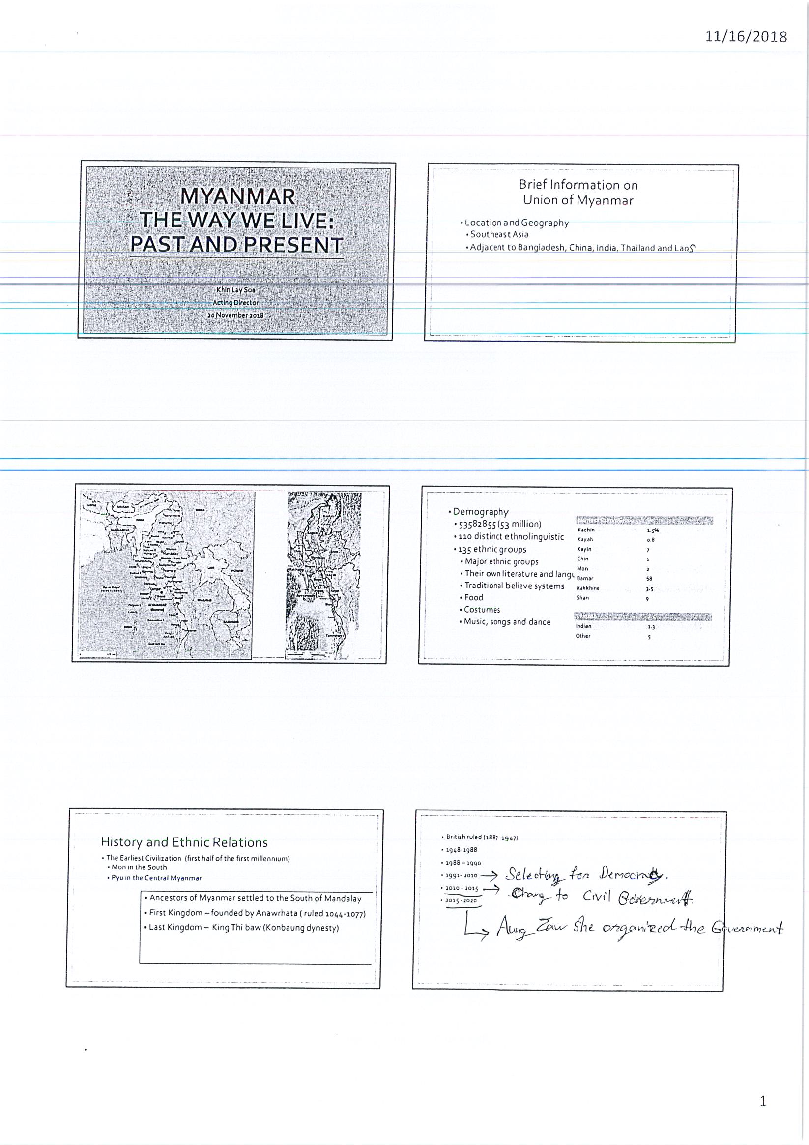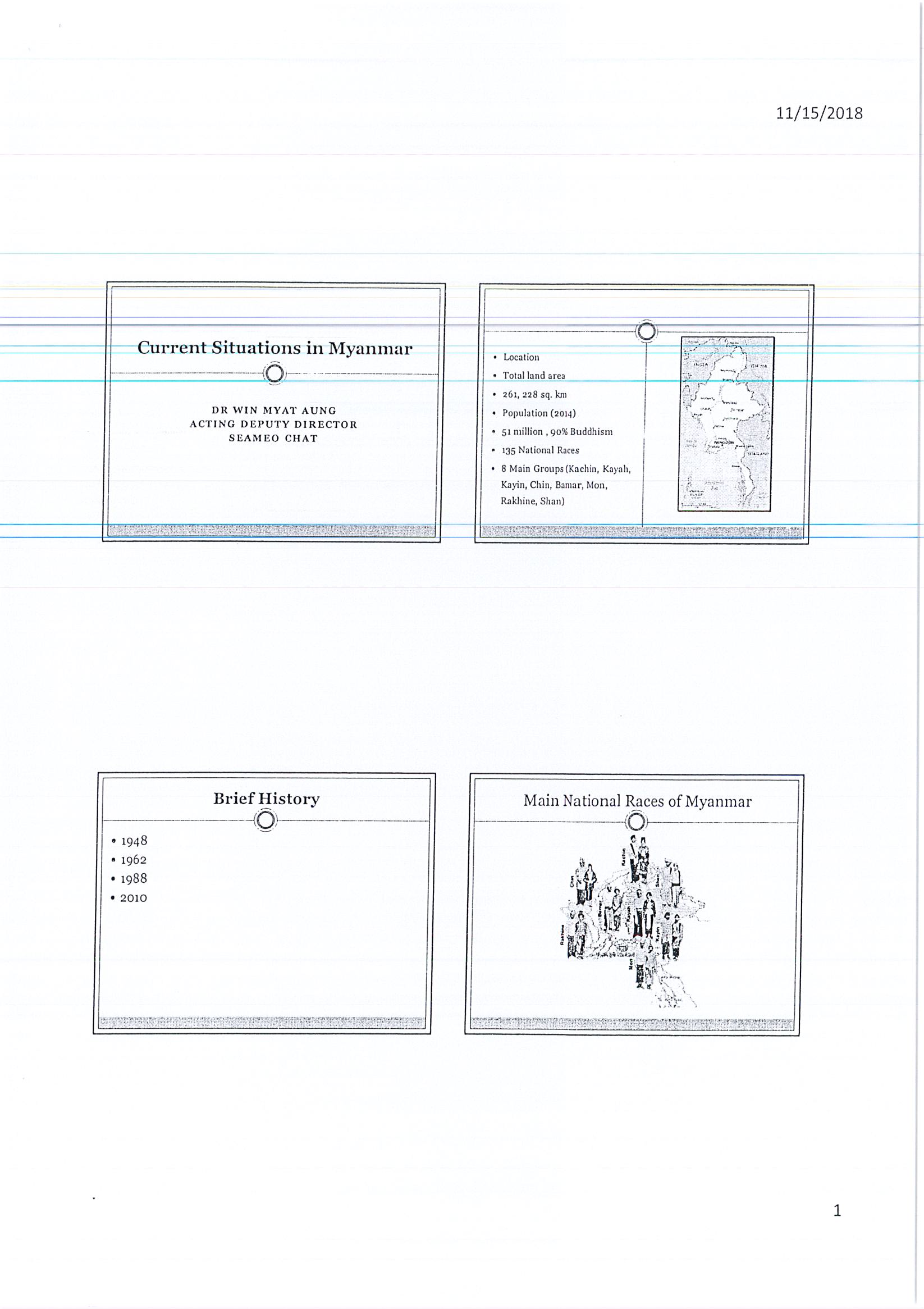 รายงานการเดินทางไปราชการ ณ สาธารณรัฐแห่งสหภาพเมียนมาร์ ระหว่างวันที่ 20 – 26 พฤศจิกายน 2561 โครงการสัมมนาวิชาการ “ประวัติศาสตร์เมียนมาร์จากมุมมองของเมียนมาร์”