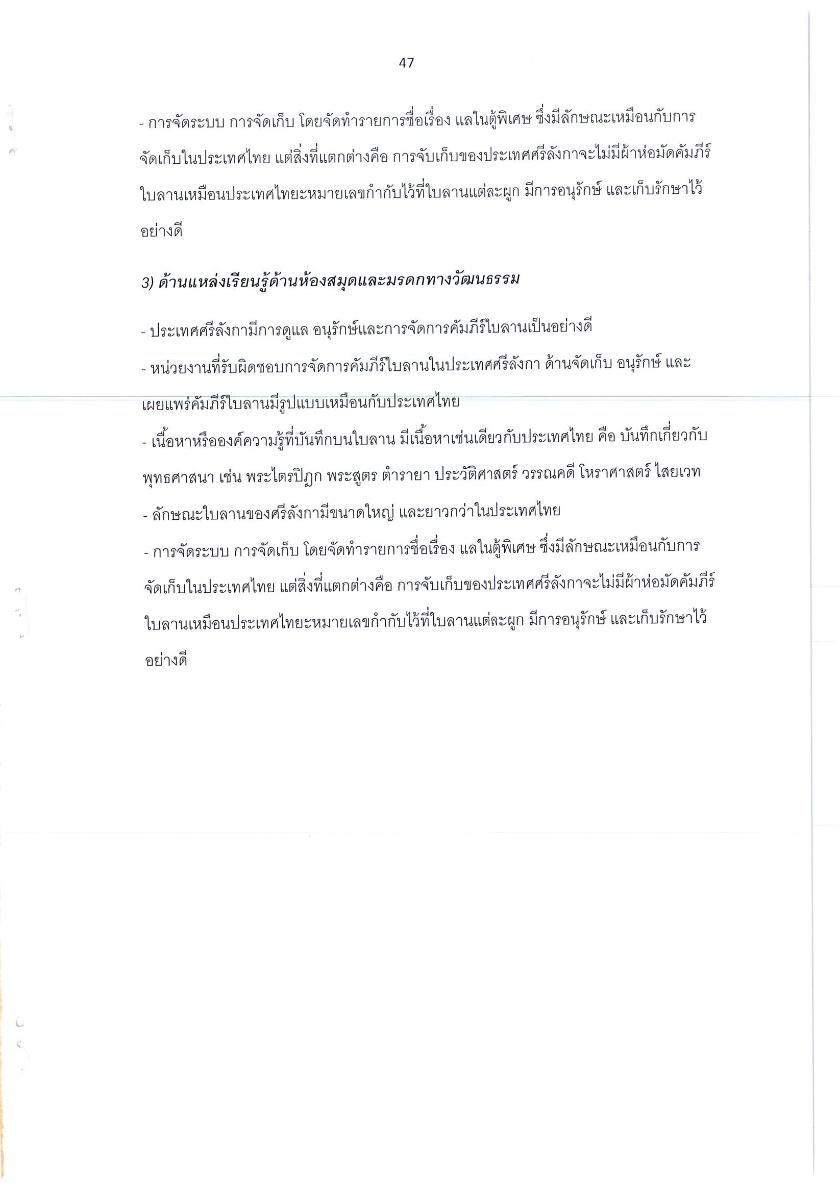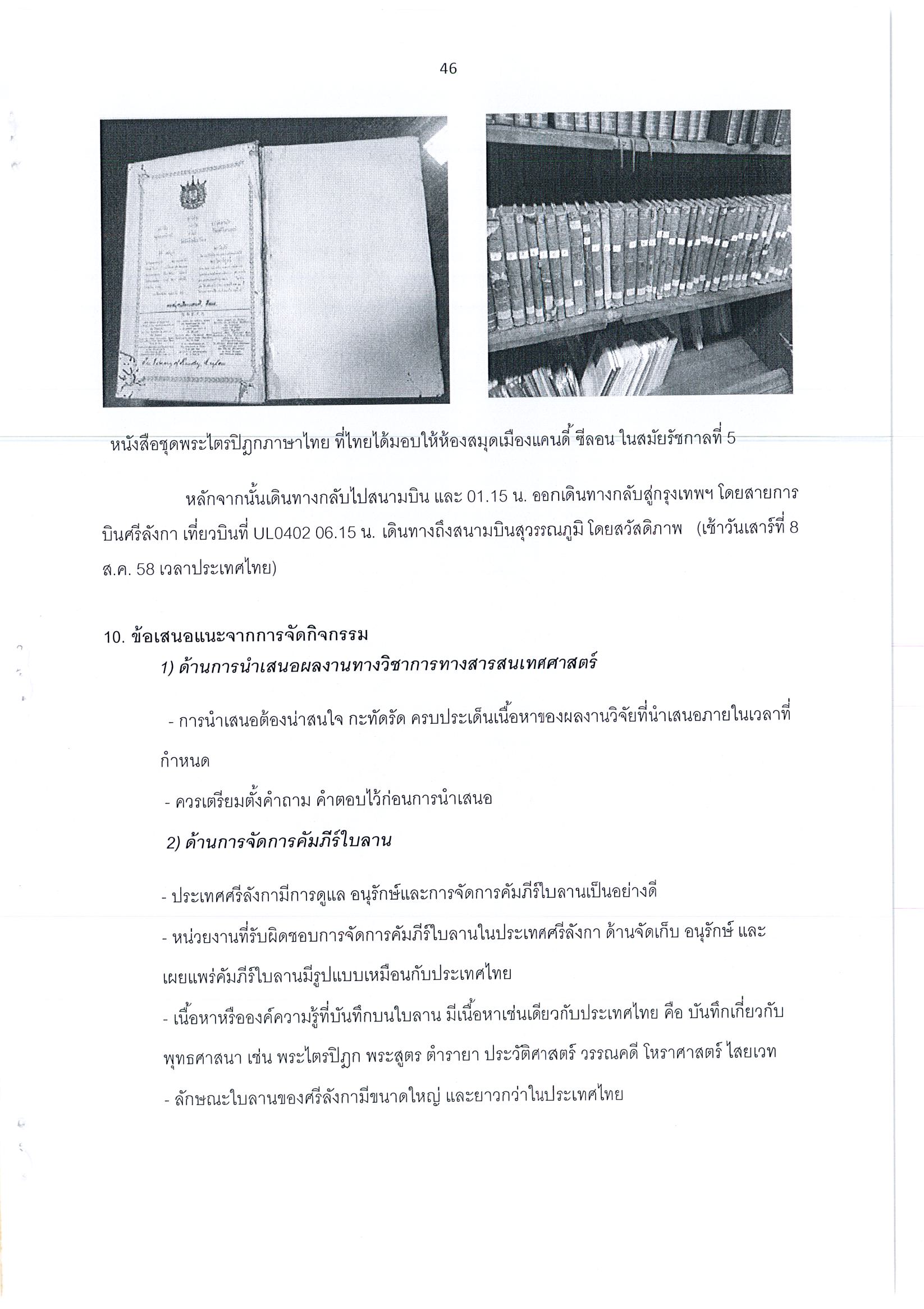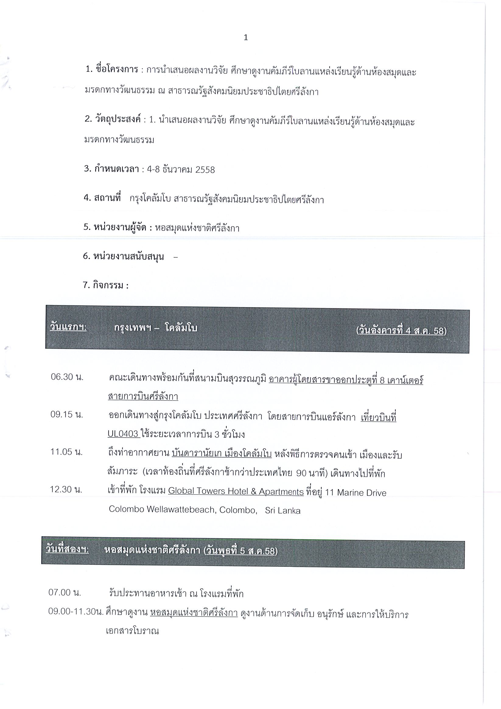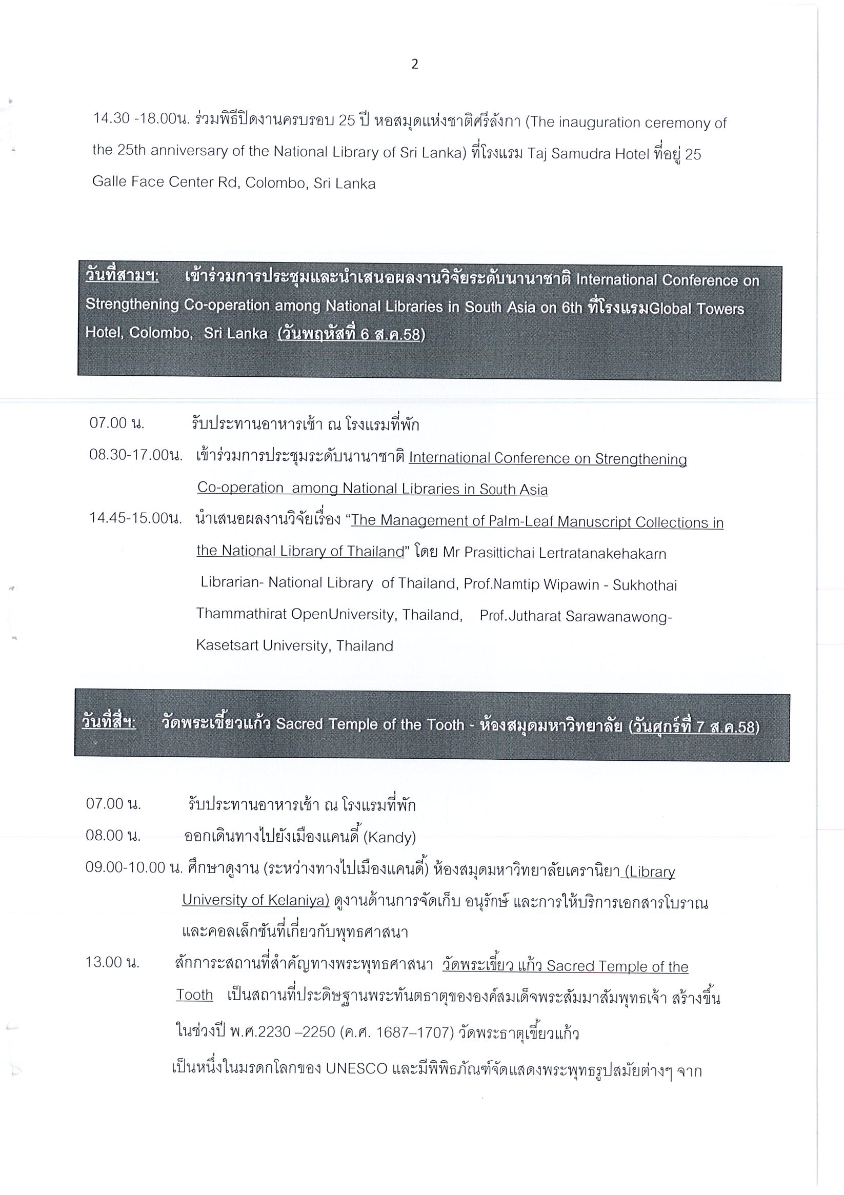 รายงานการเดินไปราช ณ สาธารณรัฐสังคมนิยมประชาธิปไตยศรีลังกา ระหว่างวันที่ 4 – 8 สิงหาคม 2558 โครงการนำเสนอผลงานวิจัย ศึกษาดูงานคัมภีร์ใบลาน และแหล่งเรียนรู้ด้านห้องสมุดและมรดกทางวัฒนธรรม