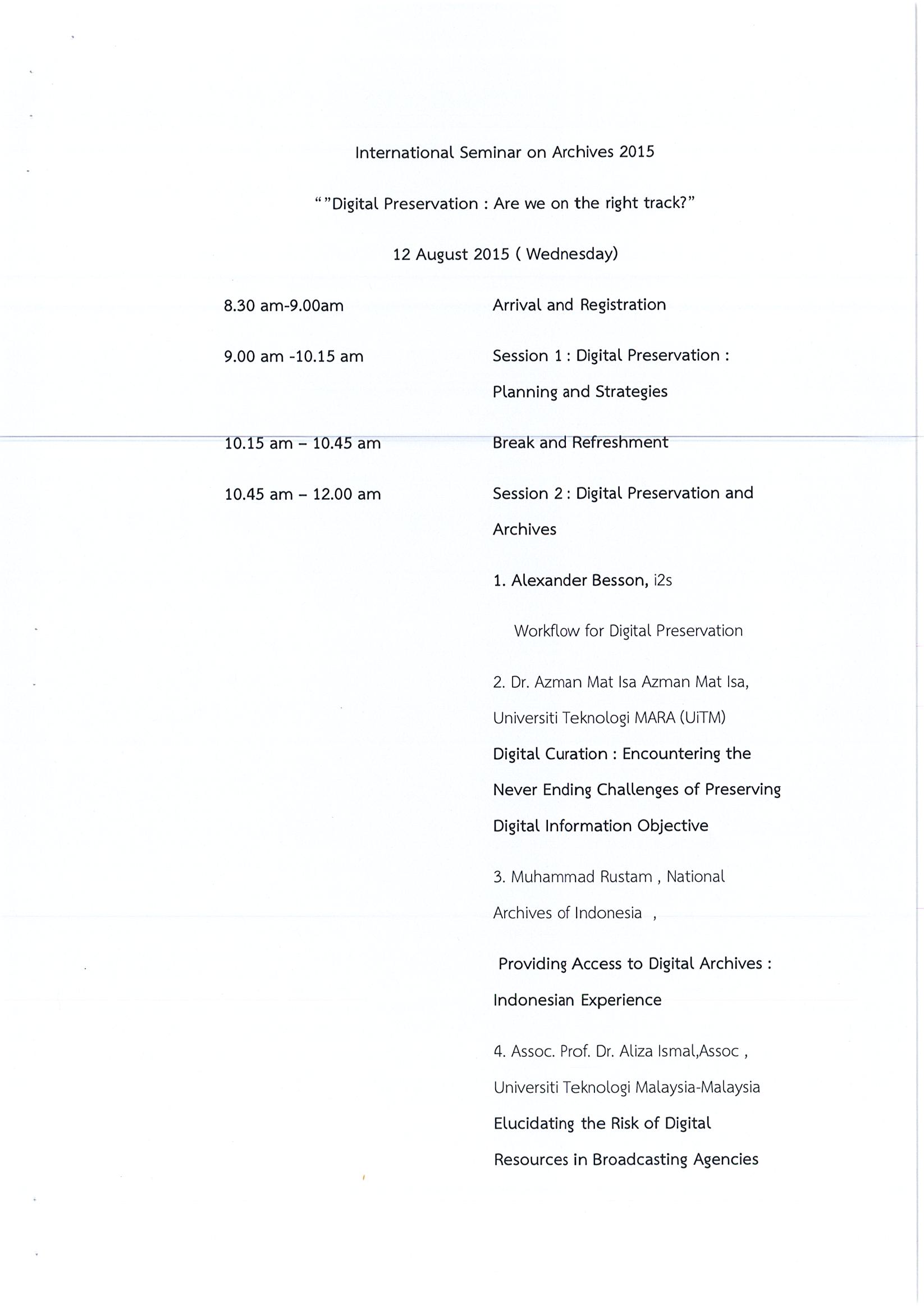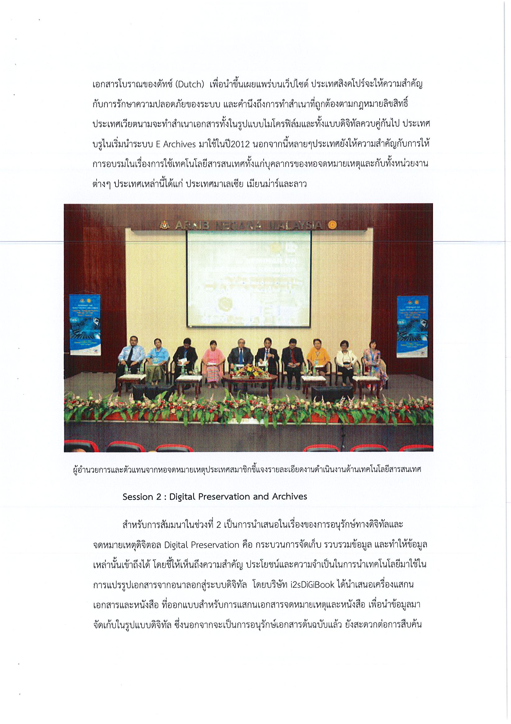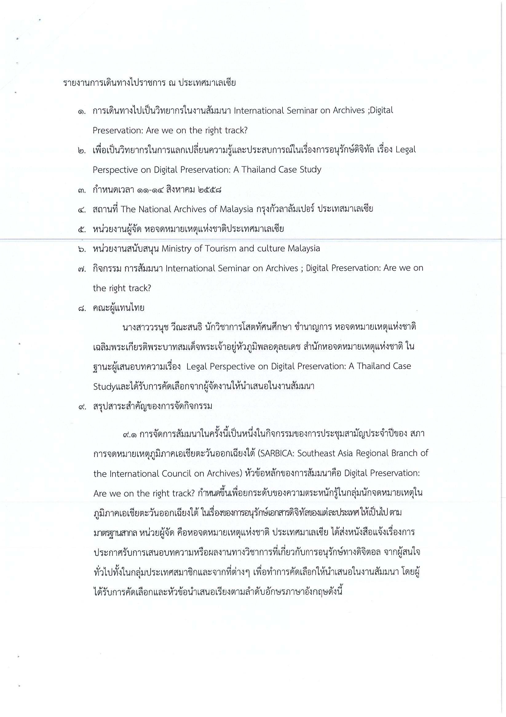 รายงานการเดินทางไปราชการ ณ สมาพันธรัฐมาเลเซีย ระหว่างวันที่ 11 – 14 สิงหาคม 2558 โครงการเข้าร่วมการประชุมและสัมมนาทางวิชาการของสภาจดหมายเหตุระหว่างประเทศประจำภาคพื้นเอเชียตะวันออกเฉียงใต้