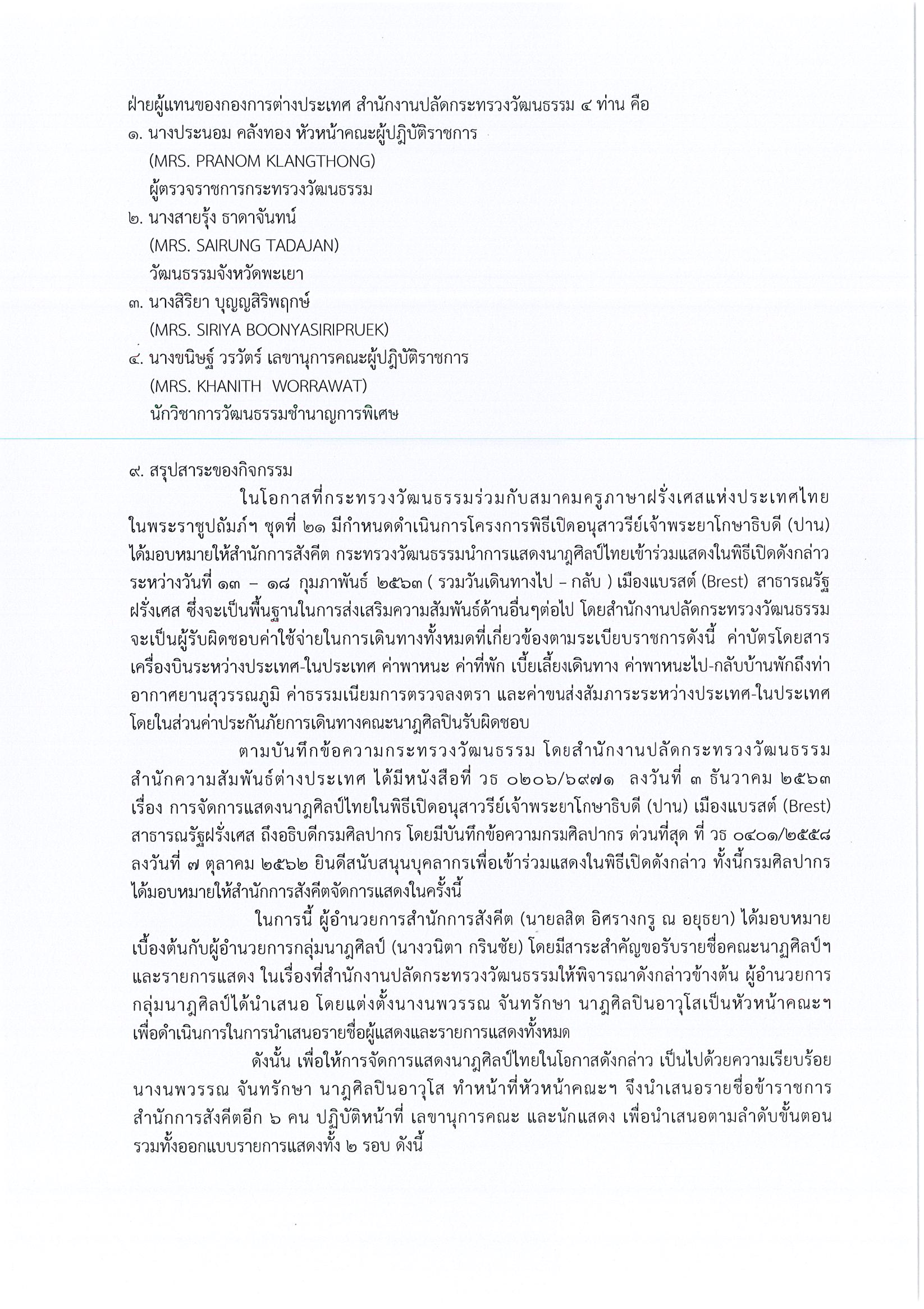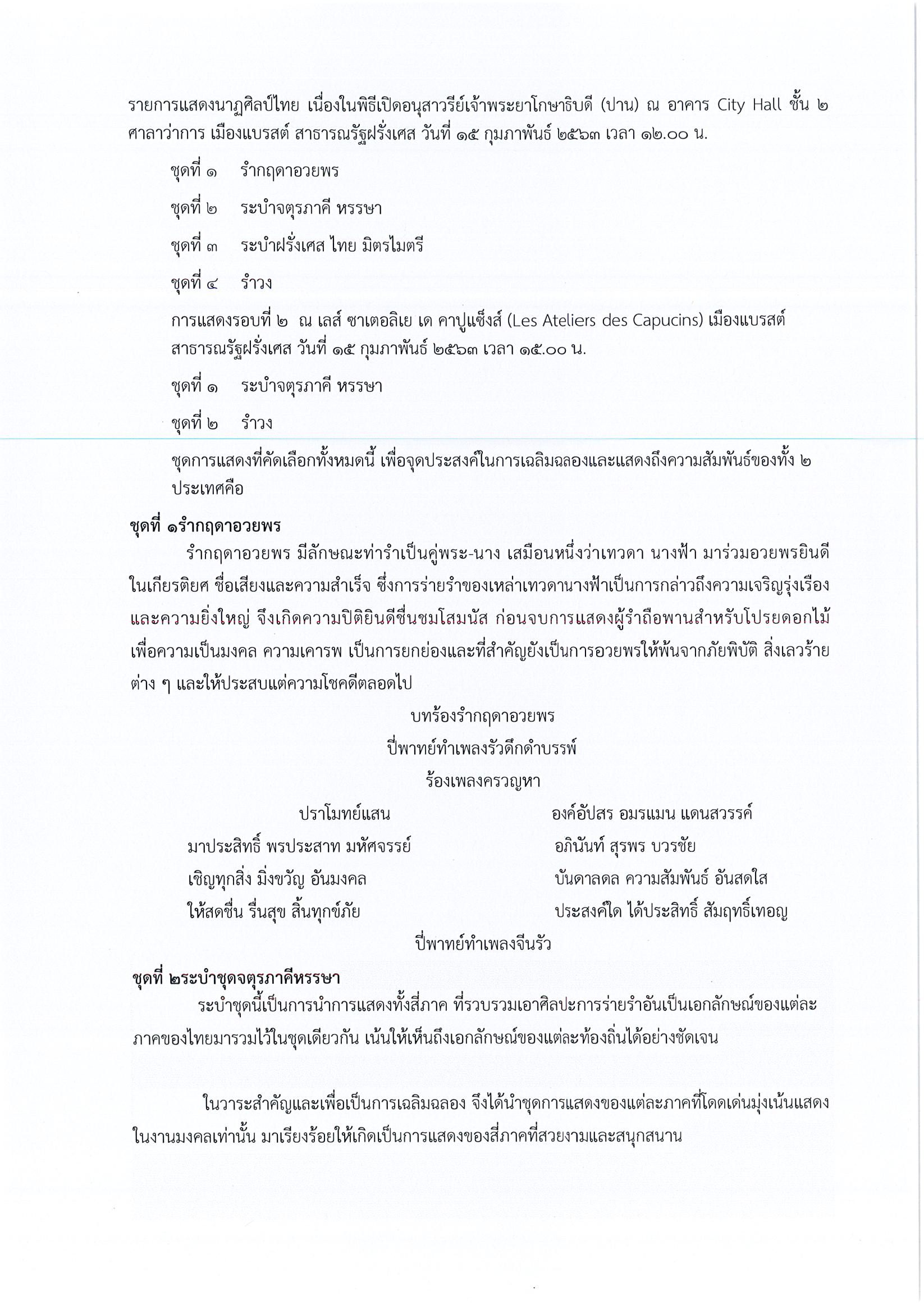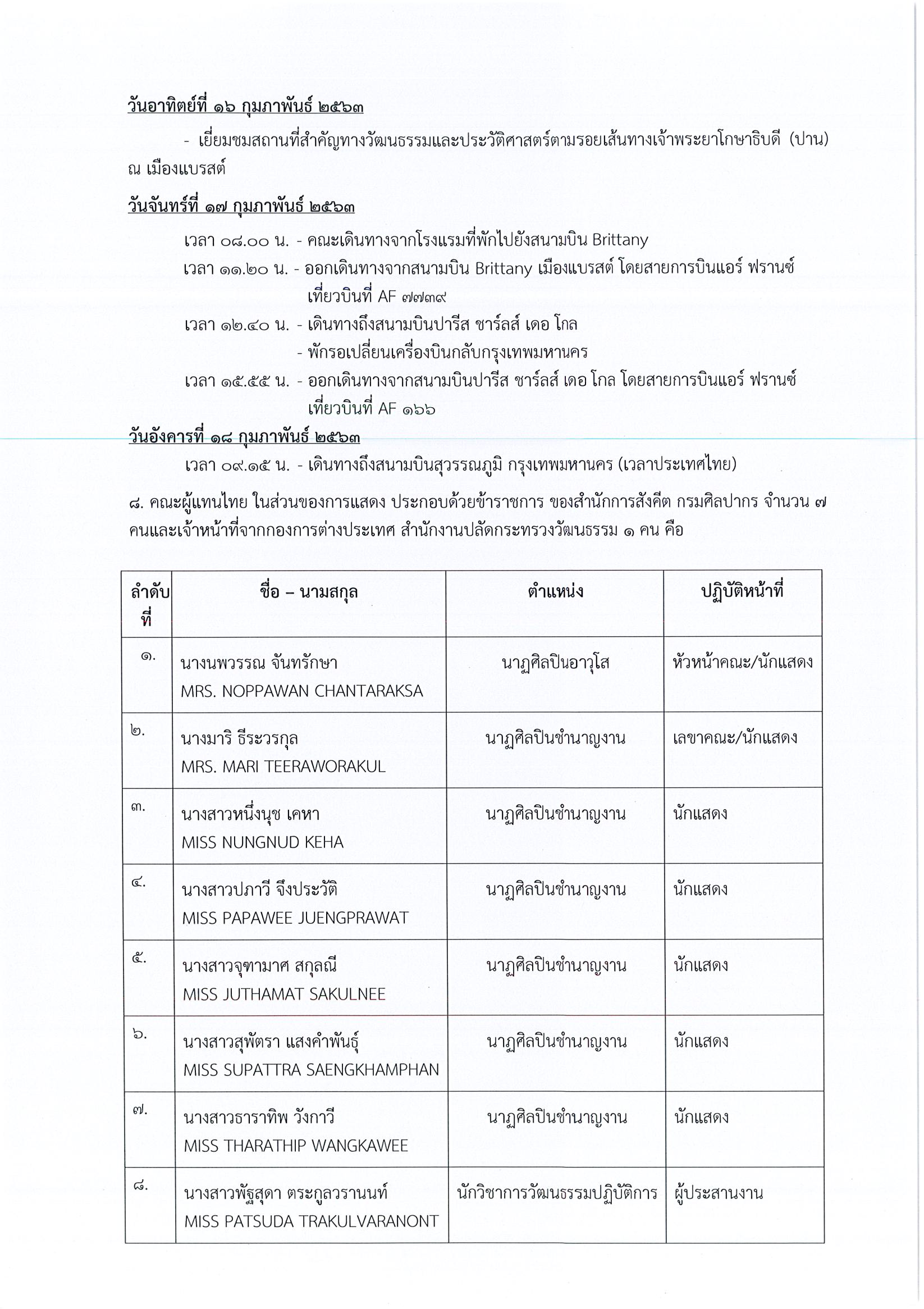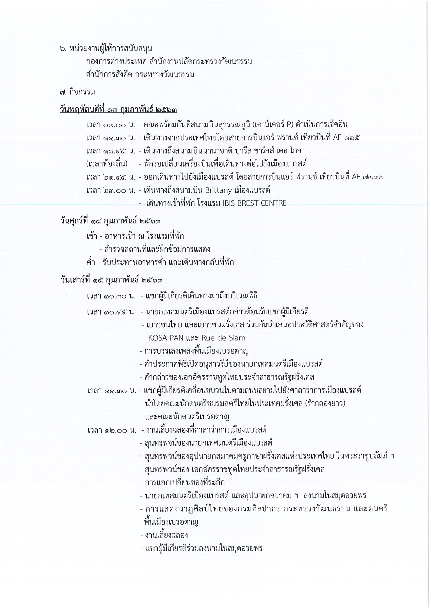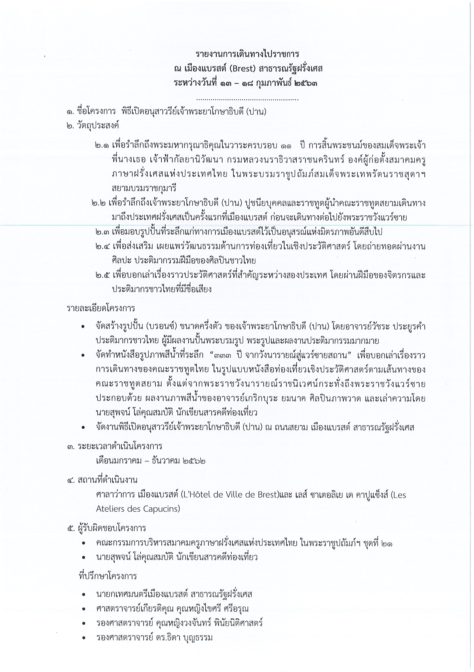 รายงานการเดินทางไปราชการ ณ สาธารณรัฐฝรั่งเศส ระหว่างวันที่ 13 – 18 กุมภาพันธ์ 2563 โครงการเปิดอนุสาวรีย์เจ้าพระยาโกษาธิบดี (ปาน) ณ เมืองแบรสต์