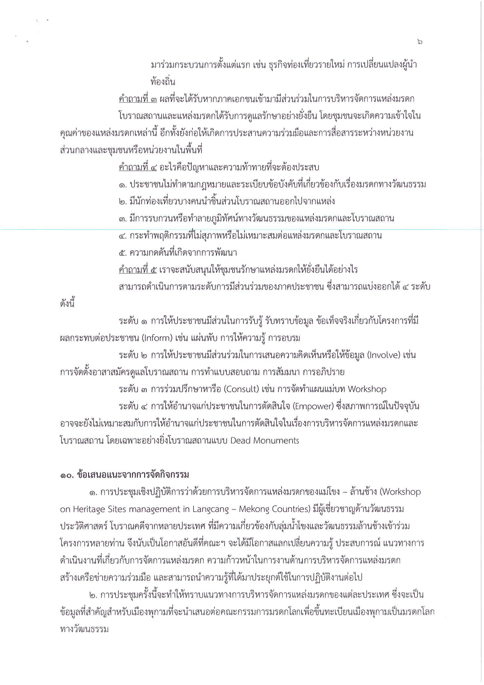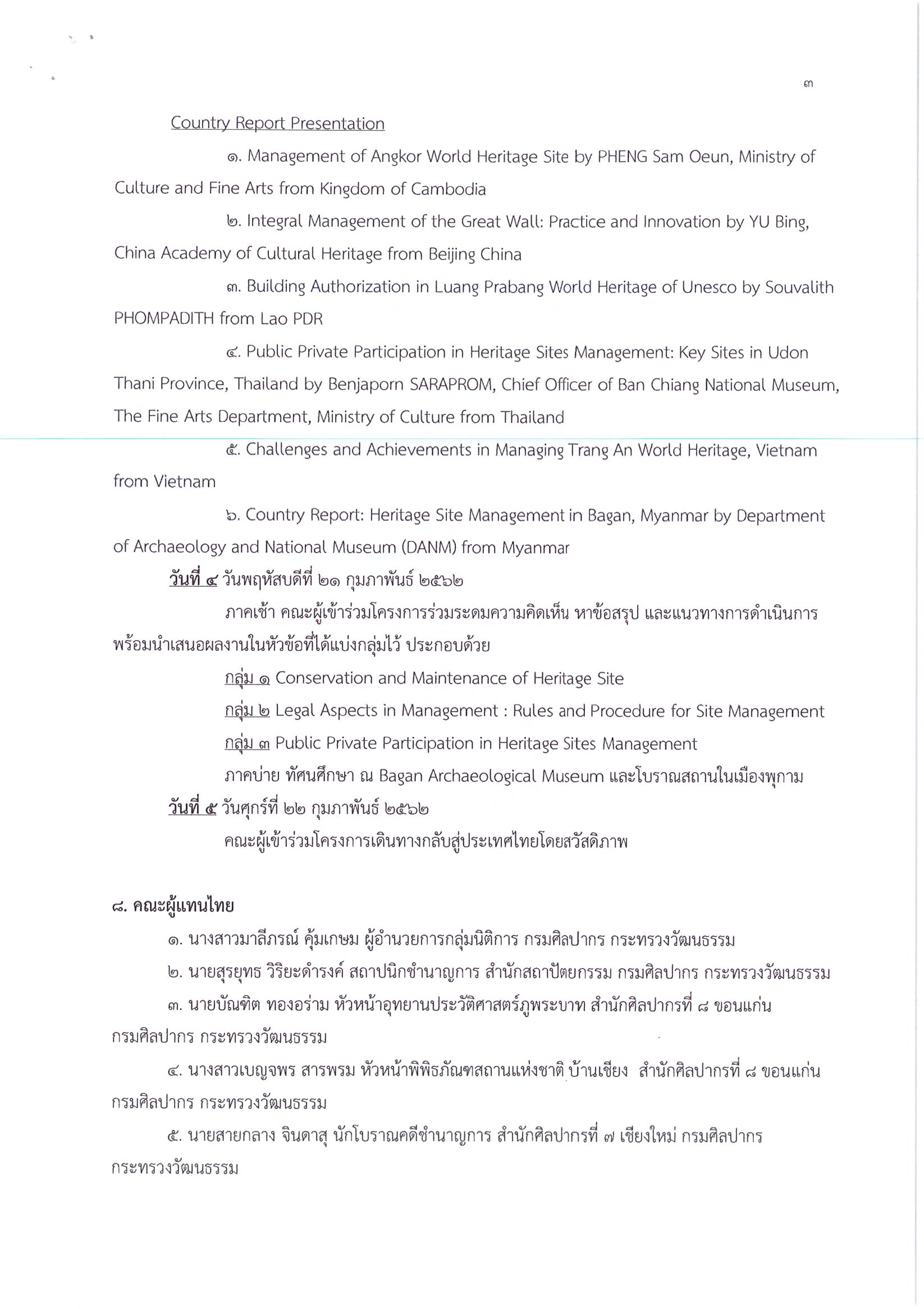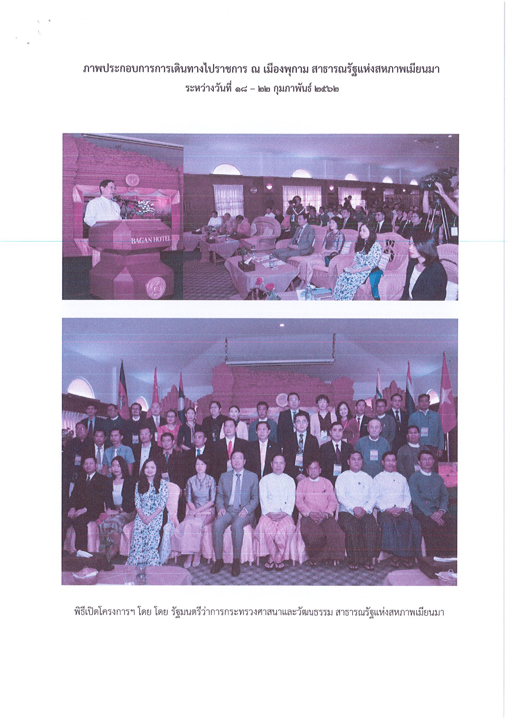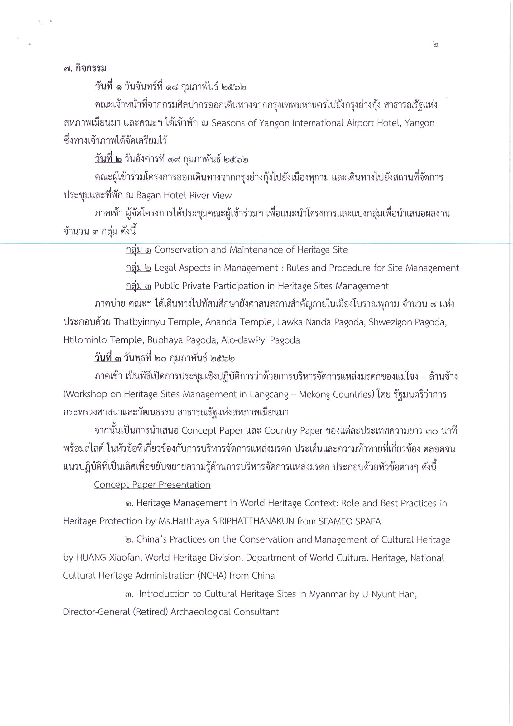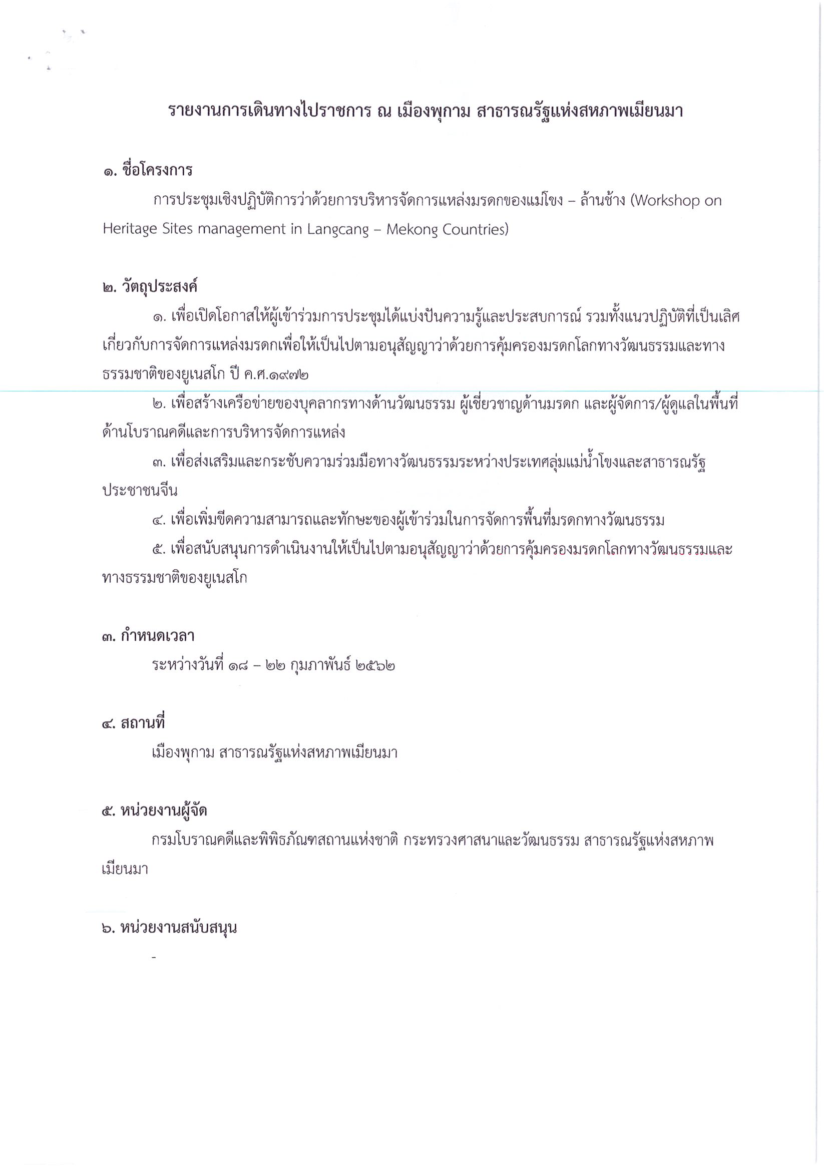 รายงานการเดินทางไปราชการ ณ สาธารณรัฐแห่งสหภาพเมียนมาร์ ระหว่างวันที่ 18 – 22 กุมภาพันธ์ 2562 โครงการประชุมเชิงปฏิบัติการว่าด้วยการบริหารจัดการแหล่งมรดกโลกแม่โขง – ล้านช้าง