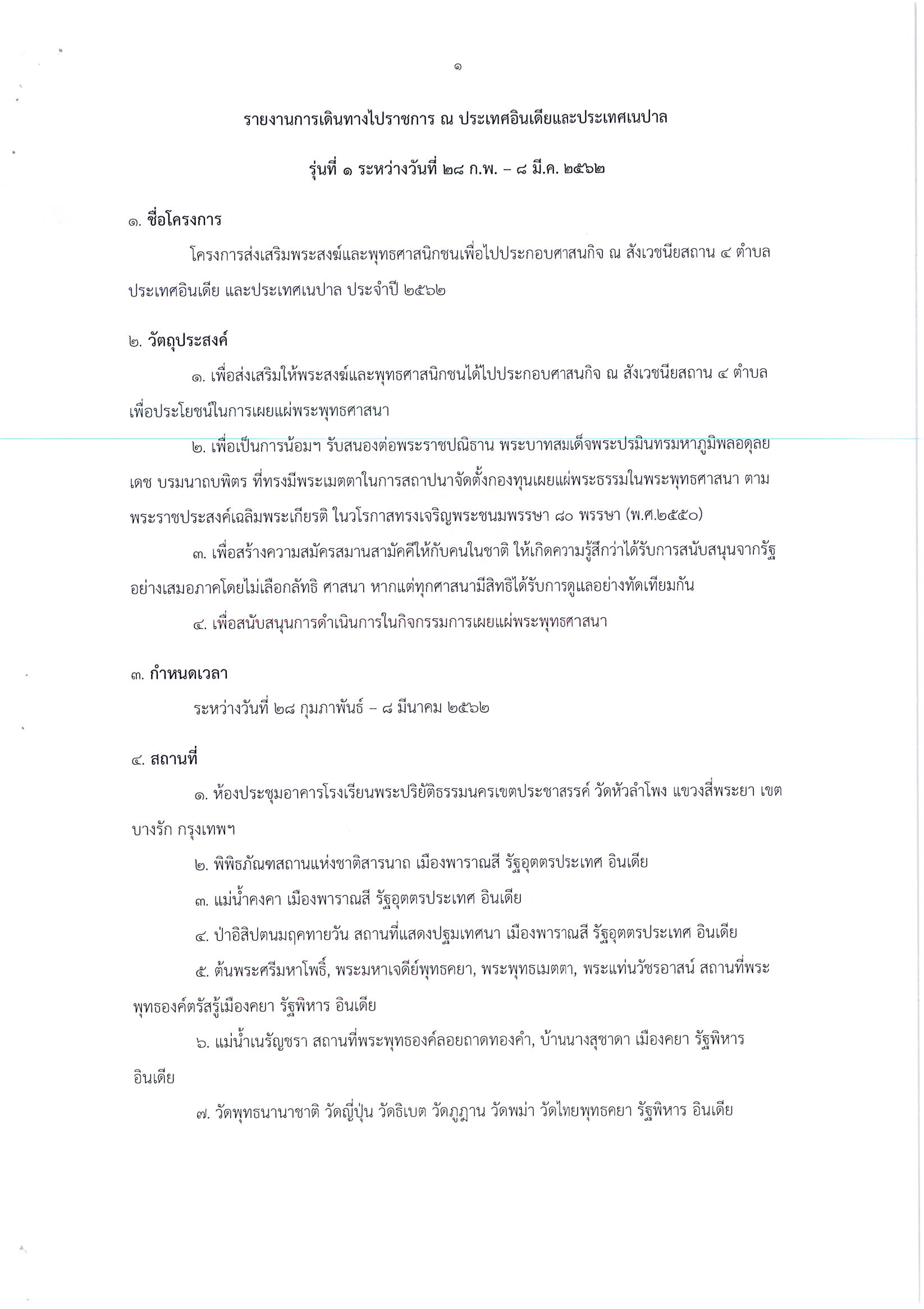 รายงานการเดินทางไปราชการ ณ สาธารณรัฐอินเดีย และ สหพันธ์สาธารณรัฐประชาธิปไตยเนปาล โครงการส่งเสริมพระสงฆ์แลพุทธศาสนิกชนเพื่อไปประกอบศาสนกิจ ณ สังเวชนียสถาน 4 ตำบล