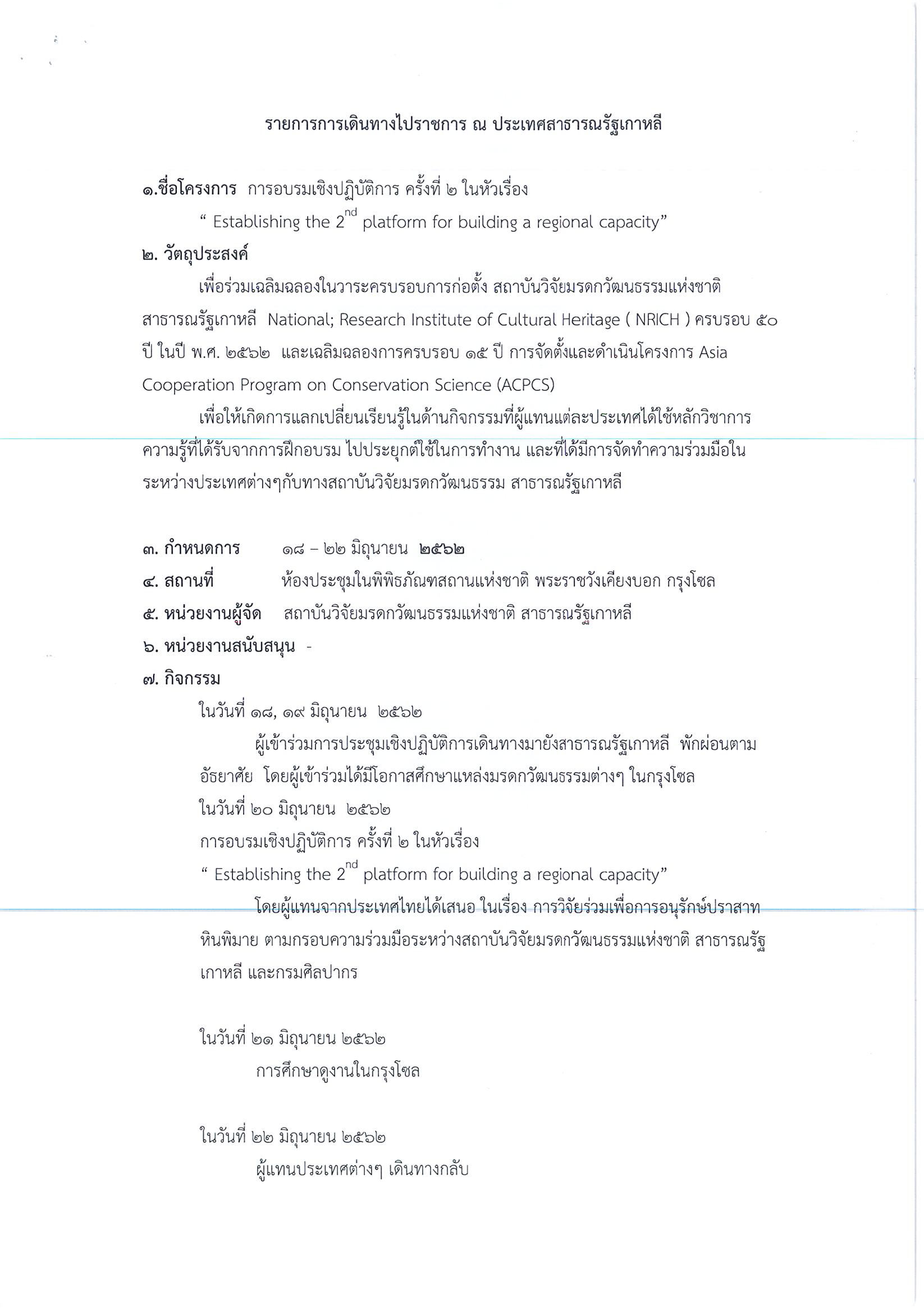 รายงานการเดินทางไปราชการ ณ สาธารณรัฐเกาหลี ระหว่างวันที่ 18 – 22 มิถุนายน 2562 โครงการอบรมเชิงปฏิบัติการ “Establishing the 2nd platform for building a regional capacity”