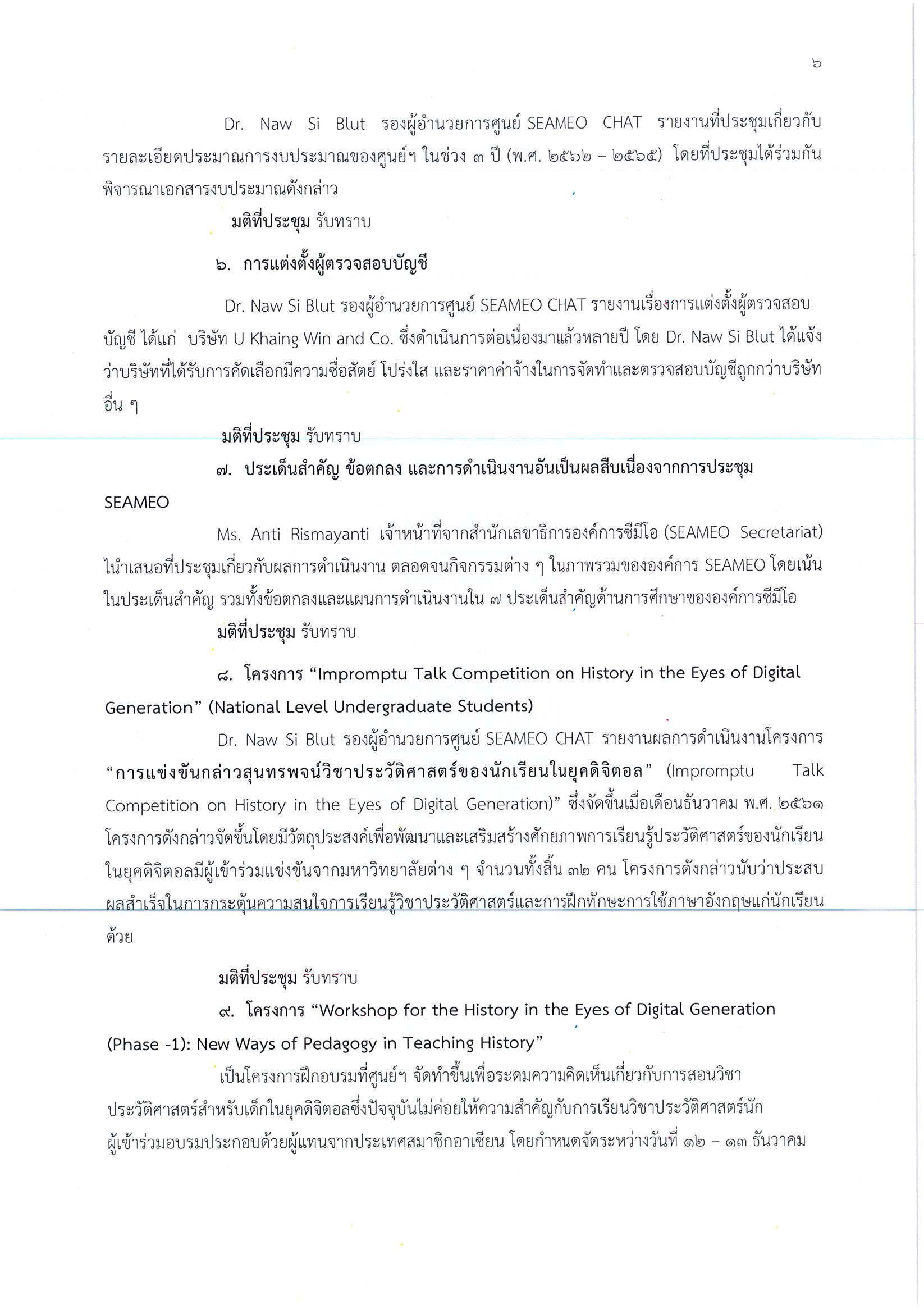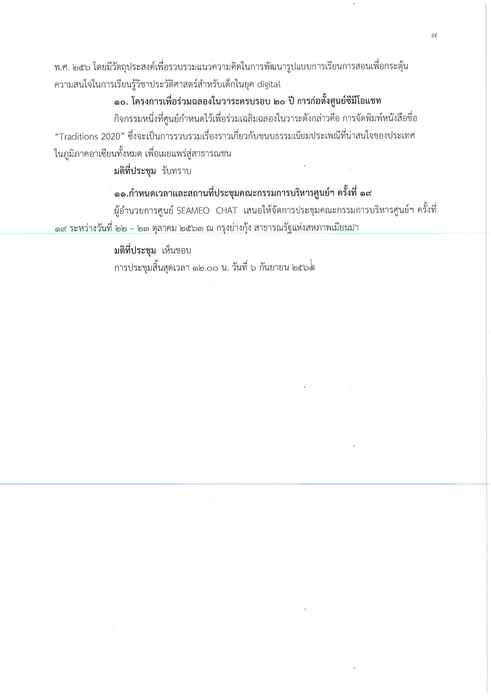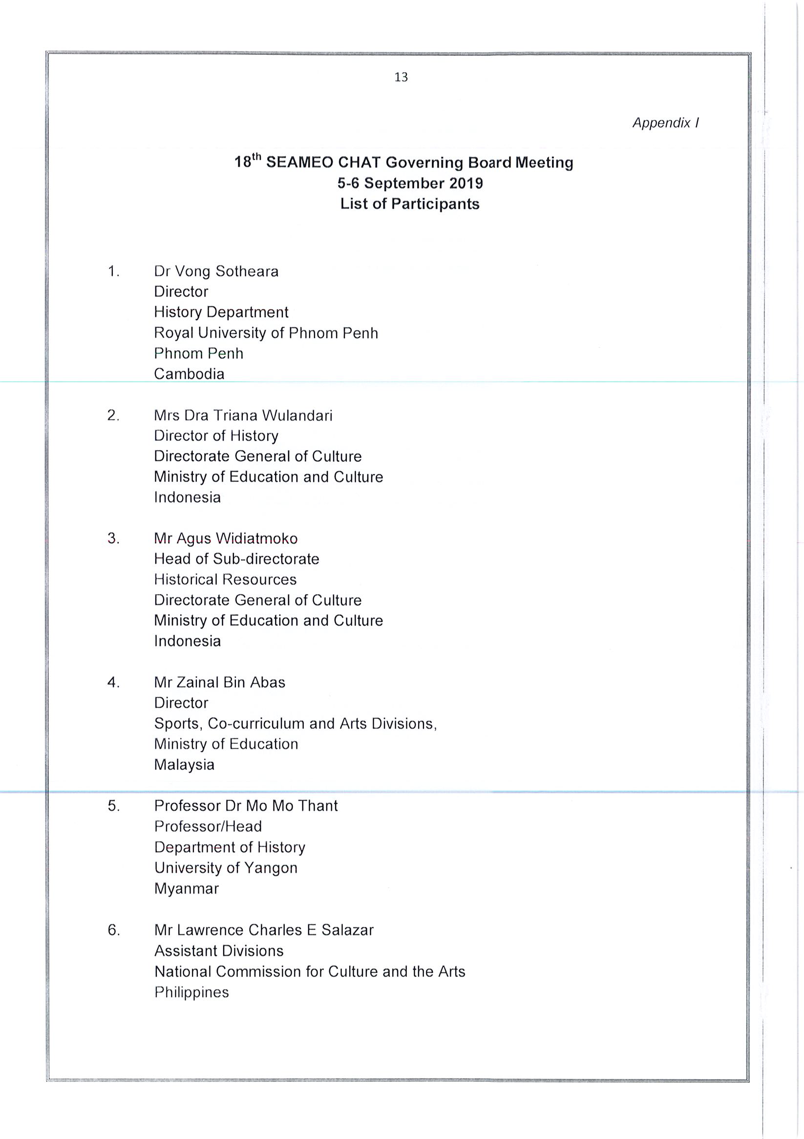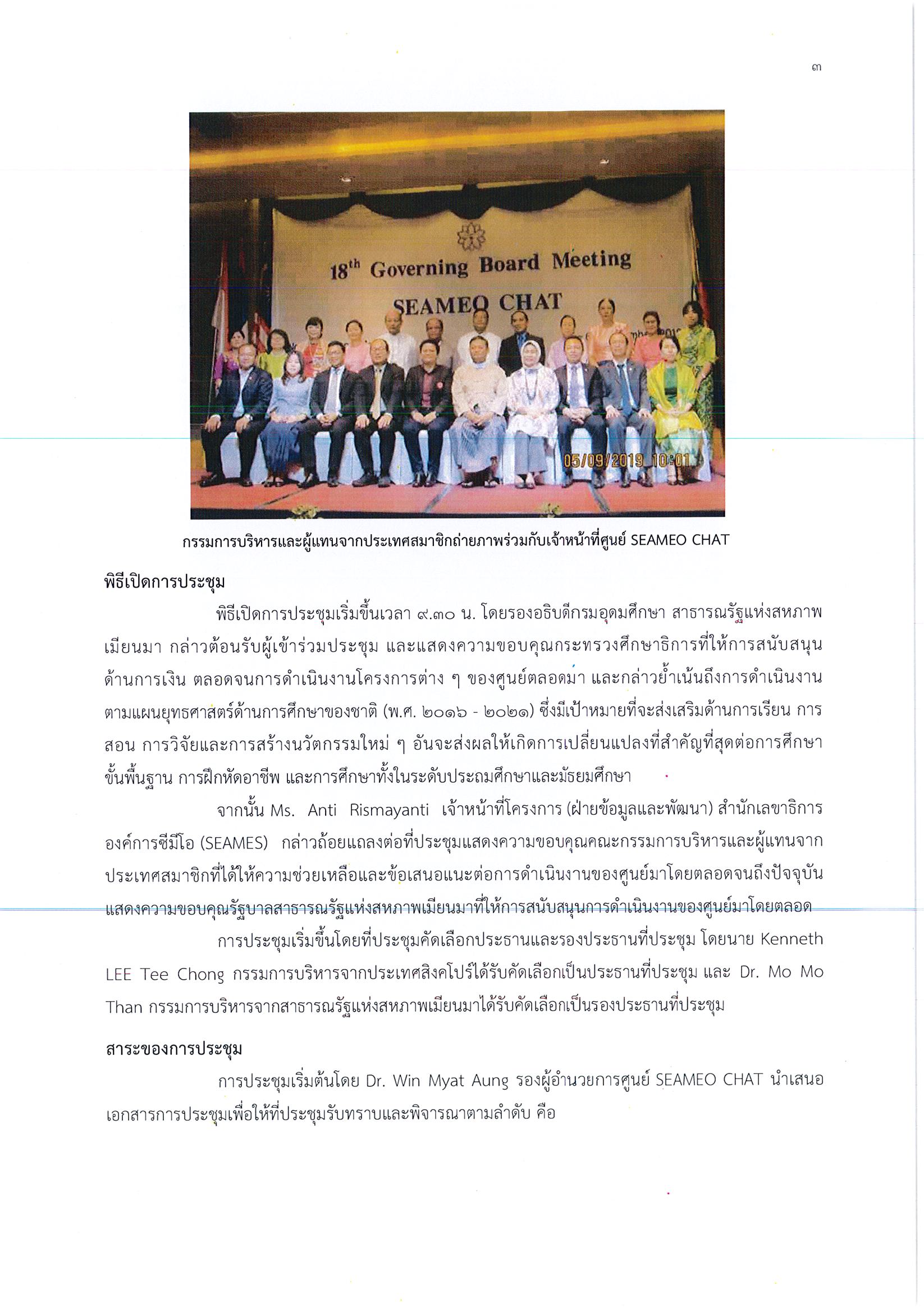 รายงานการเดินทางไปราชการ ณ สาธารณรัฐแห่งสหภาพเมียนมาร์ ระหว่างวันที่ 5 – 6 กันยายน 2562 โครงการประชุมคณะกรรรมการบริหารศูนย์ระดับภูมิภาคด้านการศึกษาประวัติศาสตร์และประเพณีของซีมีโอ ครั้งที่ 18