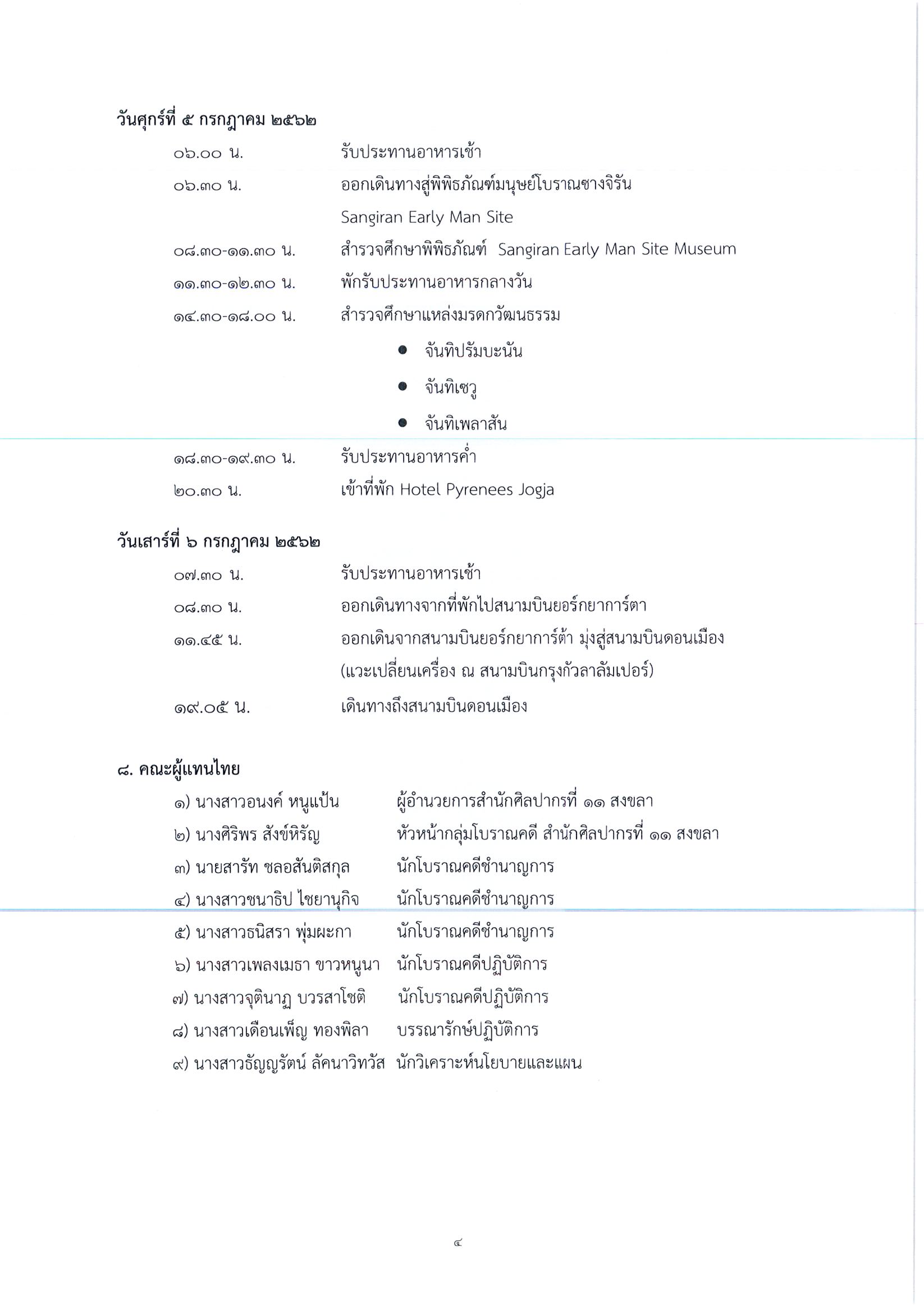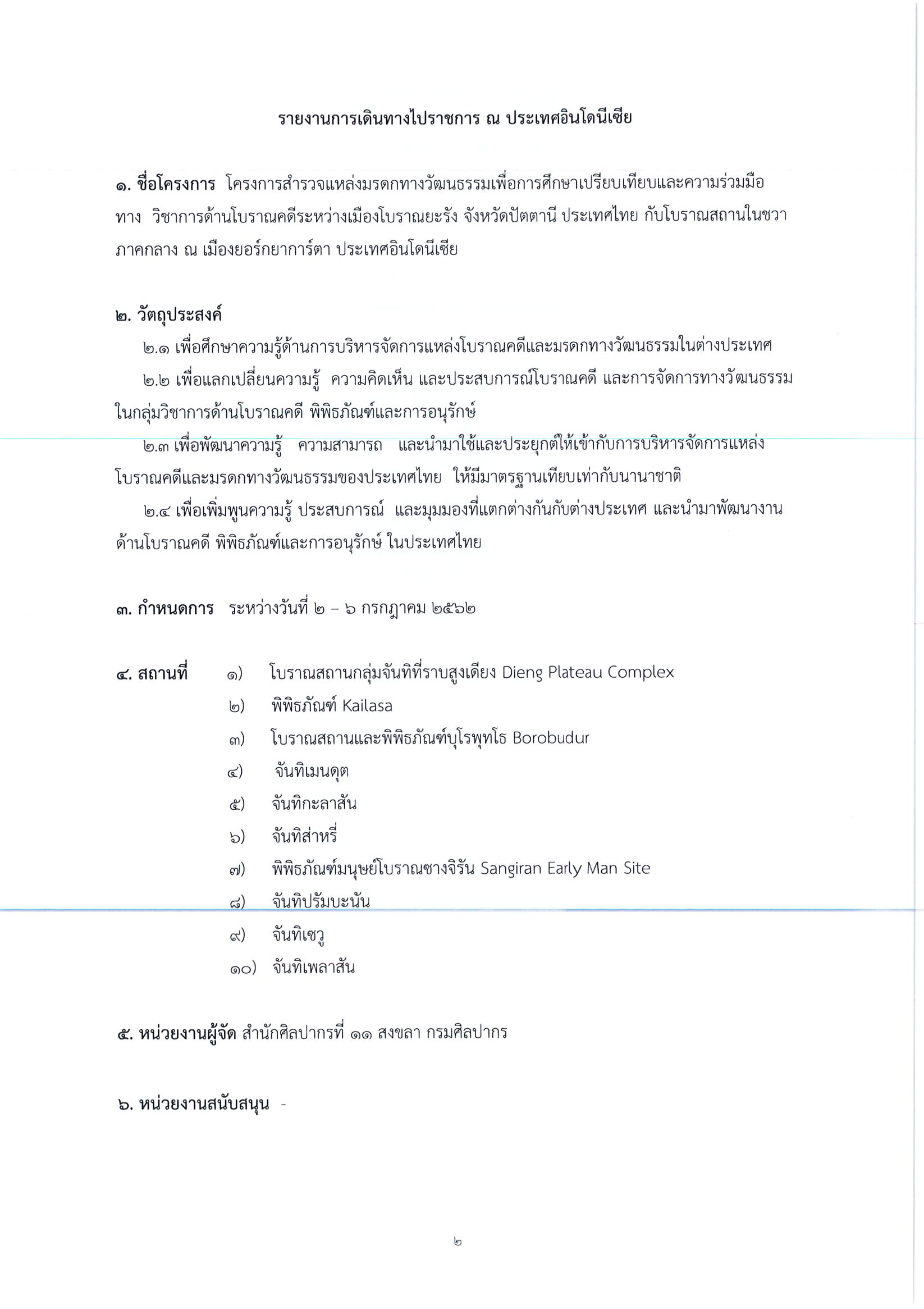 รายงานการเดินทางไปราชการ ณ สาธารณรัฐอินโดนีเซีย ระหว่างวันที่ 2 – 6 กรกฎาคม 2562 โครงการสำรวจแหล่งมรดกทางวัฒนธรรมเพื่อการเปรียบเทียบและความร่วมมือทางวิชาการ ด้านโบราณคดี ระหว่างเมืองโบราณยะรัง จังหวัดปัตตานี ประเทศไทย กับโบราณสถานในชวาภาคกลาง เมืองยอร์กยากาตาร์