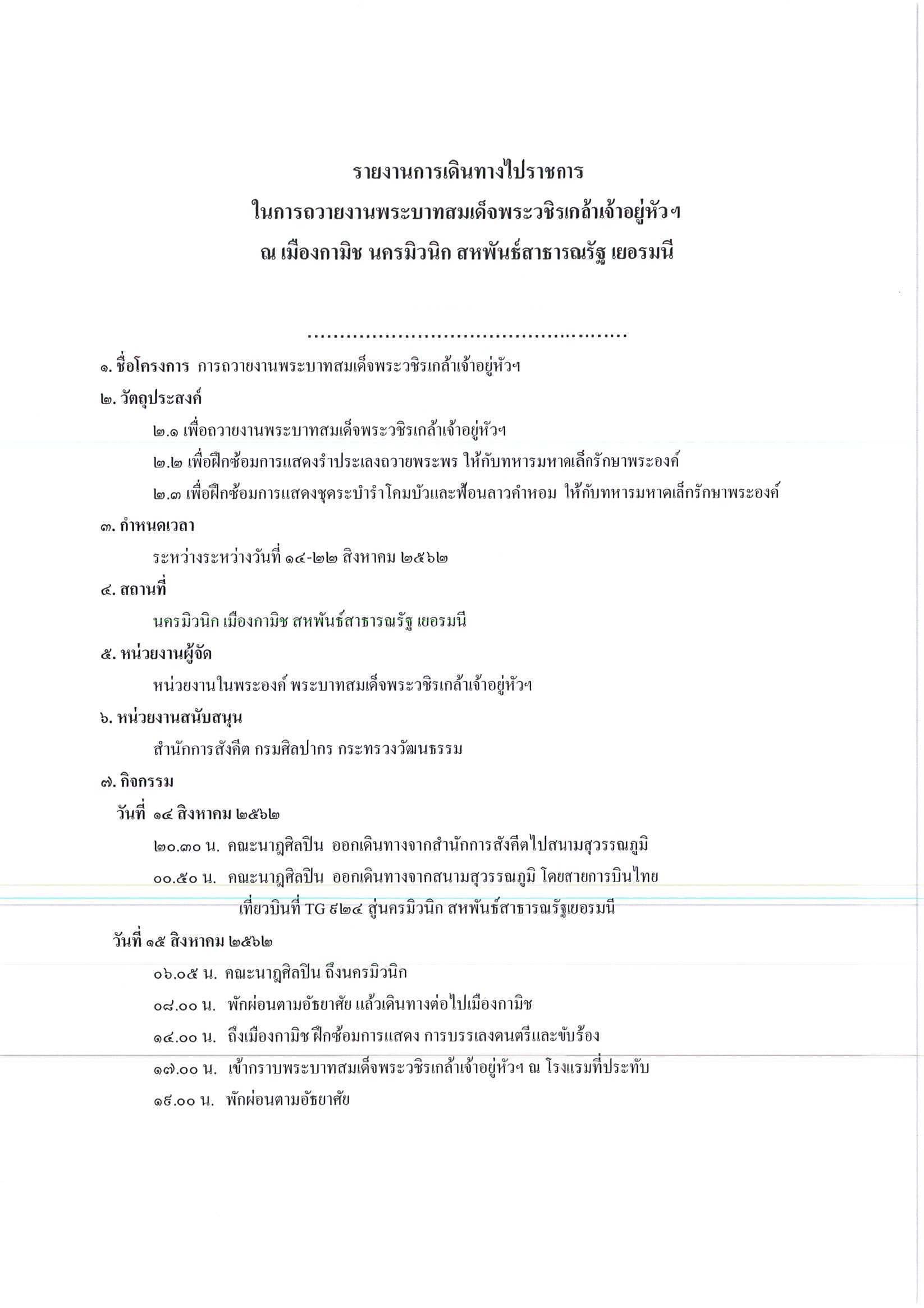 รายงานการเดินทางไปราชการ ณ สหพันธ์สาธารณรัฐเยอรมนี ระหว่างวันที่ 14 – 22 สิงหาคม 2562 โครงการถวายงานพระบาทสมเด็จพระวชิรเกล้าเจ้าอยู่หัวฯ ณ เมืองกามิช นครมิกนิก