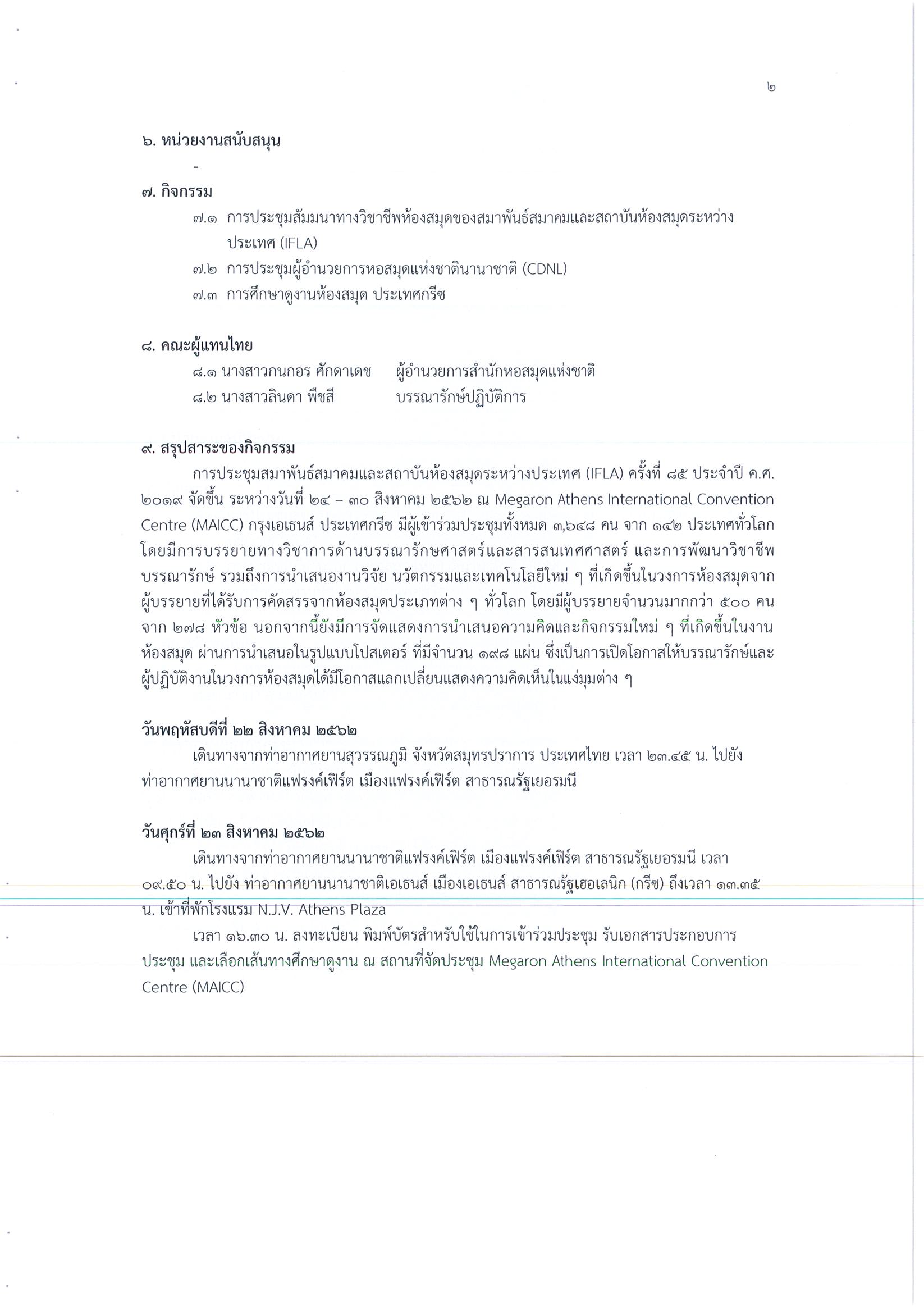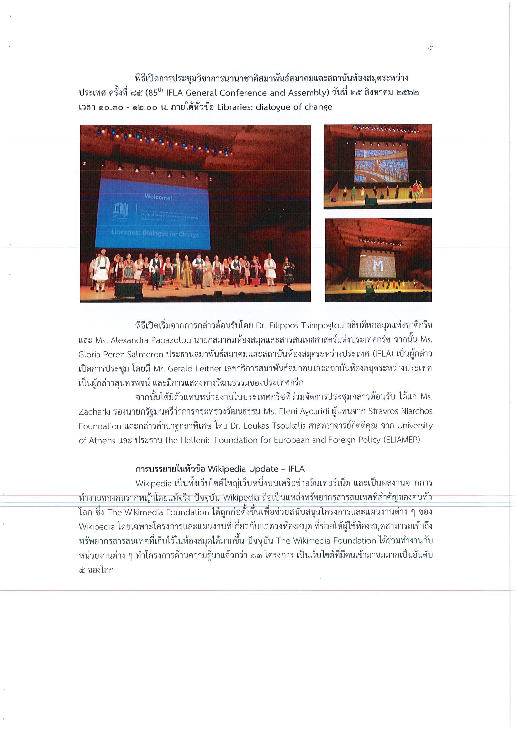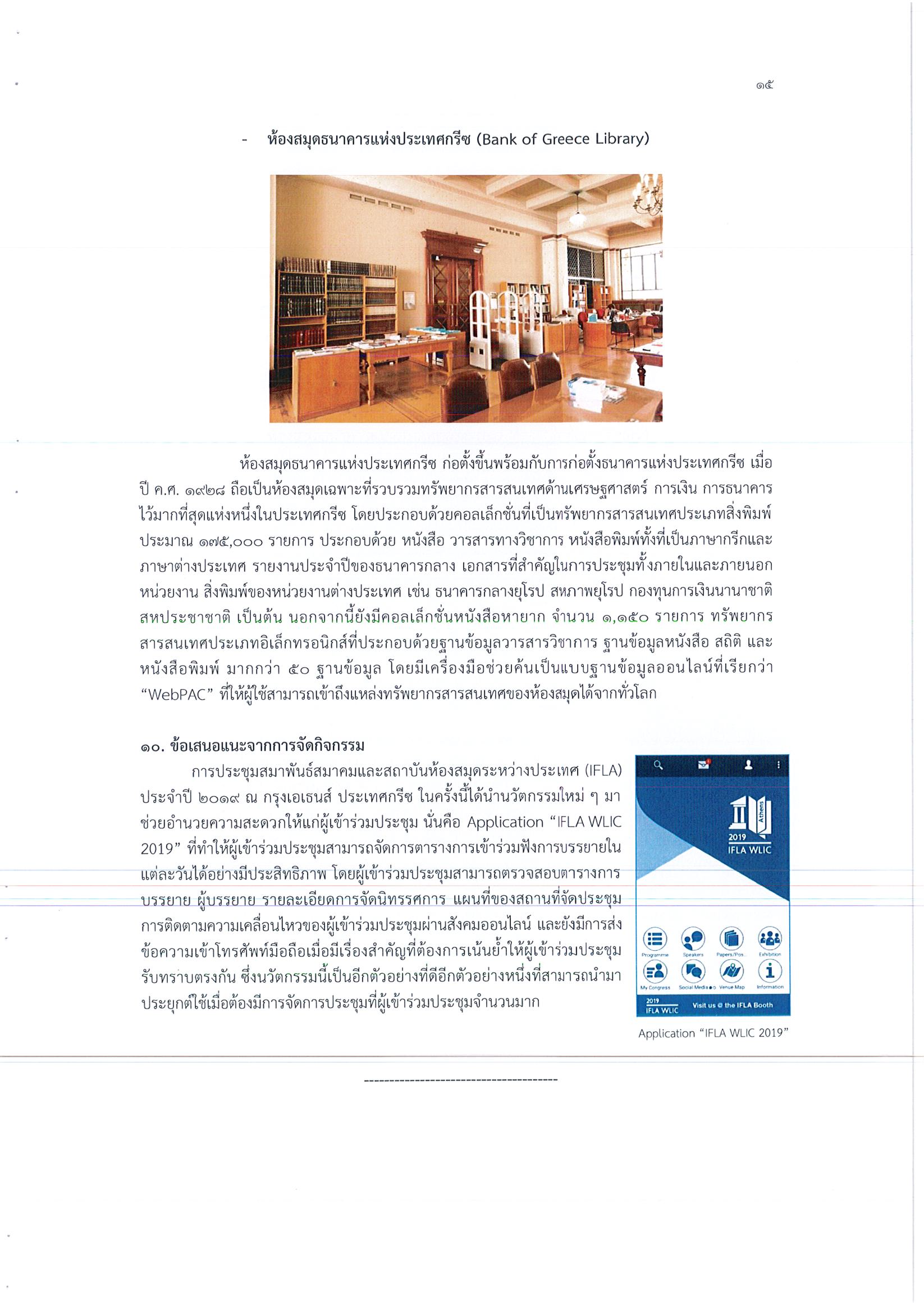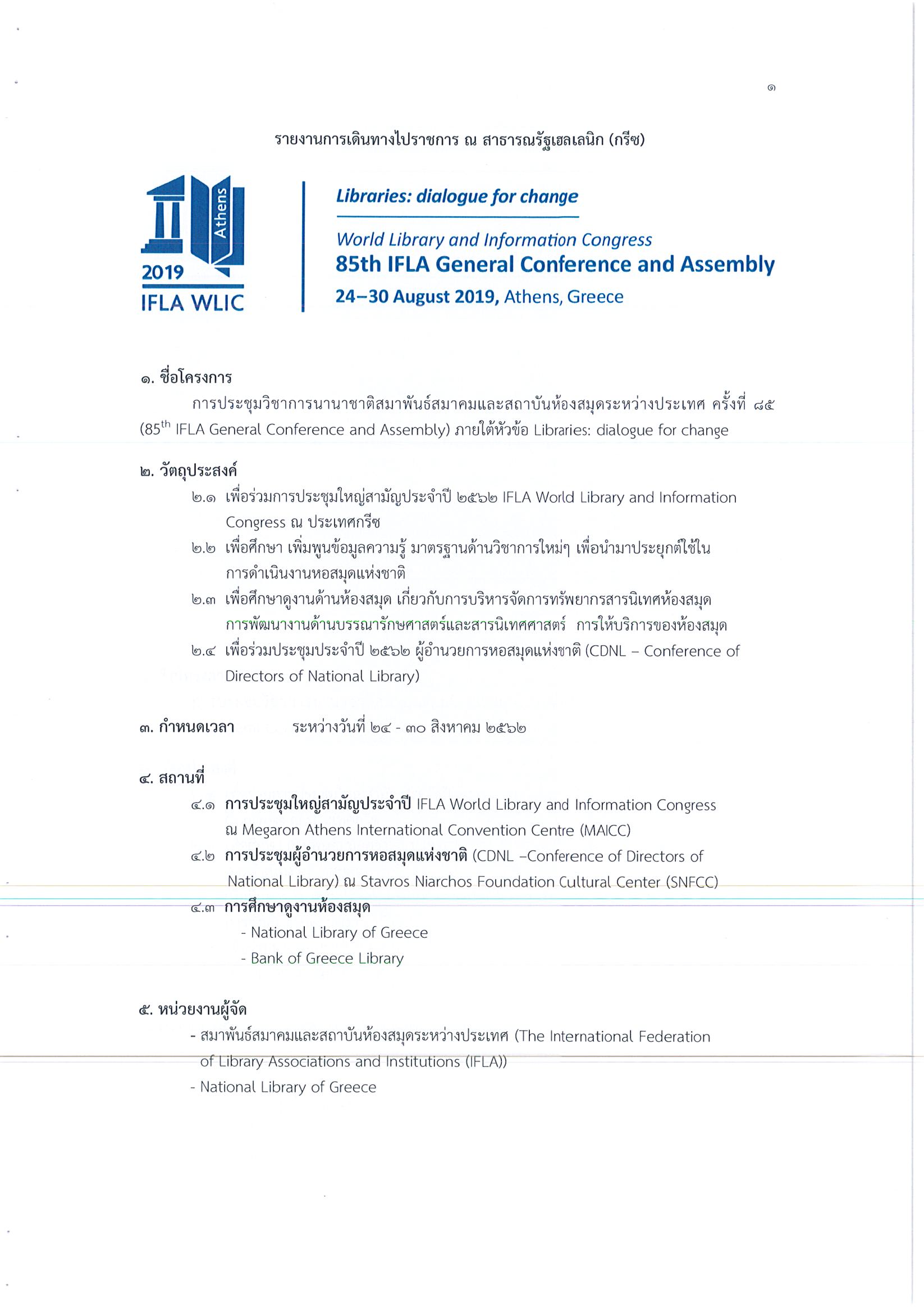 รายงานการเดินทางไปราชการ ณ สาธารณรัฐเฮลเลนิก ระหว่างวันที่ 24 – 30 สิงหาคม 2562 โครงการประชุมวิชาการนานาชาติสมาพันธ์สมาคมและสถาบันห้องสมุดระหว่างประเทศ ครั้งที่ 85