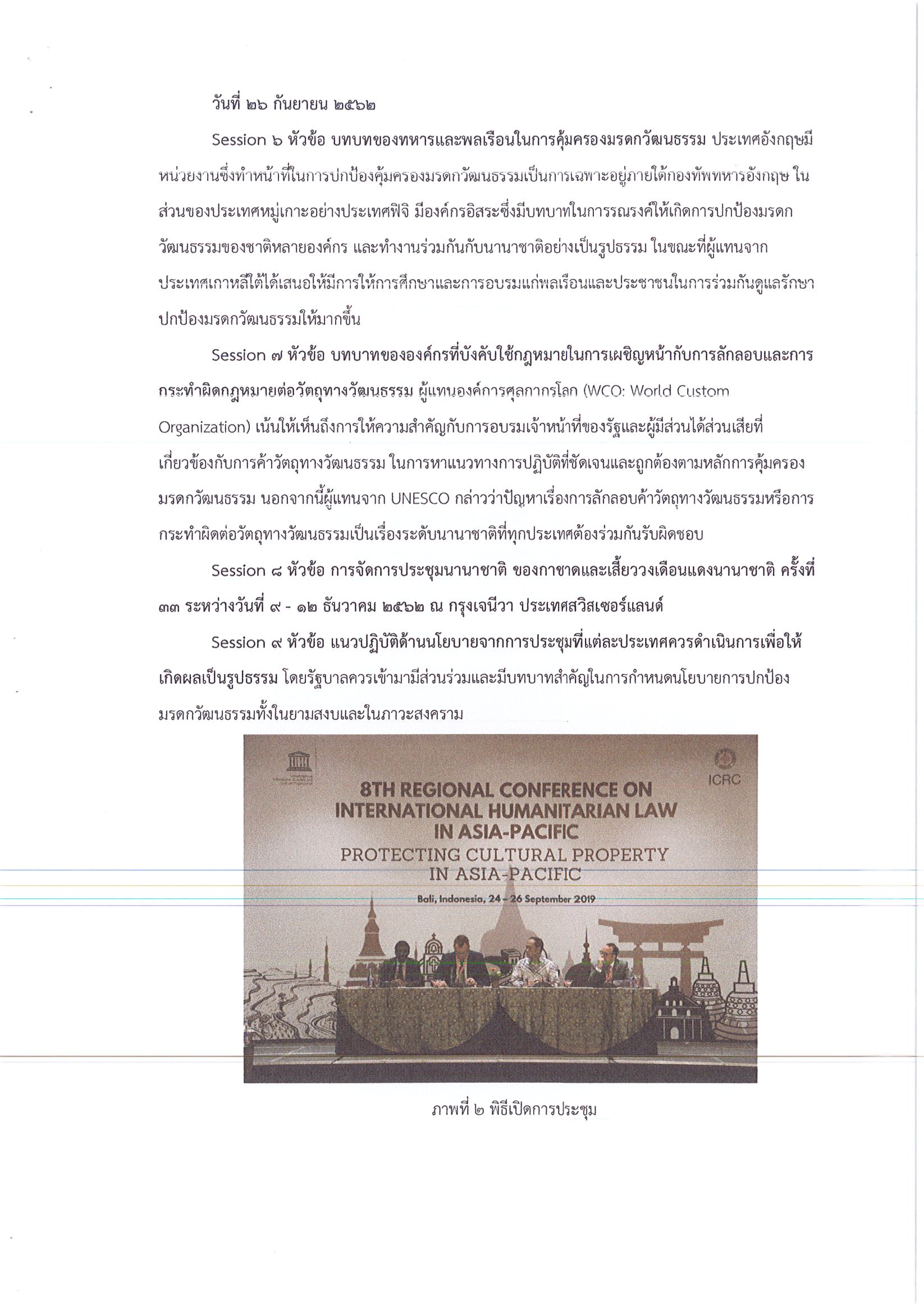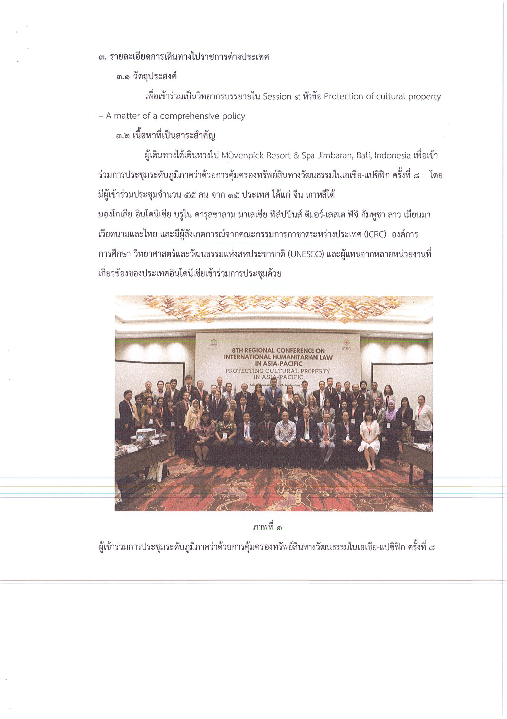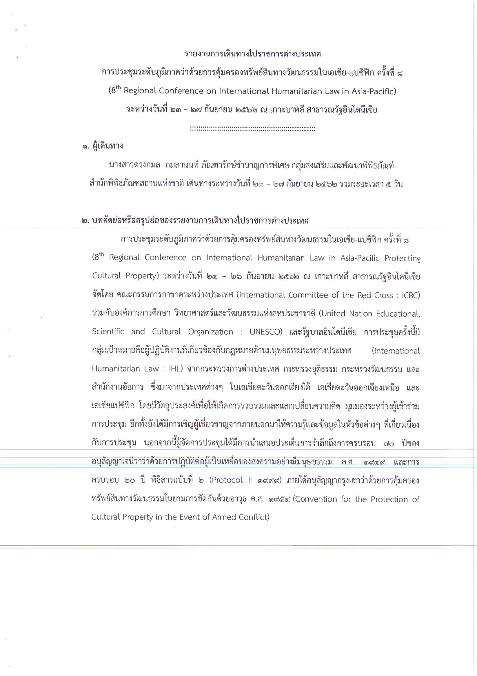 รายงานการเดินทางไปราชการ ณ สาธารณรัฐอินโดนีเซีย ระหว่างวันที่ 23 – 27 กันยายน 2562 โครงการประชุมระดับภูมิภาคว่าด้วยการคุ้มครองทรัพย์สินทางวัฒนธรรมในเอเชีย – แปซิฟิก ครั้งมี่ 8