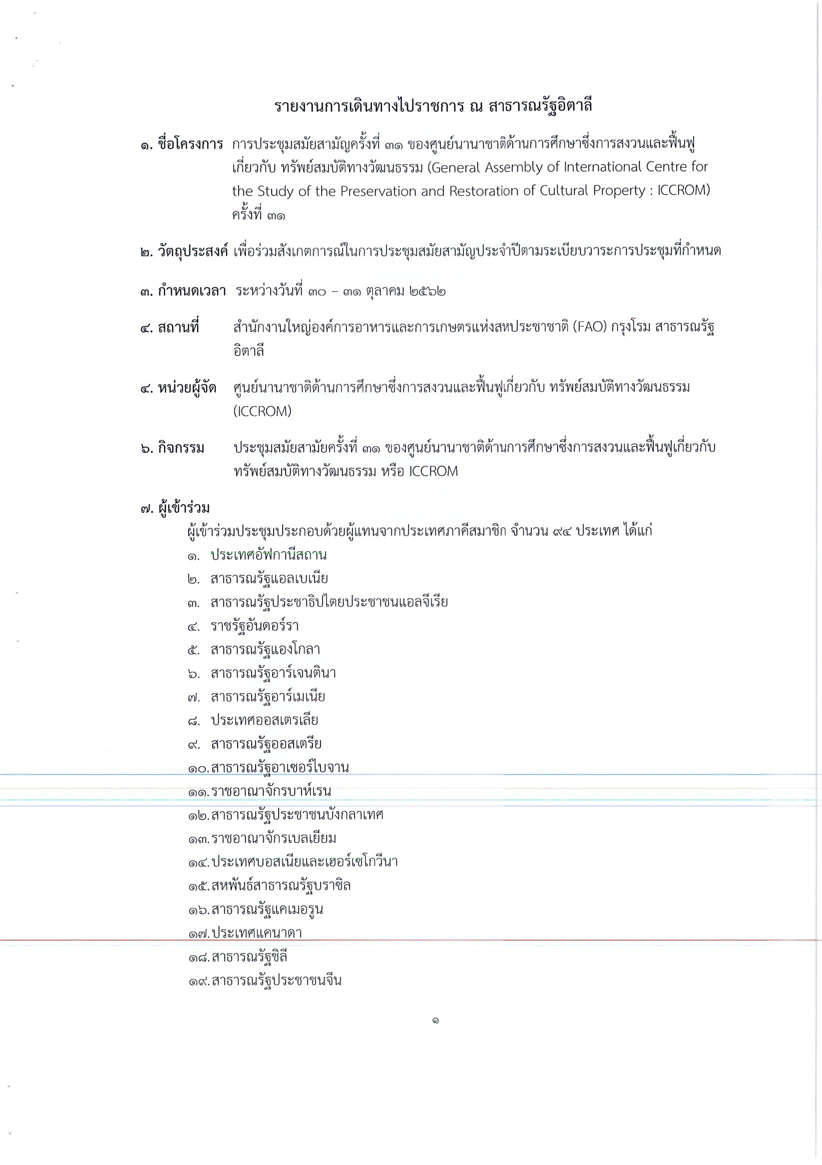 รายงานการเดินทางไปราชการ ณ สาธารณรัฐอิตาลี โครงการประชุมสมัยสามัญครั้งที่ 31 ของศูนย์นานาชาติด้านการศึกษาซึ่งการสงวนฟื้นฟูเกี่ยวกับทรัพย์สมบัติทางวัฒนธรรม