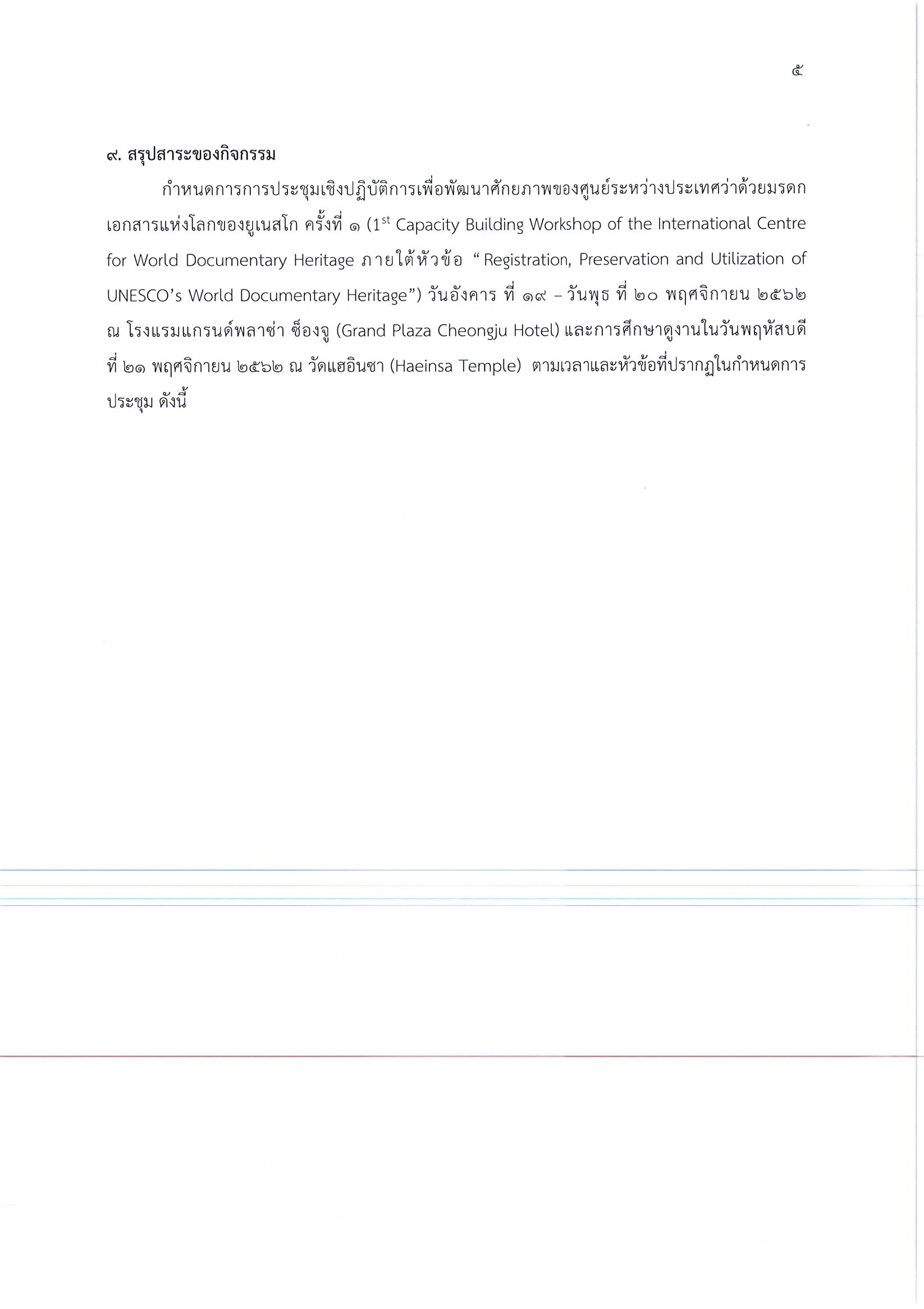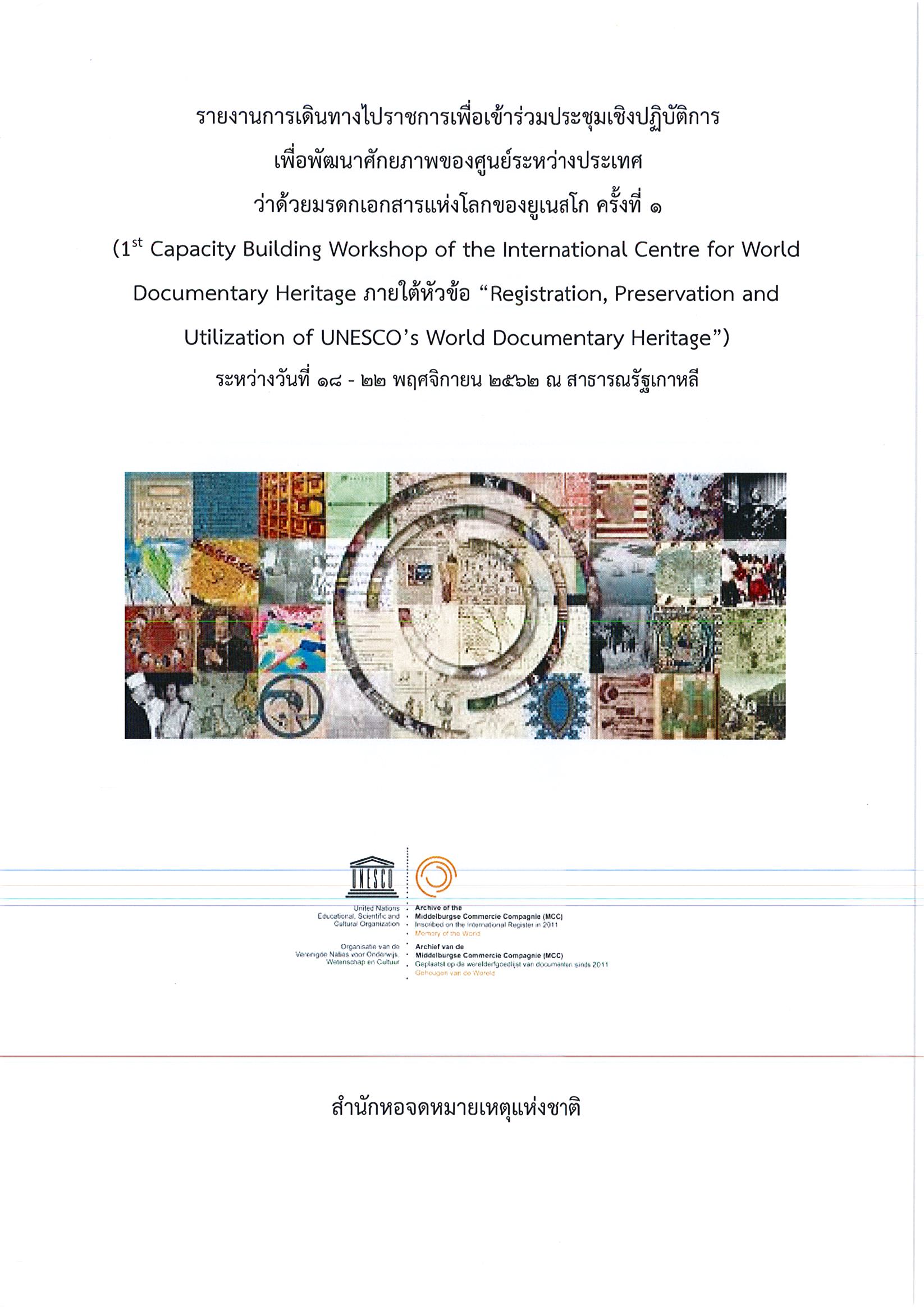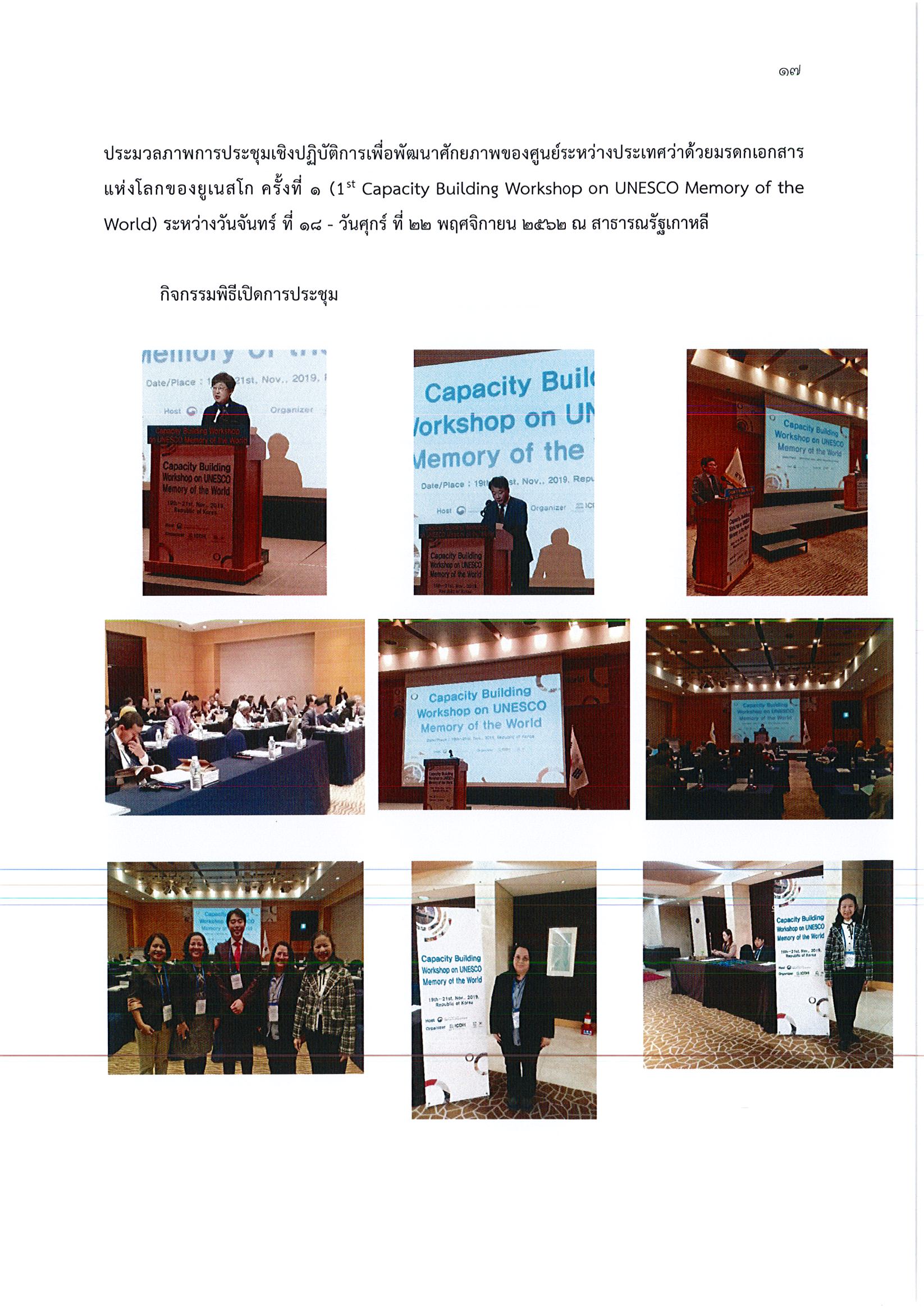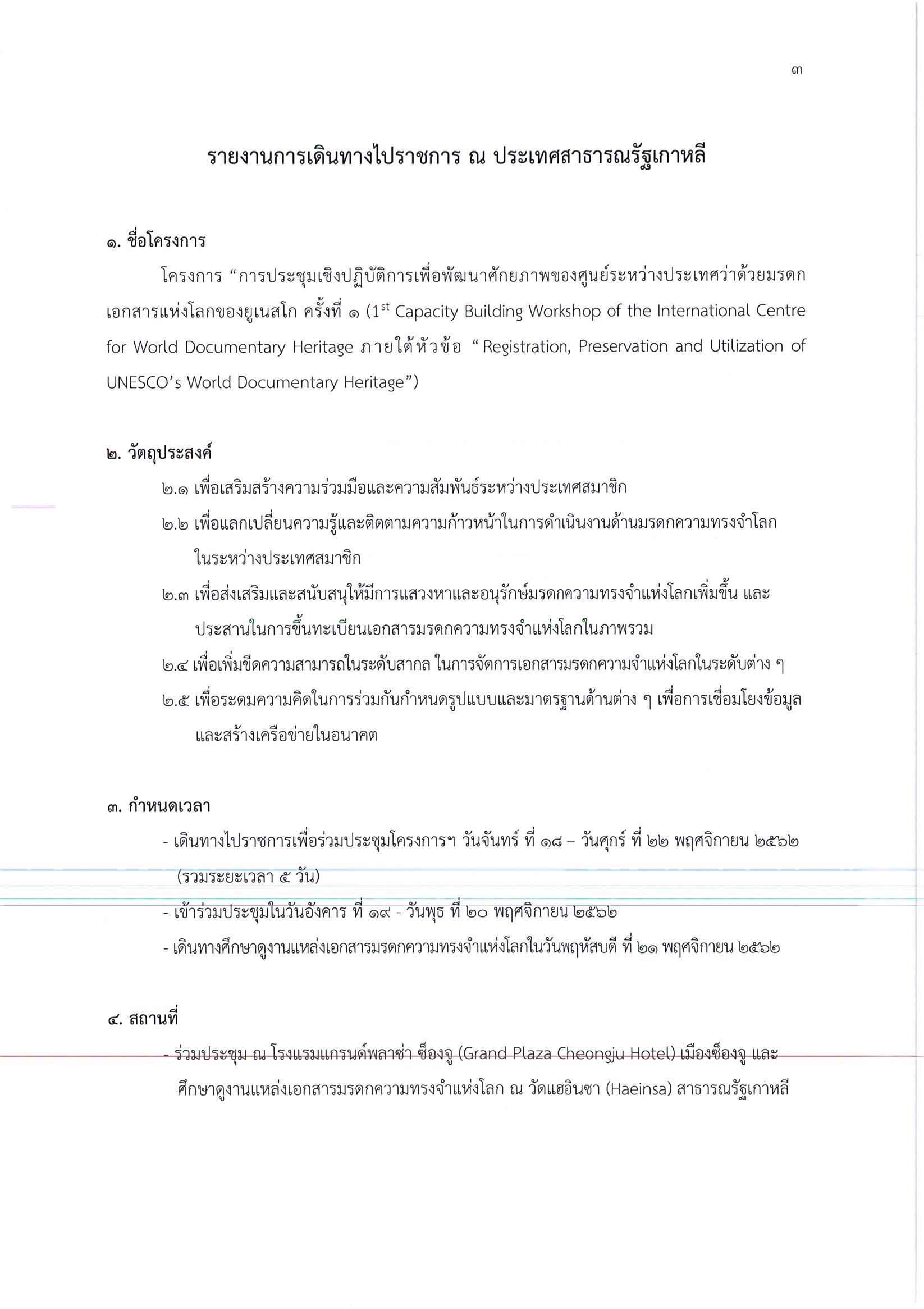 รายงานการเดินทางไปราชการ ณ สาธารณรัฐเกาหลี ระหว่างวันที่ 18 – 22 พฤศจิกายน 2562 โครงการประชุมเชิงปฏิบัติการเพื่อพัฒนาศักยภาพของศูนย์ระหว่างประเทศว่าด้วยมรดกเอกสารแห่งโลกของยูเนสโก ครั้งที่ 1