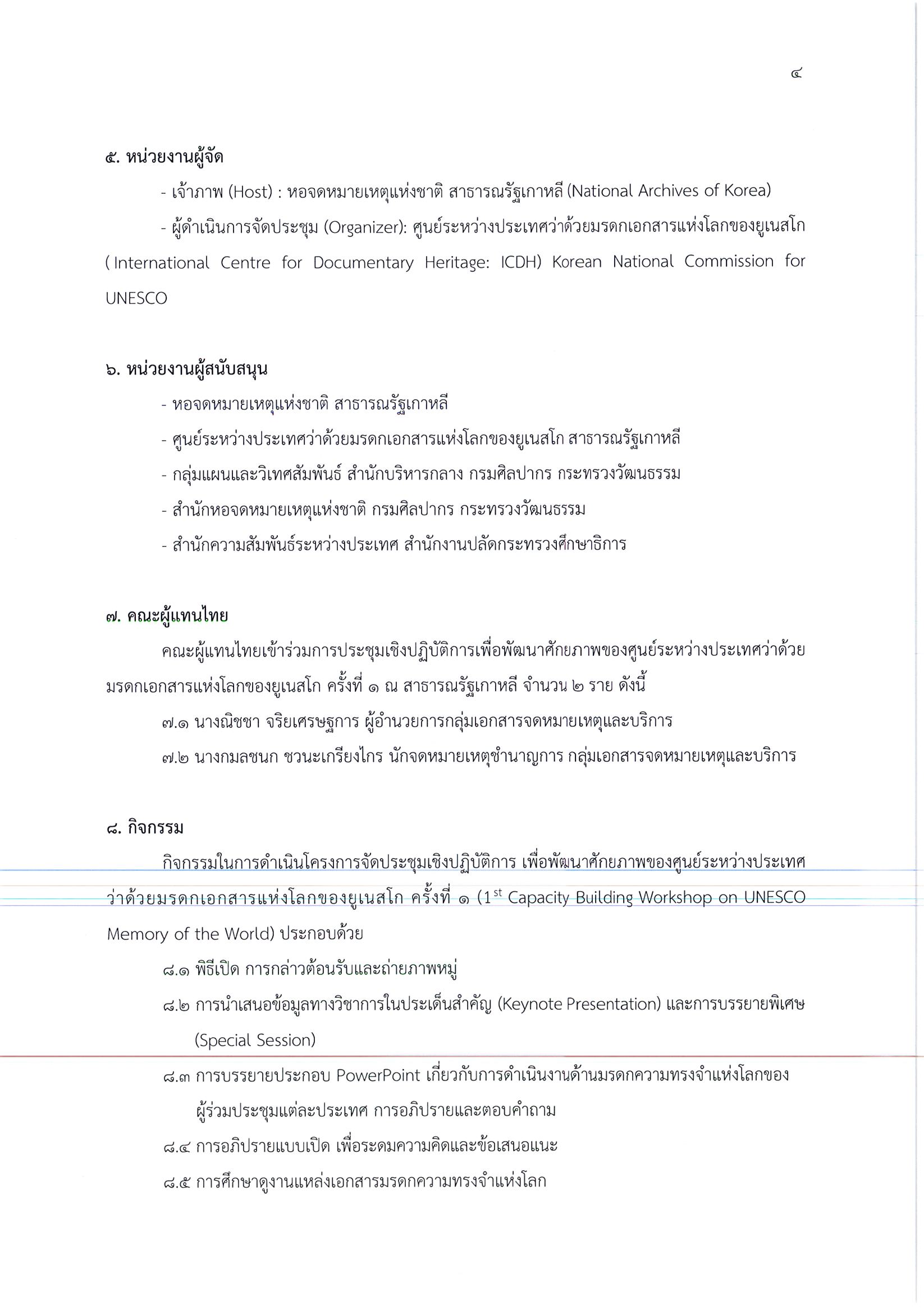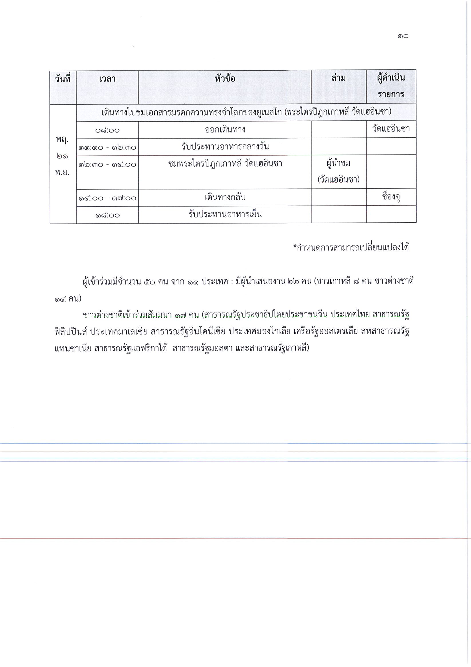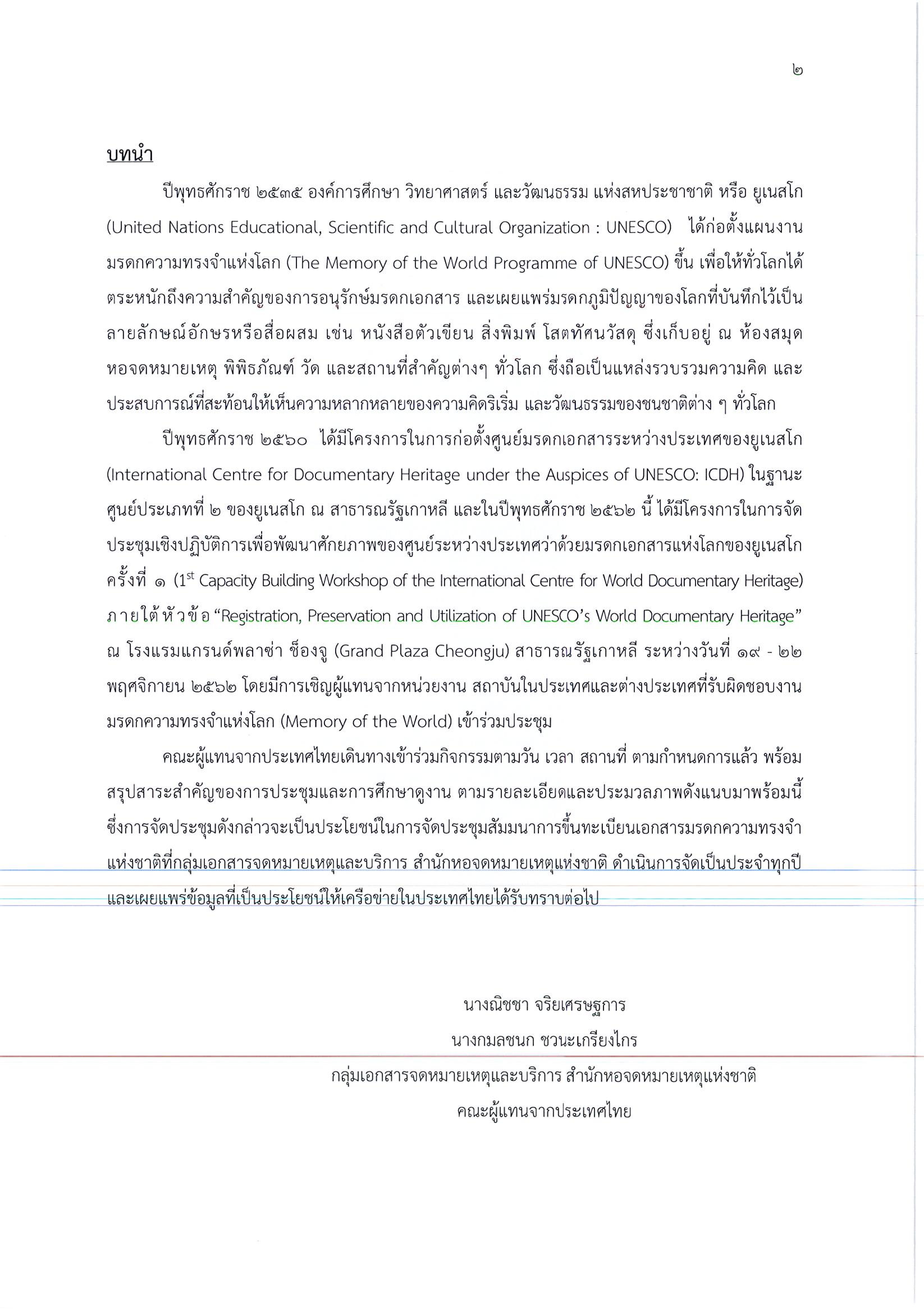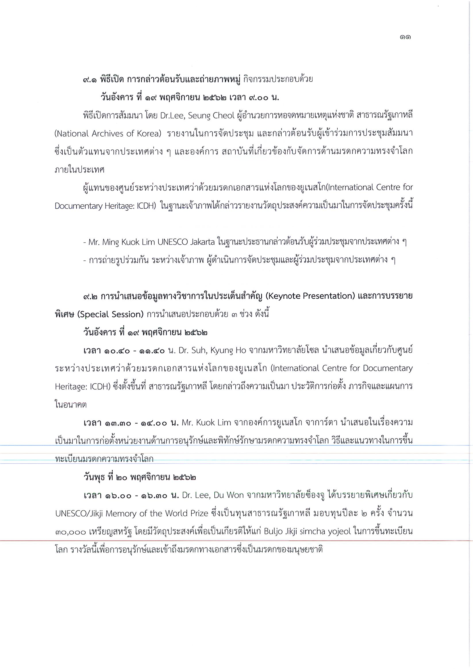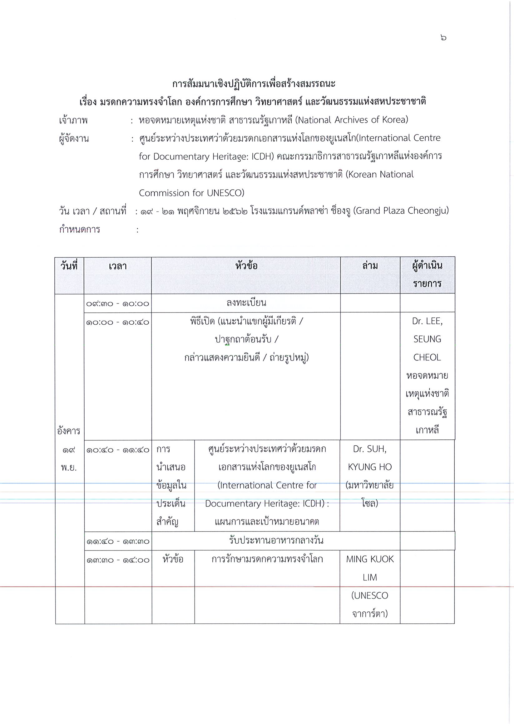 รายงานการเดินทางไปราชการ ณ สาธารณรัฐเกาหลี ระหว่างวันที่ 18 – 22 พฤศจิกายน 2562 โครงการประชุมเชิงปฏิบัติการเพื่อพัฒนาศักยภาพของศูนย์ระหว่างประเทศว่าด้วยมรดกเอกสารแห่งโลกของยูเนสโก ครั้งที่ 1