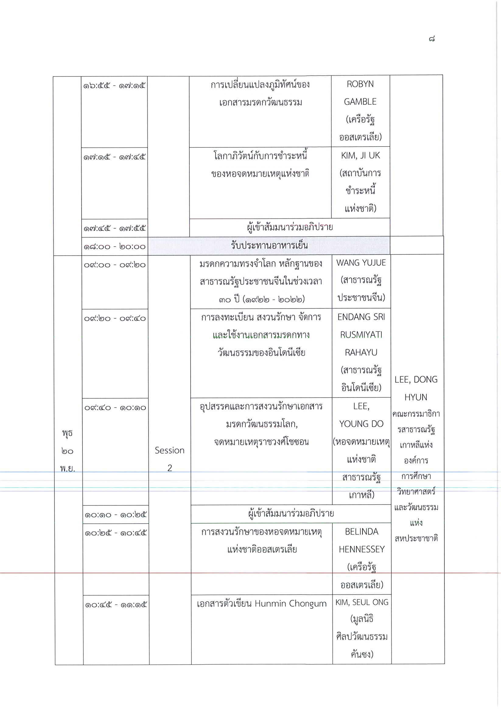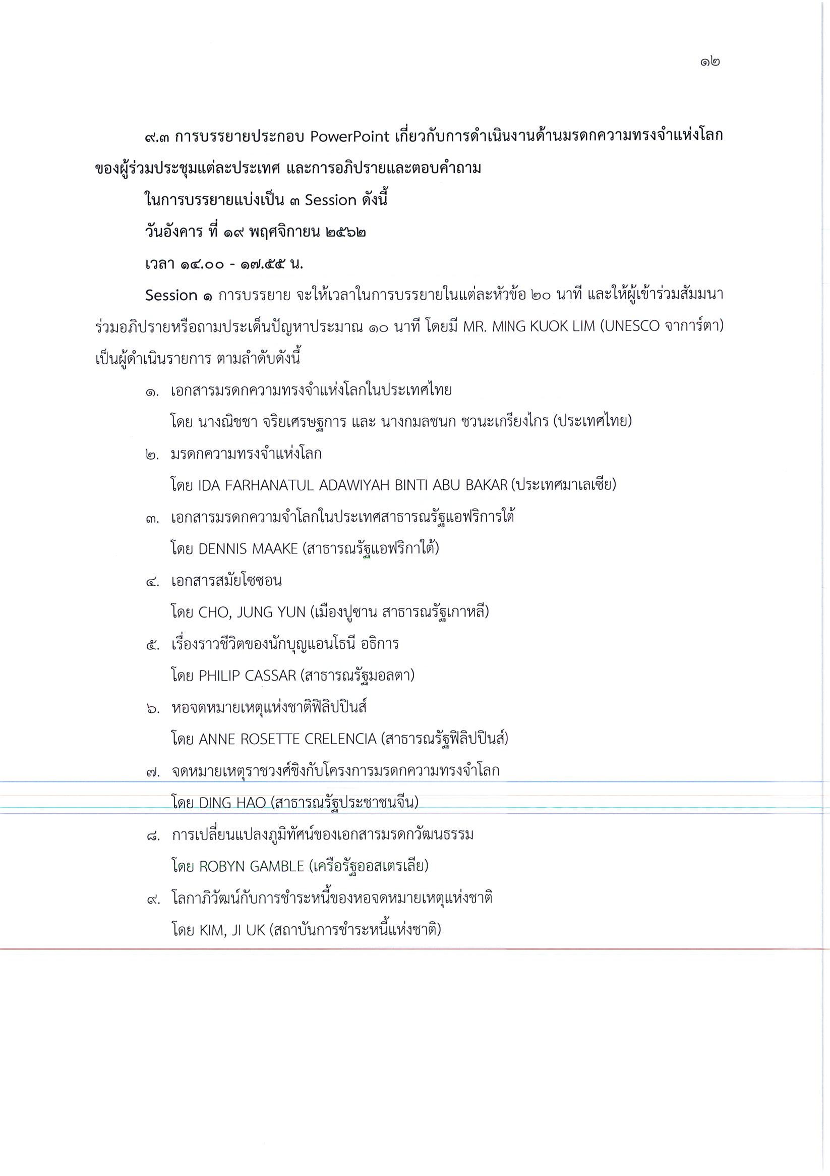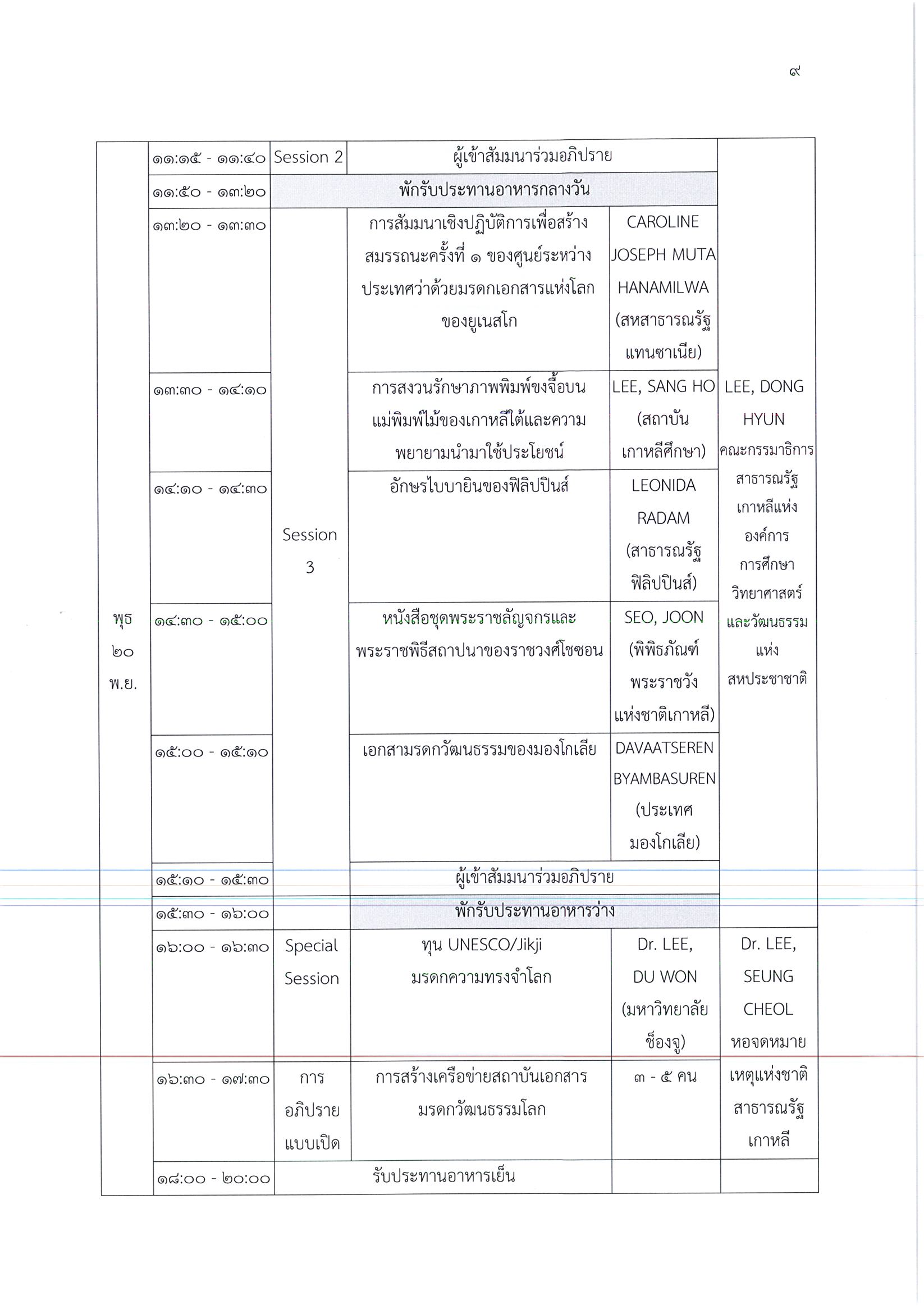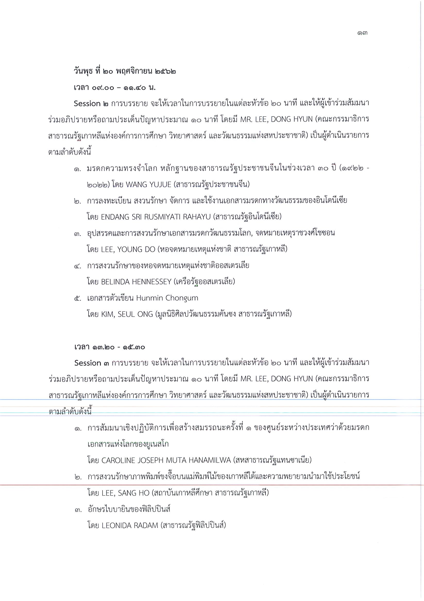 รายงานการเดินทางไปราชการ ณ สาธารณรัฐเกาหลี ระหว่างวันที่ 18 – 22 พฤศจิกายน 2562 โครงการประชุมเชิงปฏิบัติการเพื่อพัฒนาศักยภาพของศูนย์ระหว่างประเทศว่าด้วยมรดกเอกสารแห่งโลกของยูเนสโก ครั้งที่ 1