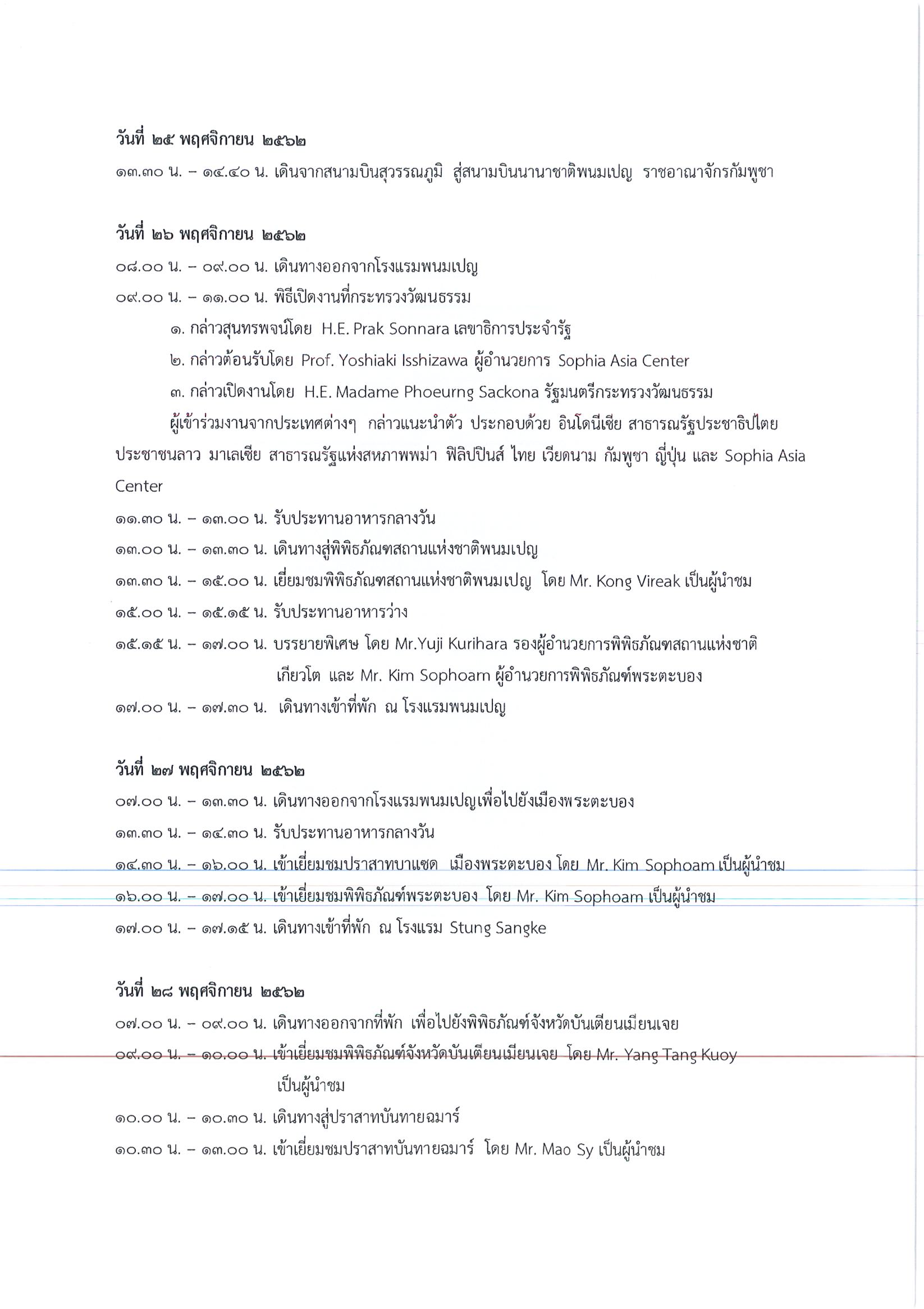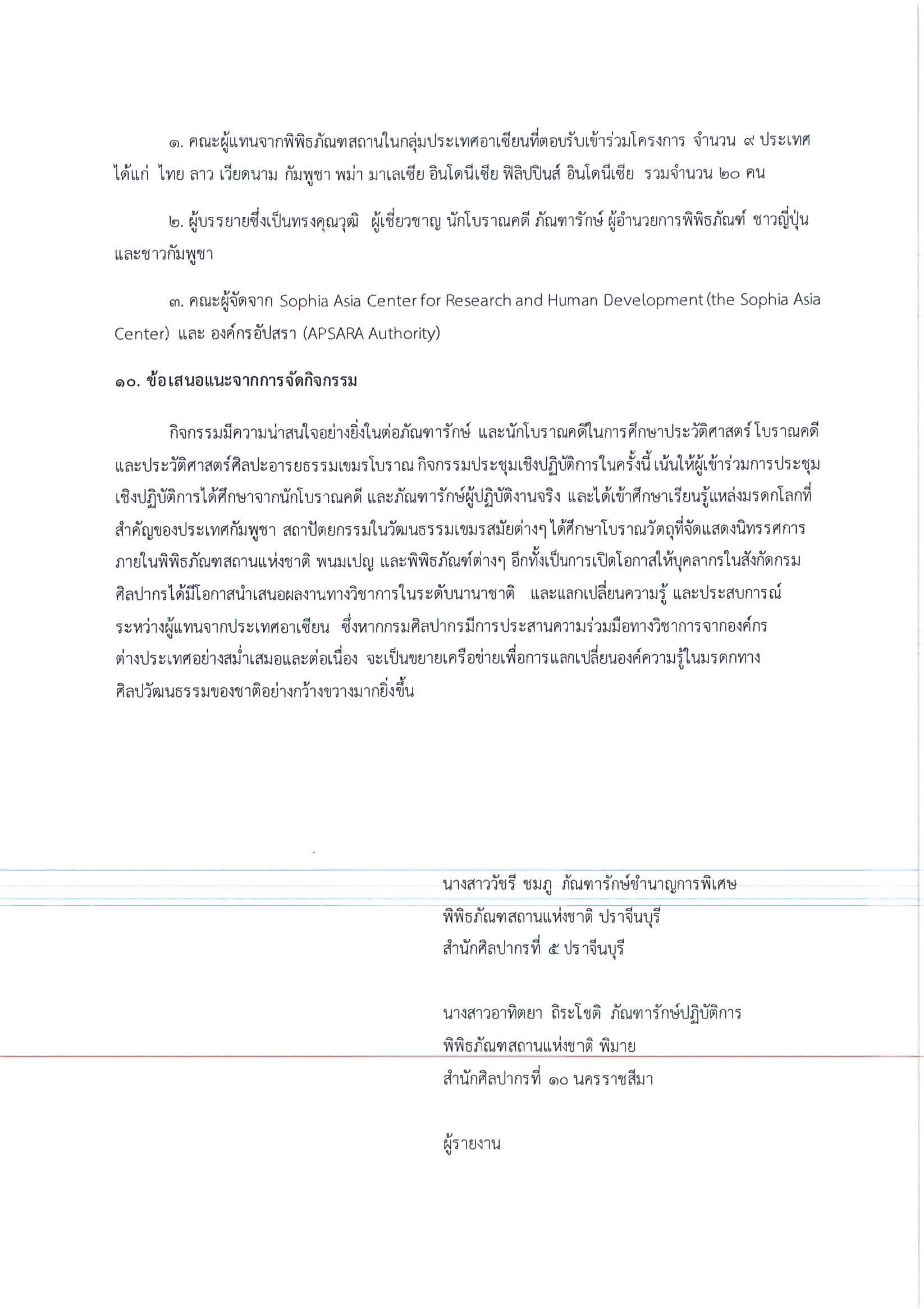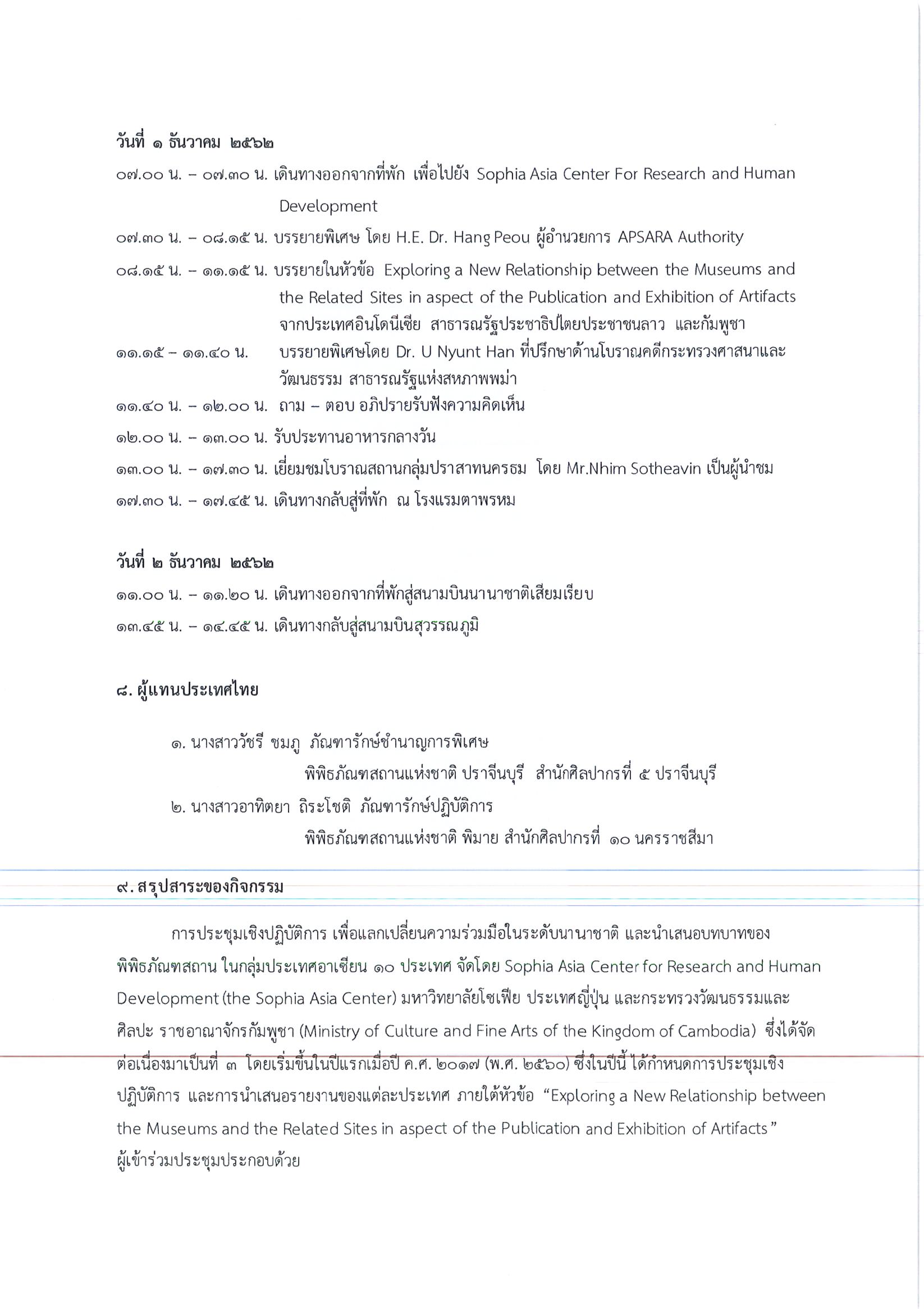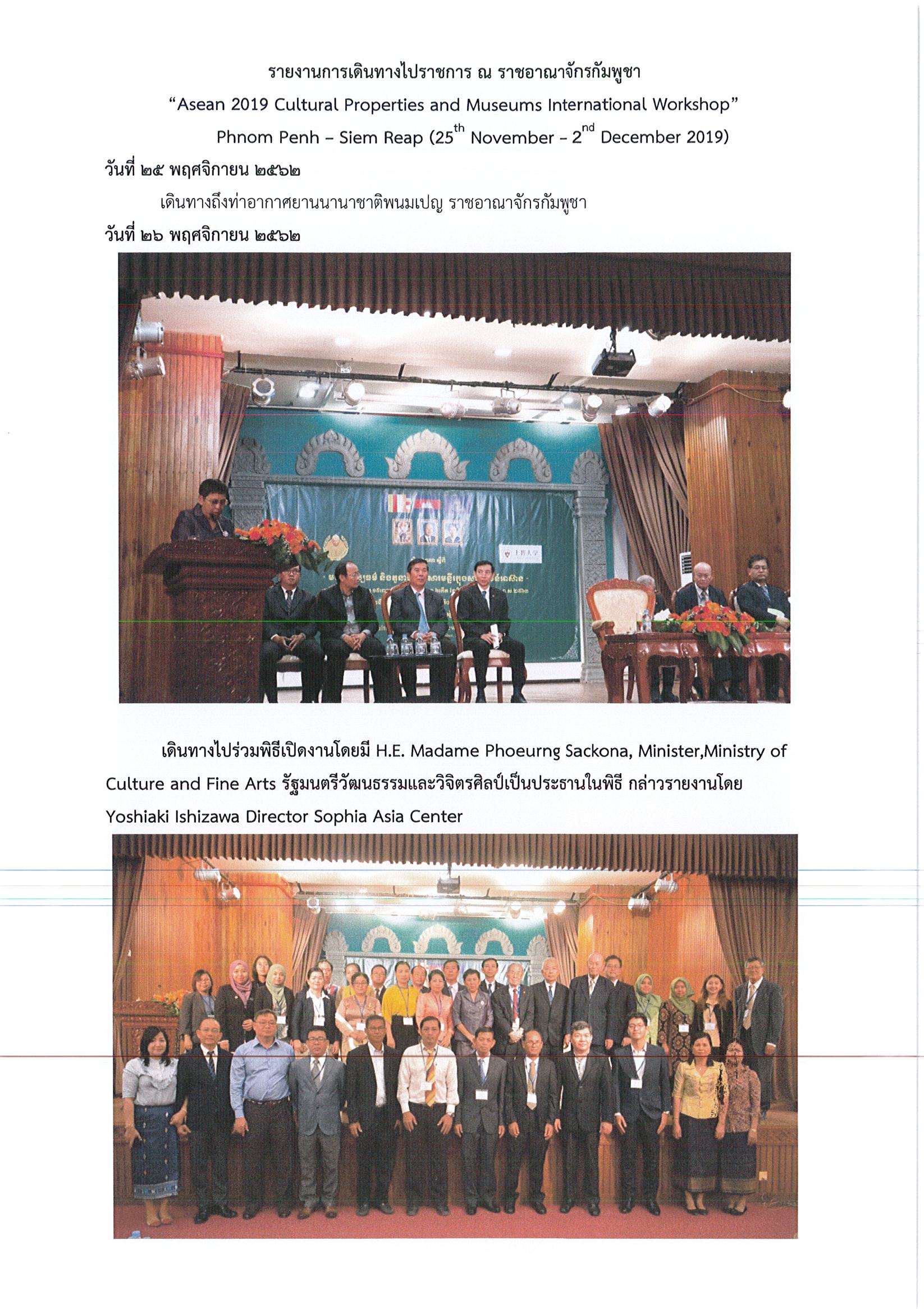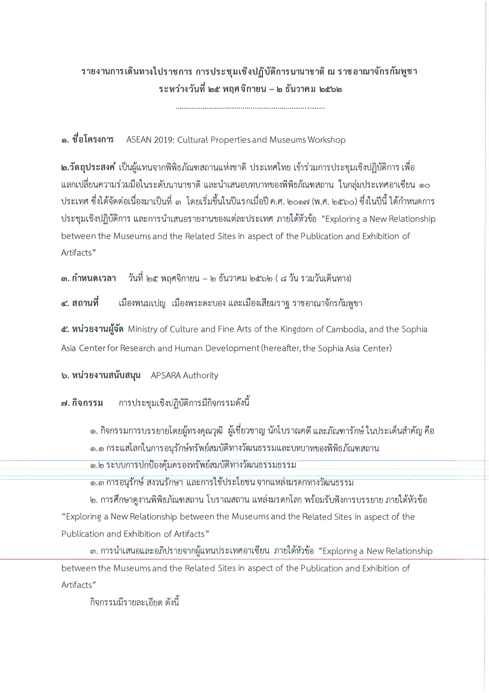 รายงานการเดินทางไปราชการ ณ ราชอาณาจักรกัมพูชา ระหว่างวันที่ 25 พฤศจิกายน – 2 ธันวาคม 2562 โครงการประชุมเชิงปฏิบัติการนานาชาติ ASEAN 2019 : Cultural Properties and Museums Workshop