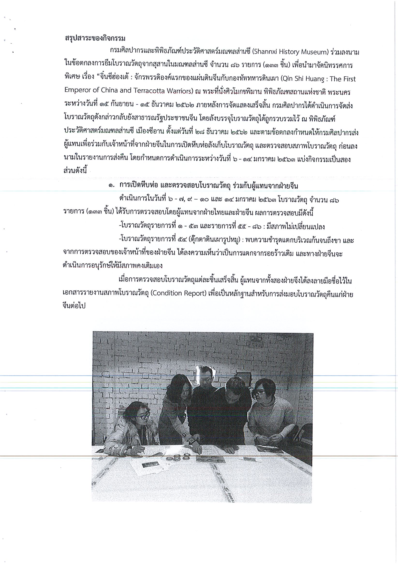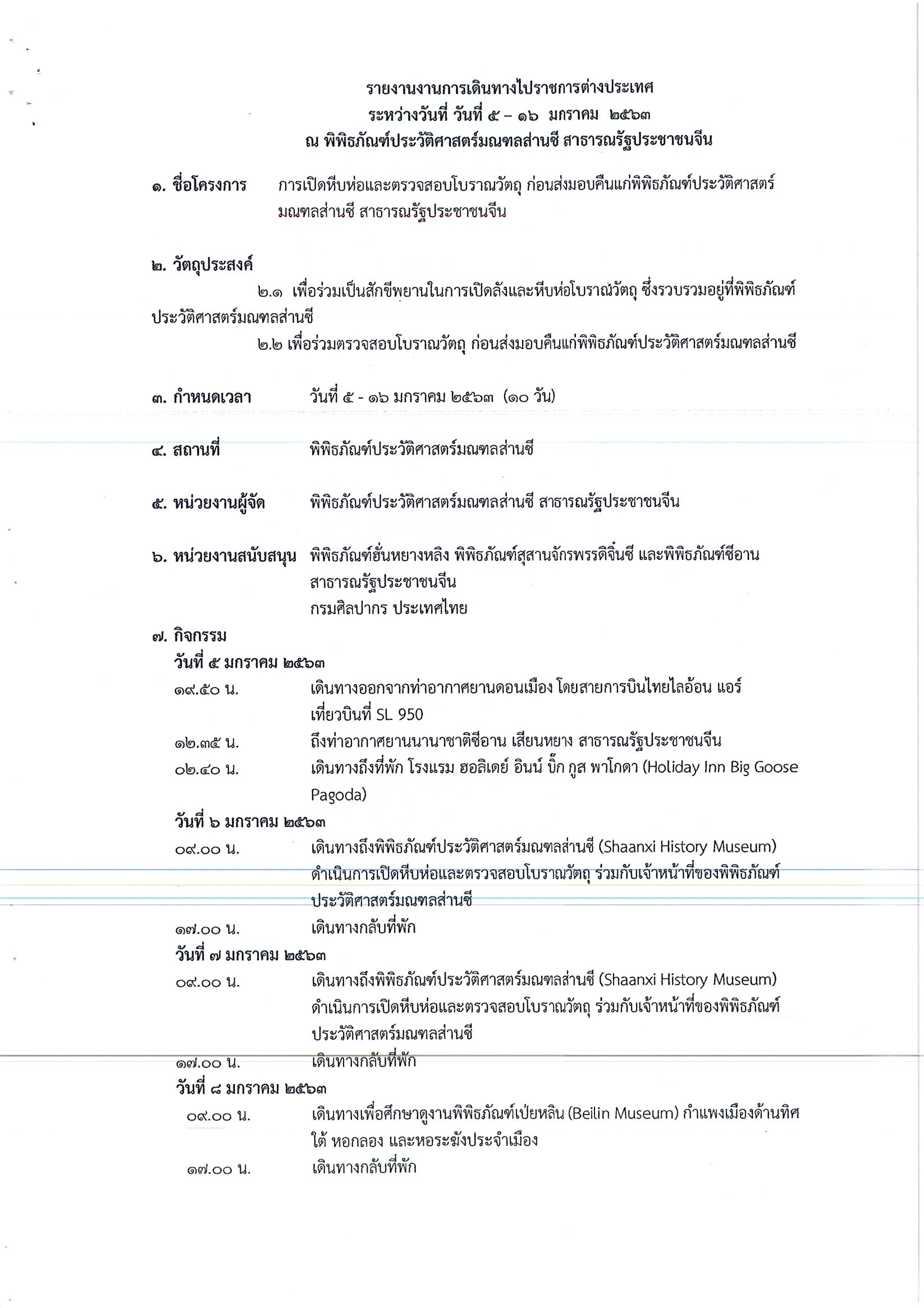 รายงานการเดินทางไปราชการ ณ สาธารณรัฐประชนจีน ระหว่างวันที่ 5 – 16 มกราคม 2563 โครงการเปิดหีบห่อและตรวจสอบโบราณวัตถุ ก่อนส่งมอบคืนแก่พิพิธภัณฑ์ประวัติศาสตร์มณฑลส่านซี
