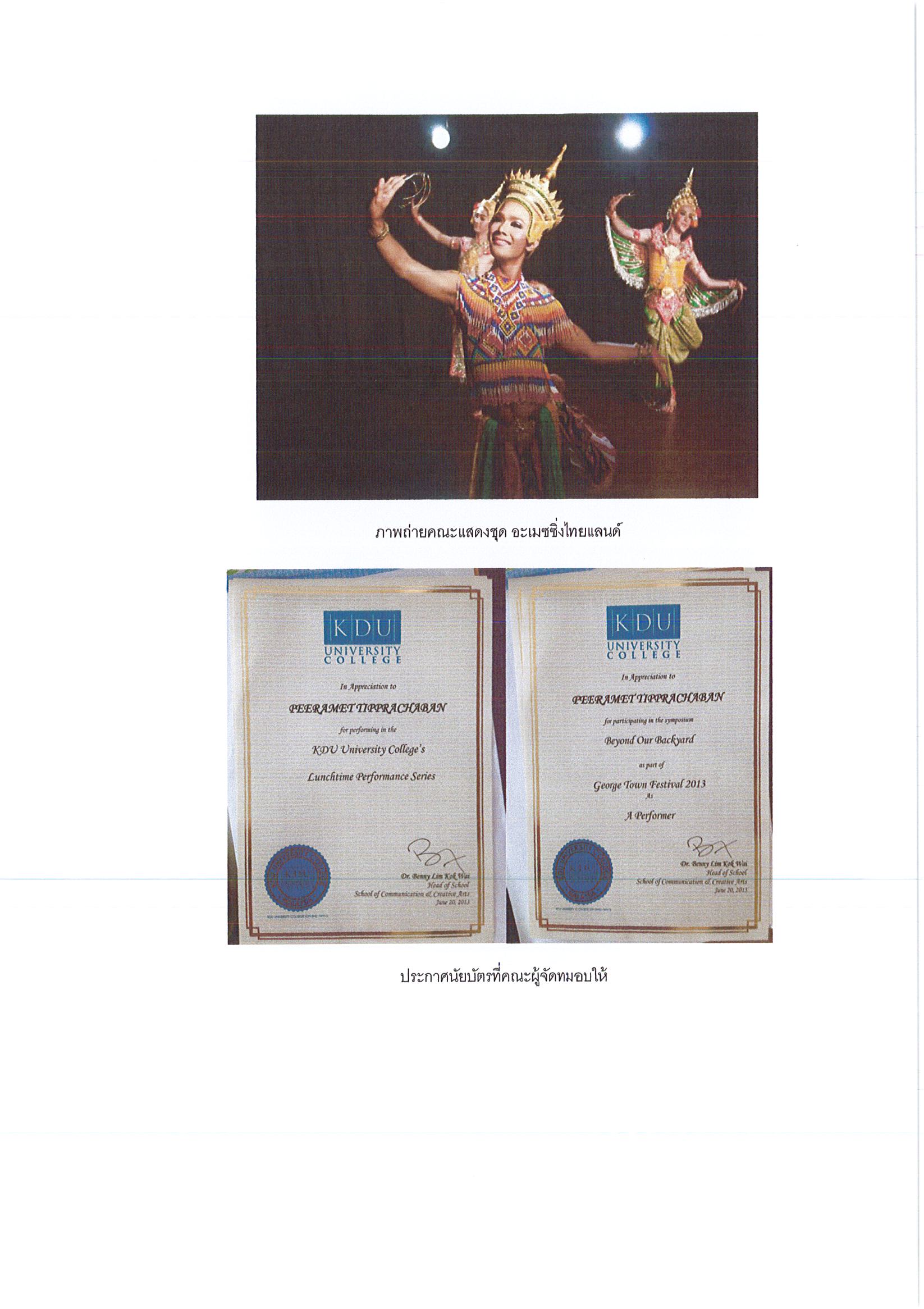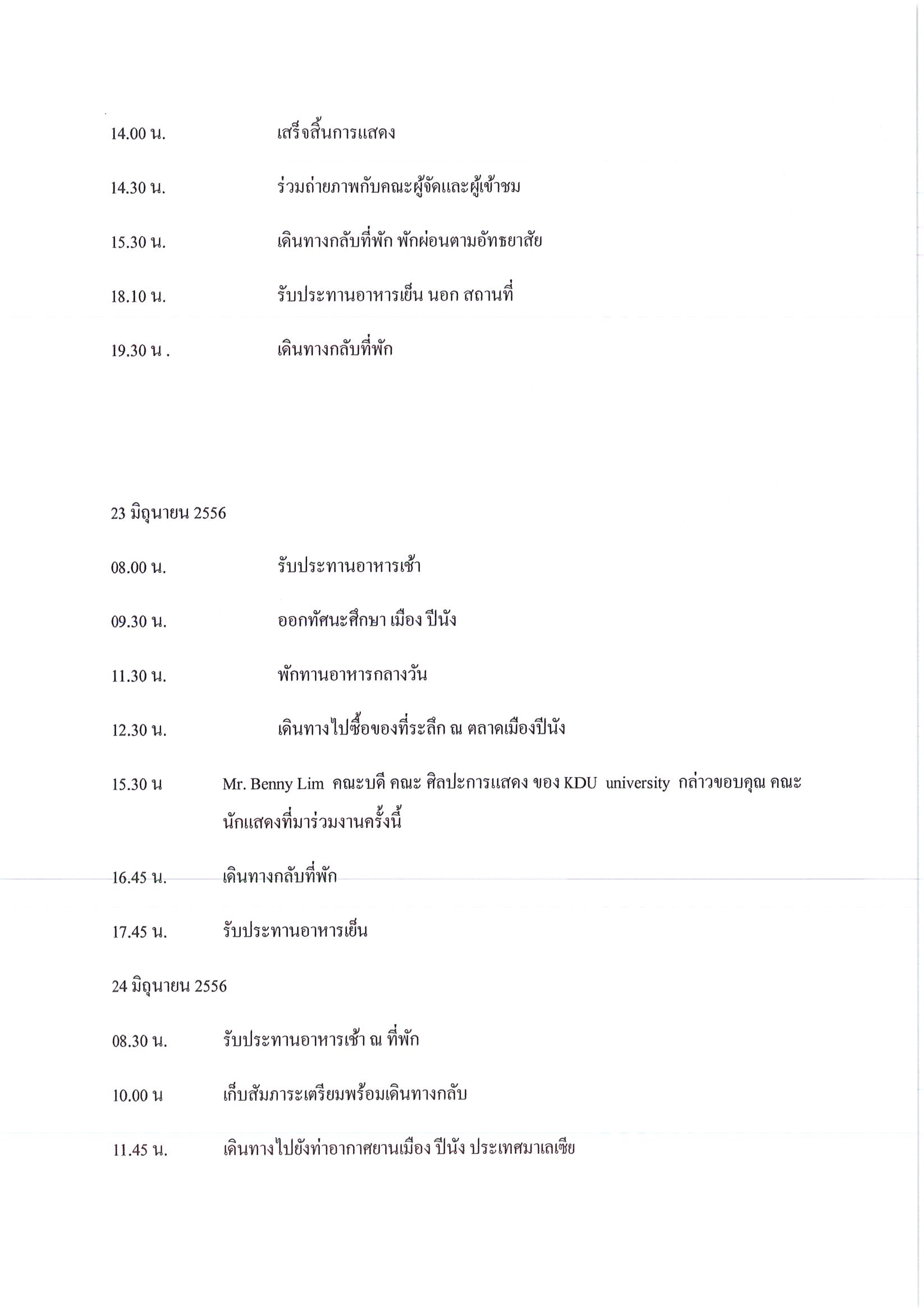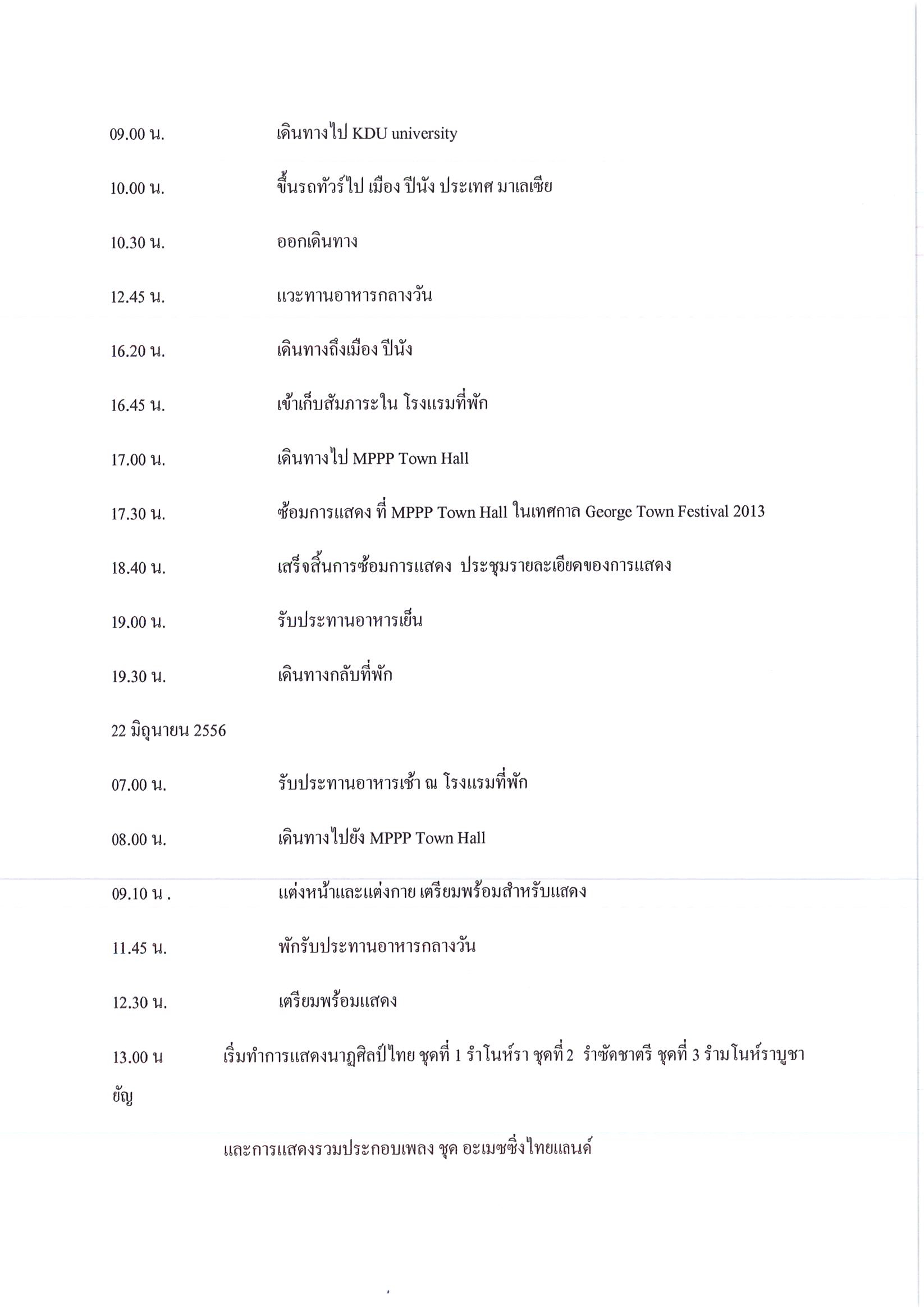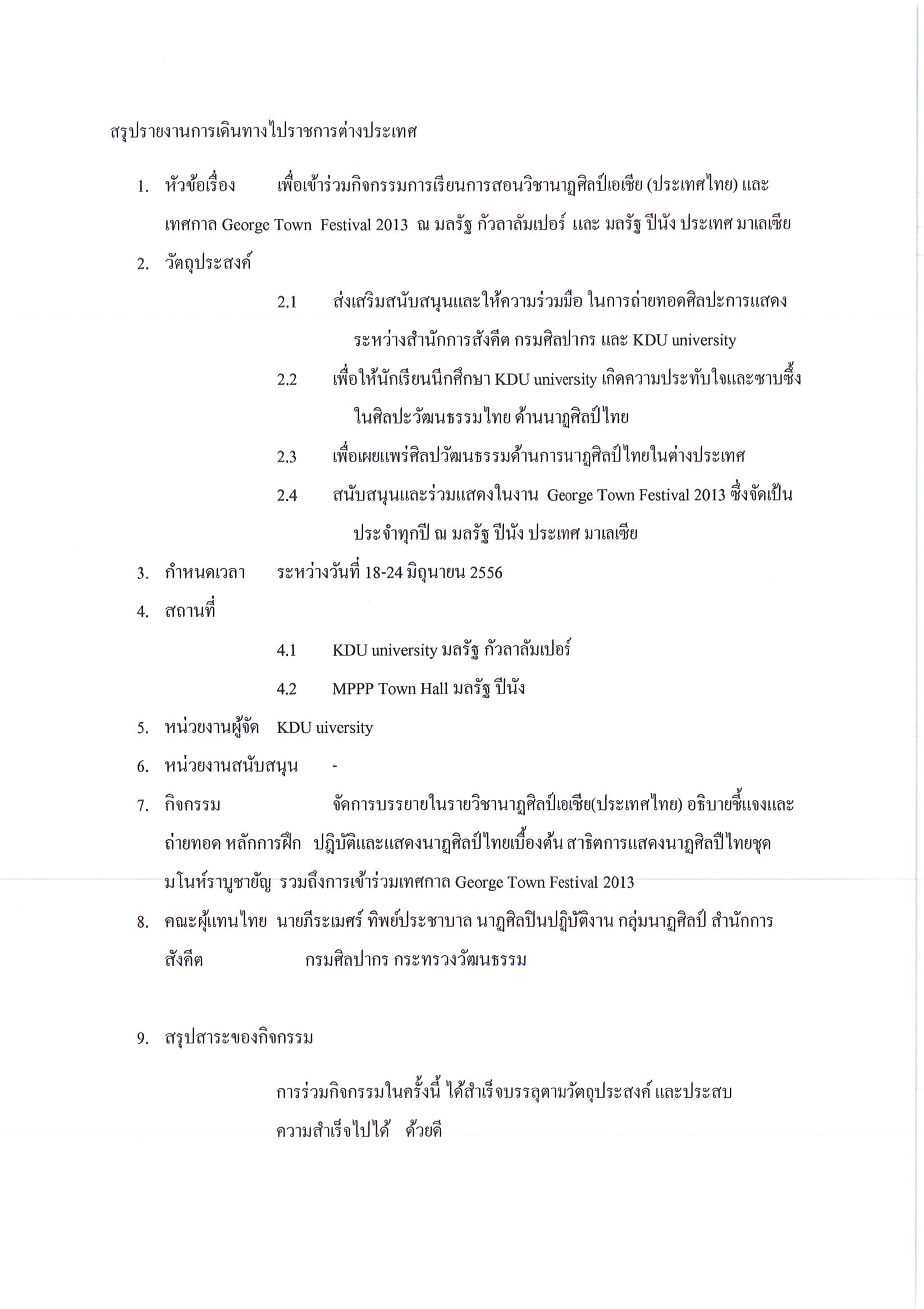 รายงานการเดินทางไปราชการ ณ สหพันธรัฐมาเลเซีย ระหว่างวันที่ 18 - 24 มิถุนายน 2556 โครงการเข้าร่วมการเรียนการสอนวิชานาฏศิลป์เอเชีย และเทศกาล Gorge Town Festival 2013 รัฐปีนัง