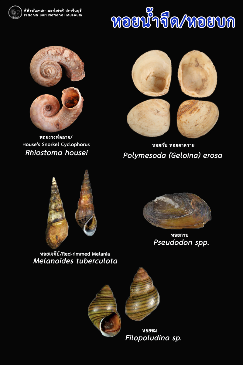 - หอยกาบน้ำจืด (Uniandra contradens tumidula) เป็นต้น