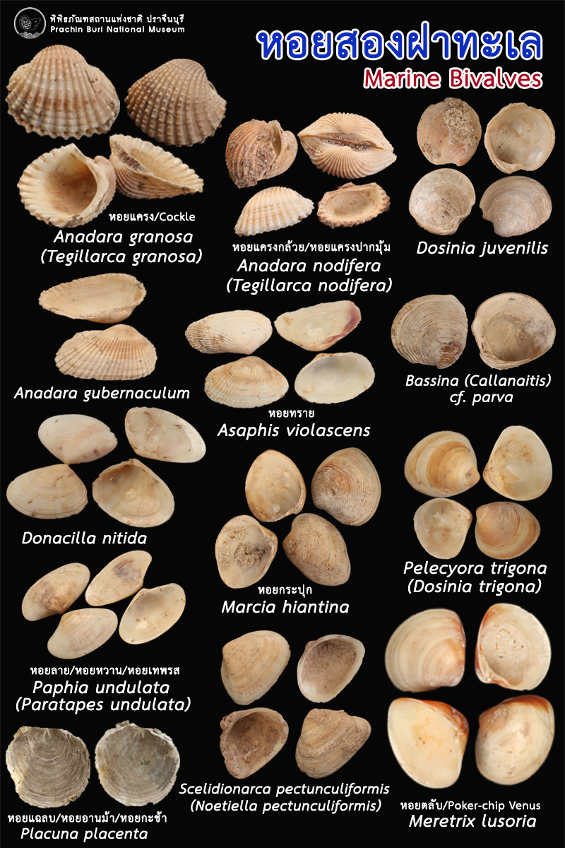 - หอยสองฝา (Marine Bivalves) ได้แก่