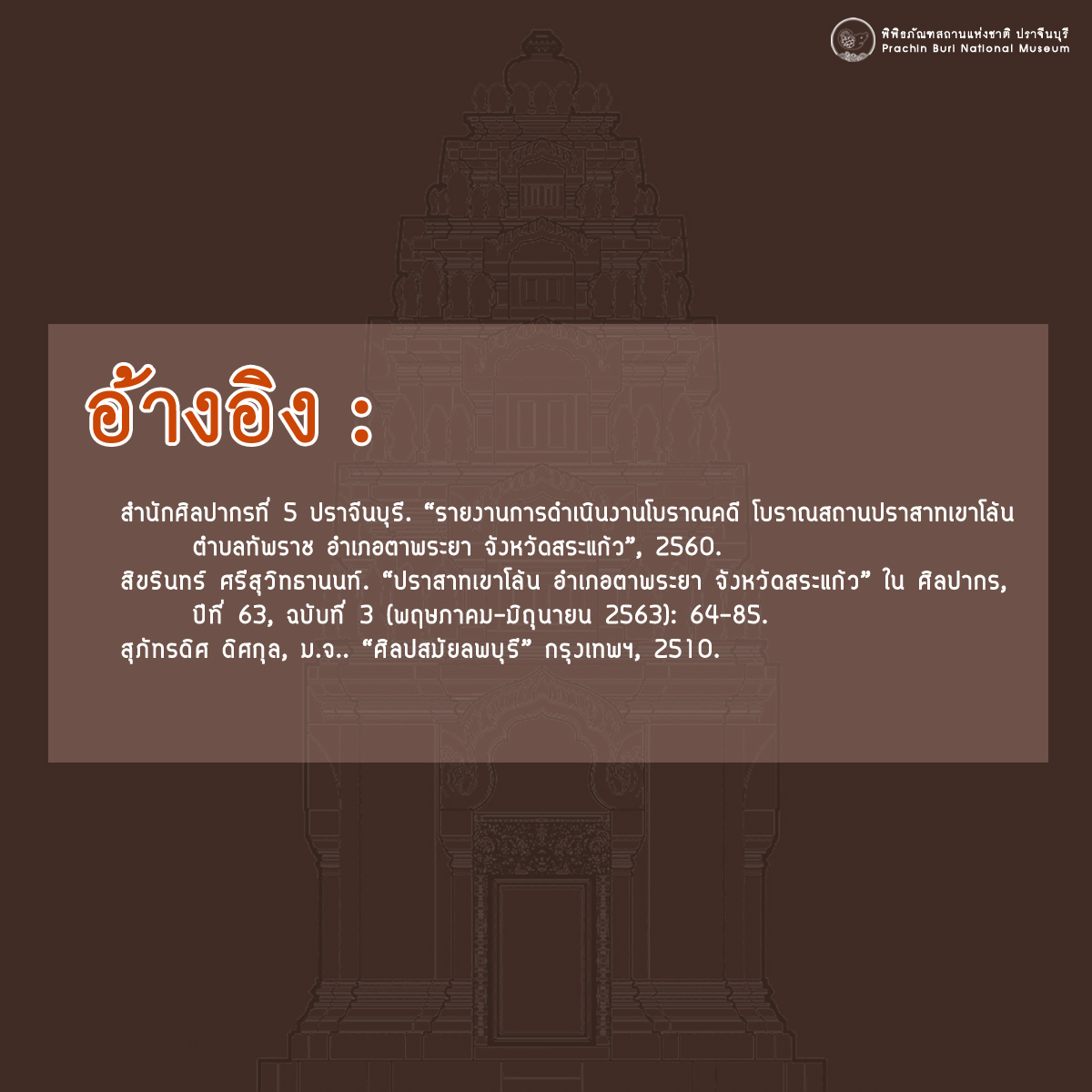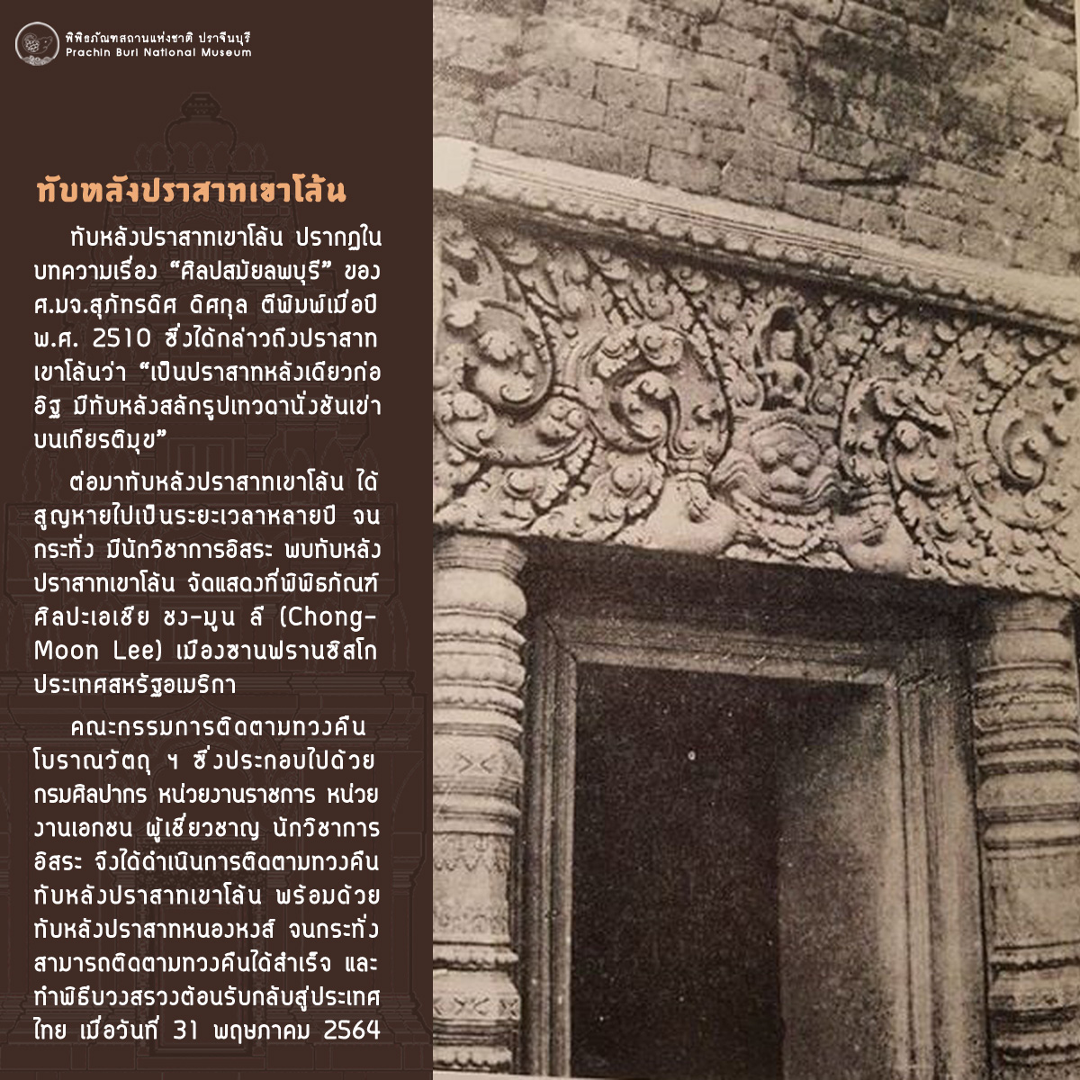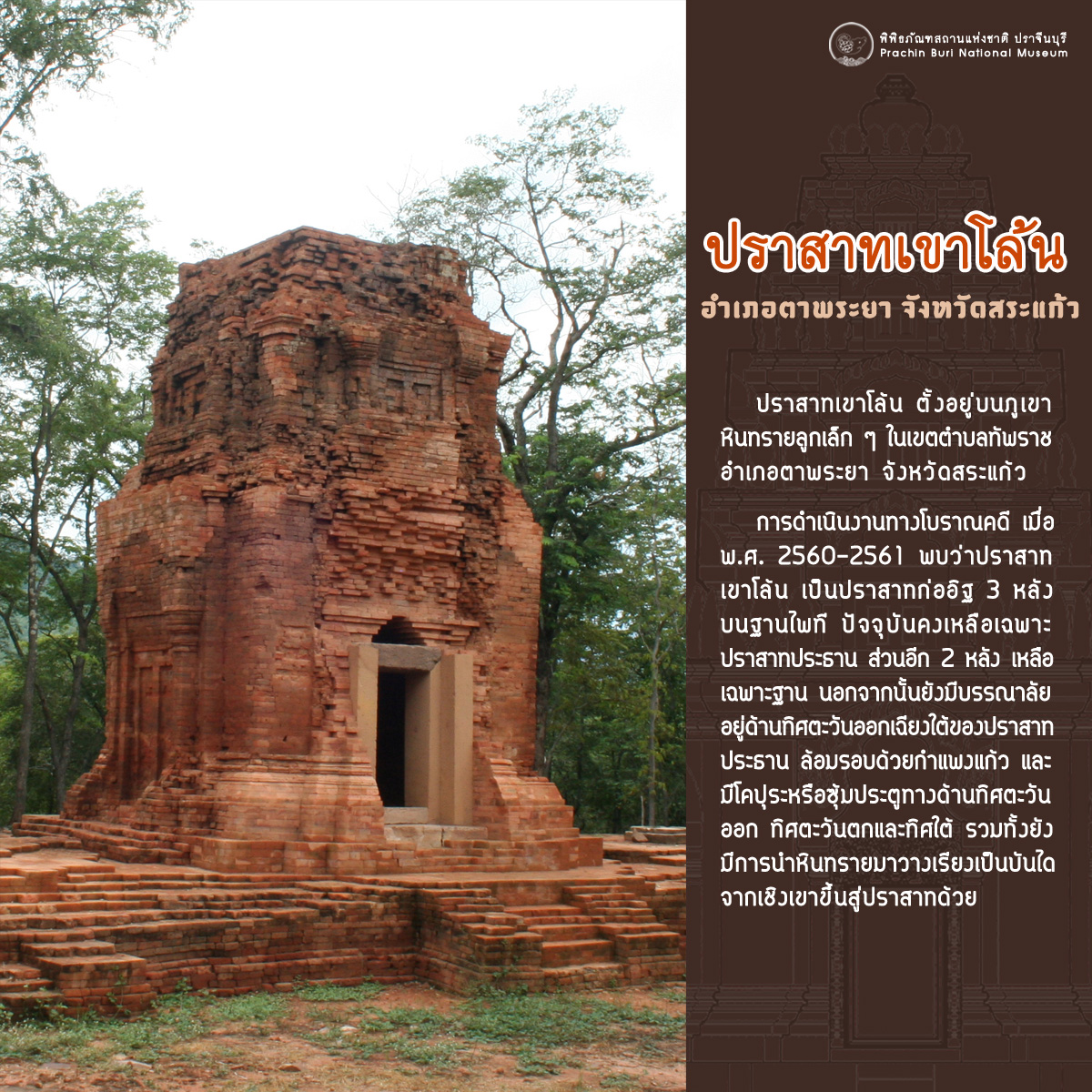 จากเรื่องราวการต้อนรับทับหลังปราสาทเขาโล้นและทับหลังปราสาทหนองหงส์กลับคืนสู่ประเทศไทยนั้น พิพิธภัณฑสถานแห่งชาติ ปราจีนบุรี ขอนำเสนอองค์ความรู้เกี่ยวกับปราสาทเขาโล้นและโบราณวัตถุสำคัญอื่น ๆ ที่พบจากปราสาทเขาโล้น