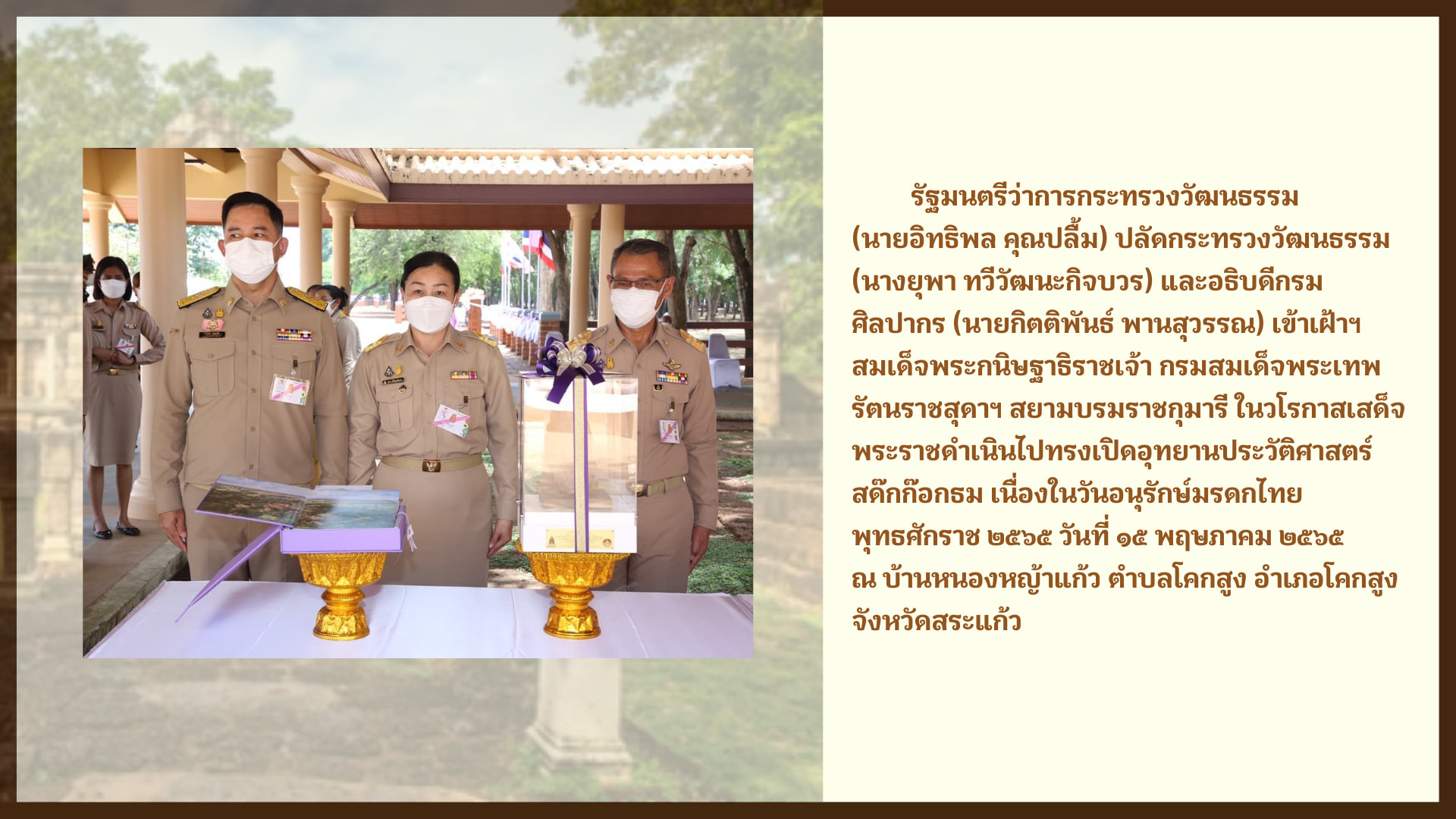 เกร็ดความรู้ของที่ระลึกเพื่อทูลเกล้าฯ ถวายแด่ สมเด็จพระกนิษฐาธิราชเจ้า กรมสมเด็จพระเทพรัตนราชสุดาฯ สยามบรมราชกุมารี ในวโรกาสเสด็จพระราชดำเนินไปทรงเปิดอุทยานประวัติศาสตร์สด๊กก๊อกธม เนื่องในวันอนุรักษ์มรดกไทย พุทธศักราช ๒๕๖๕ วันที่ ๑๕ พฤษภาคม ๒๕๖๕ ณ บ้านหนองหญ้าแก้ว ตำบลโคกสูง อำเภอโคกสูง จังหวัดสระแก้ว
