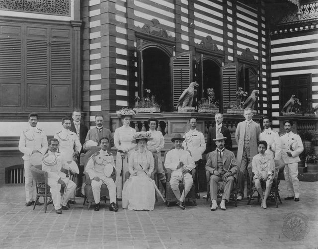 พระบาทสมเด็จพระจุลจอมเกล้าเจ้าอยู่หัว ประทับทรงฉายพระบรมรูปพร้อมด้วยคณะของดยุคโยฮันอัลเบิร์ตแห่งเม็คเคลนบวร์ก ที่พระที่นั่งอุทยานภูมิเสถียร พระราชวังบางปะอิน วันที่ ๘ กุมภาพันธ์ รัตนโกสินทรศก ๑๒๘ ประกอบด้วยบุคคลต่างๆ ดังนี้