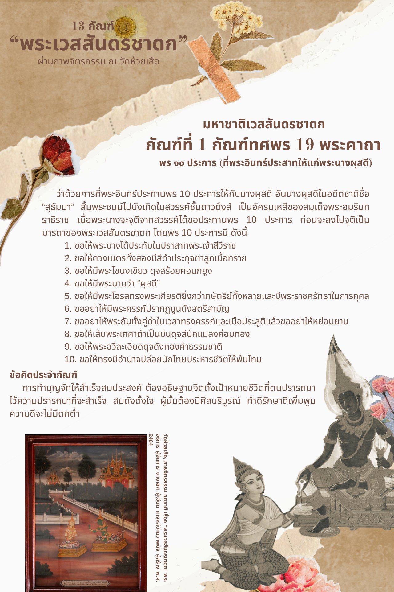 13 กัณฑ์ “พระเวสสันดรชาดก” ผ่านภาพจิตรกรรม ณ วัดห้วยเสือ ตอน กัณฑ์ที่ 1 ทศพร 19 พระคาถา