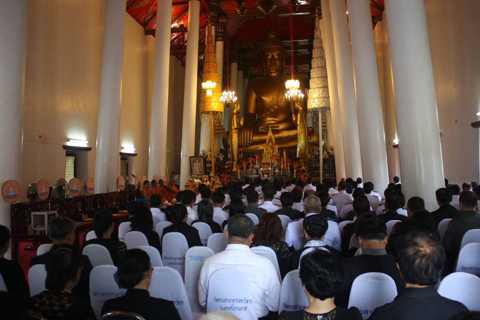 ข้าราชการ พ่อค้า ประชาชน ชาวจังหวัดนครศรีธรรมราช ร่วมพิธีบำเพ็ญกุศลสวดพระอภิธรรมเพื่อถวายเป็นพระราชกุศล พระบาทสมเด็จพระปรมินทรมหาภูมิพลอดุลยเดชฯ ณ พระวิหารหลวง วัดพระมหาธาตุวรมหาวิหาร จังหวัดนครศรีธรรมราช ในวันพฤหัสบดีที่ 10 พฤศจิกายน 2559 เวลา 15.52 น. โดยมีนายดนัย เจียมวิเศษสุข รองผู้ว่าราชการจังหวัดนครศรีธรรมราช เป็นประธานในพิธี