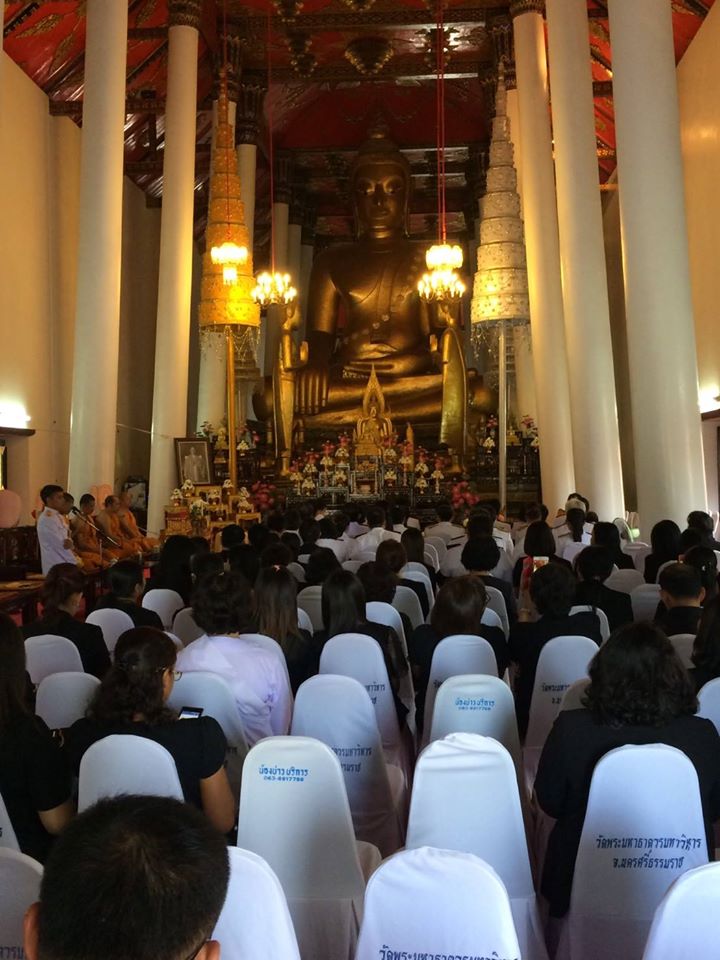 ข้าราชการ พ่อค้า ประชาชน ชาวจังหวัดนครศรีธรรมราช ร่วมพิธีบำเพ็ญกุศลสวดพระอภิธรรมเพื่อถวายเป็นพระราชกุศล พระบาทสมเด็จพระปรมินทรมหาภูมิพลอดุลยเดชฯ ณ พระวิหารหลวง วัดพระมหาธาตุวรมหาวิหาร จังหวัดนครศรีธรรมราช ในวันอาทิตย์ที่ 6 พฤศจิกายน 2559 เวลา 15.52 น. โดยมีนายสกล จันทรักษ์ รองผู้ว่าราชการจังหวัดนครศรีธรรมราช เป็นประธานในพิธี