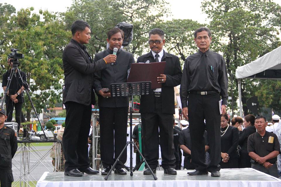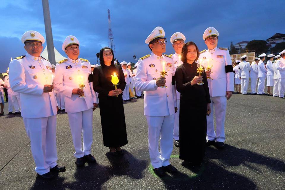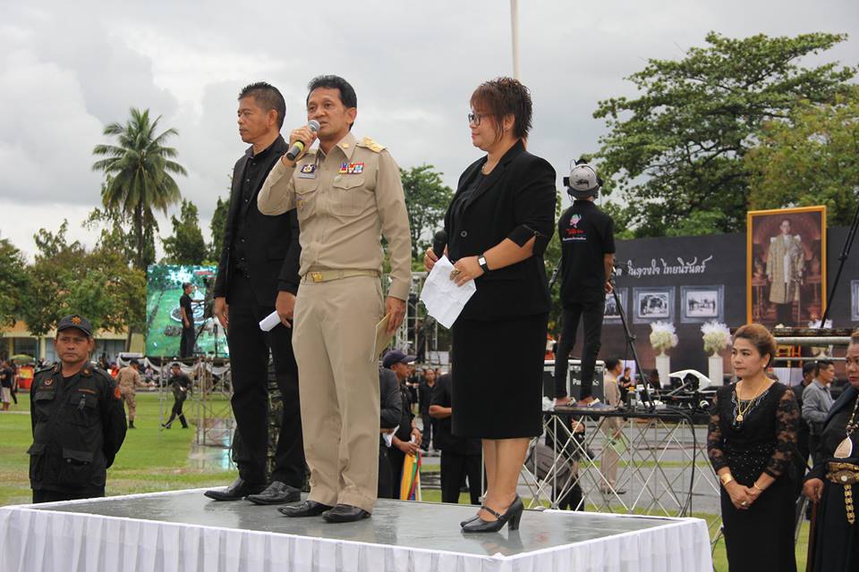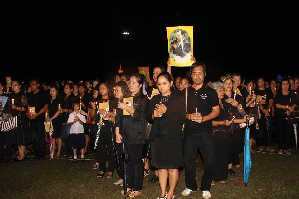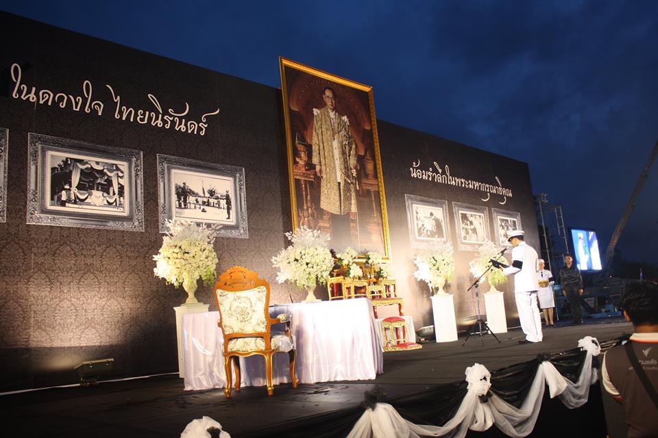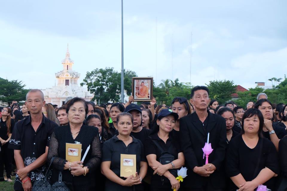 เมื่อเวลา 18.00 น. นายจำเริญ ทิพญพงศ์ธาดา ผู้ว่าราชการจังหวัดนครศรีธรรมราช ประธานในพิธีได้ถวายความเคารพ ลงนามแสดงความอาลัย กล่าวนำแสดงความอาลัยและรำลึกในพระมหากรุณาธิคุณ และกล่าวคำสัตย์ปฏิญาณ ยืนสงบนิ่งเป็นเวลา 89 วินาที จุดเทียนแสดงความอาลัย และร่วมร้องเพลงสรรเสริญพระบารมี ส่วนความหมายของอักษรคือ พระบรมธาตุเจดีย์ หมายถึงตัวแทนพระพุทธเจ้า ซึ่งพระบาทสมเด็จพระปรมินทรมหาภูมิพลอดุลยเดช ได้เสด็จพระราชดำเนินทรงประกอบพระราชกรณียกิจ ณ พระบรมธาตุนครศรีธรรมราช วัดพระมหาธาตุวรมหาวิหาร ถึง 4 ครั้ง ส่วนเลข ๙ ไทย หมายถึง ในหลวงรัชกาลที่ 9 และข้อความอักษร "นครศรีธรรมราช" และรูปหัวใจสีขาว หมายถึง การรวมพลังความเป็นหนึ่งเดียวกันของชาวนครศรีธรรมราชทุกหมู่เหล่า เพื่อแสดงออกถึงความจงรักภักดี และรำลึกในพระมหากรุณาธิคุณหาที่สุดมิได้ ที่พระบาทสมเด็จพระปรมินทรมหาภูมิพลอดุลยเดช มีต่อพสกนิกรชาวนครศรีธรรมราช และปวงชนชาวไทยทั้งประเทศ