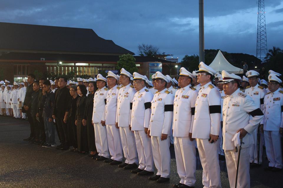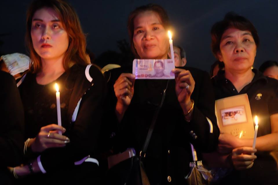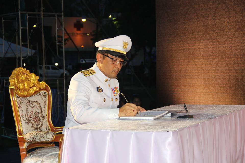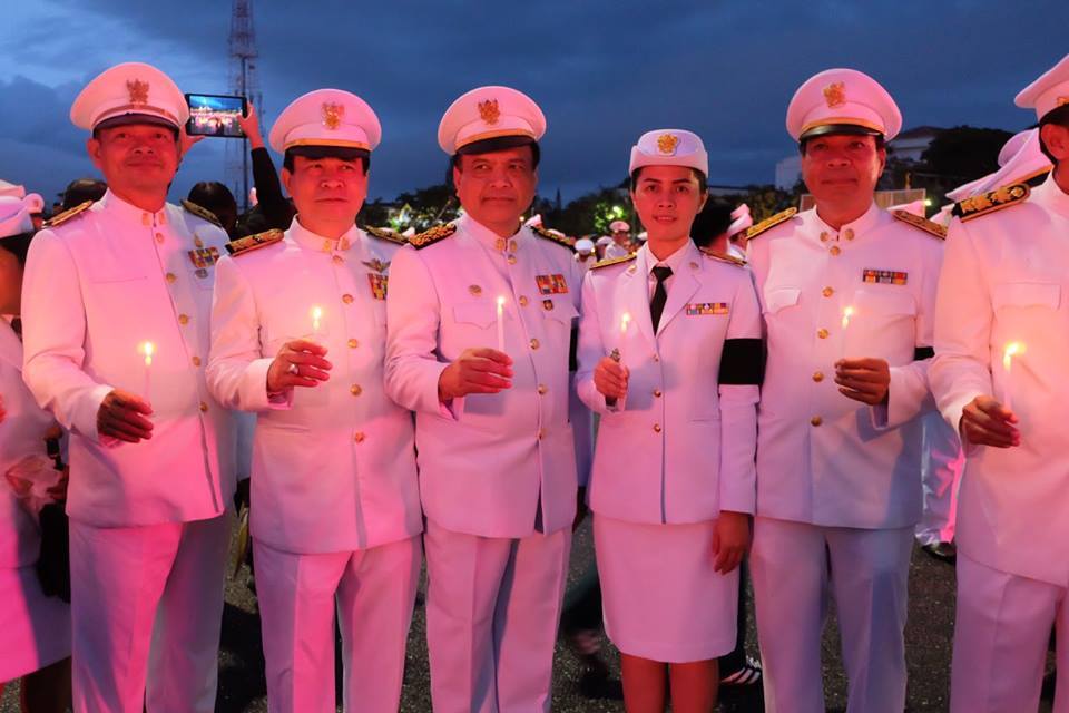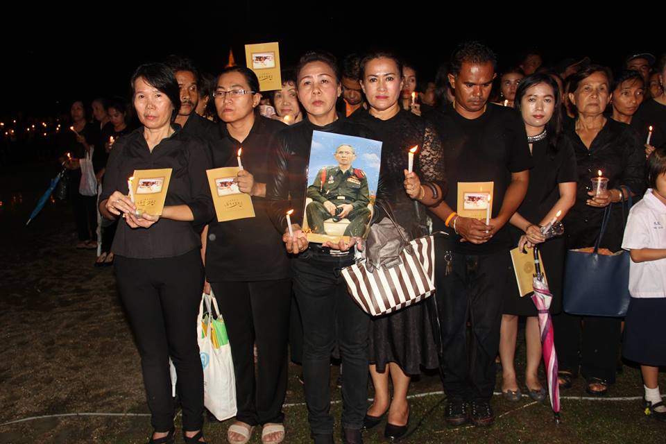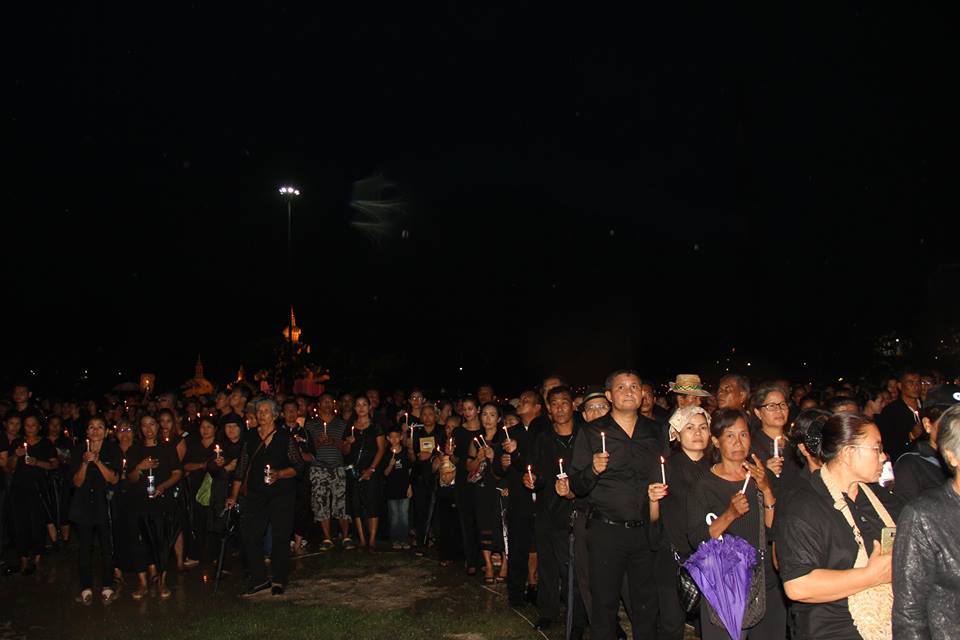 เมื่อเวลา 18.00 น. นายจำเริญ ทิพญพงศ์ธาดา ผู้ว่าราชการจังหวัดนครศรีธรรมราช ประธานในพิธีได้ถวายความเคารพ ลงนามแสดงความอาลัย กล่าวนำแสดงความอาลัยและรำลึกในพระมหากรุณาธิคุณ และกล่าวคำสัตย์ปฏิญาณ ยืนสงบนิ่งเป็นเวลา 89 วินาที จุดเทียนแสดงความอาลัย และร่วมร้องเพลงสรรเสริญพระบารมี ส่วนความหมายของอักษรคือ พระบรมธาตุเจดีย์ หมายถึงตัวแทนพระพุทธเจ้า ซึ่งพระบาทสมเด็จพระปรมินทรมหาภูมิพลอดุลยเดช ได้เสด็จพระราชดำเนินทรงประกอบพระราชกรณียกิจ ณ พระบรมธาตุนครศรีธรรมราช วัดพระมหาธาตุวรมหาวิหาร ถึง 4 ครั้ง ส่วนเลข ๙ ไทย หมายถึง ในหลวงรัชกาลที่ 9 และข้อความอักษร "นครศรีธรรมราช" และรูปหัวใจสีขาว หมายถึง การรวมพลังความเป็นหนึ่งเดียวกันของชาวนครศรีธรรมราชทุกหมู่เหล่า เพื่อแสดงออกถึงความจงรักภักดี และรำลึกในพระมหากรุณาธิคุณหาที่สุดมิได้ ที่พระบาทสมเด็จพระปรมินทรมหาภูมิพลอดุลยเดช มีต่อพสกนิกรชาวนครศรีธรรมราช และปวงชนชาวไทยทั้งประเทศ
