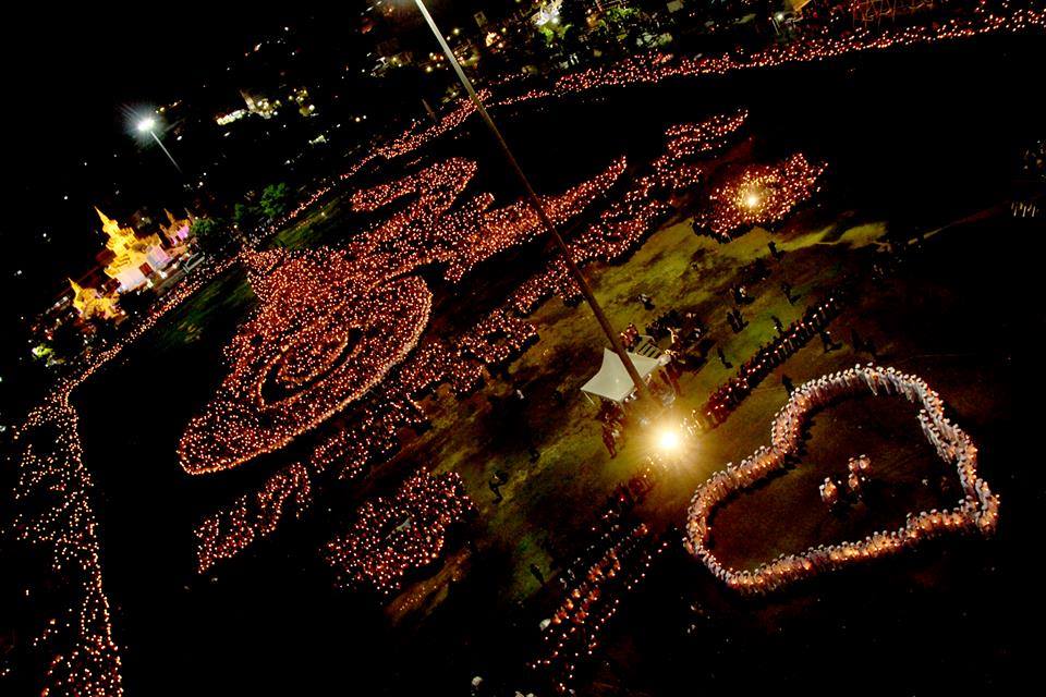 เมื่อวันจันทร์ที่ 31 ตุลาคม 2559 เวลา 13.00 - 19.00 น. ชาวนครศรีธรรมราชทุกหมู่เหล่า กว่า 20,000 คน ร่วมสร้างประวัติศาสตร์ รวมพลังครั้งยิ่งใหม่ เข้าร่วมกิจกรรมแปรอักษรเลข ๙ คู่องค์พระบรมธาตุเจดีย์ยอดทองคำ และข้อความนครศรีธรรมราช พร้อมรูปหัวใจสีขาว ณ สนามหน้าเมืองนครศรีธรรมราช ท่ามกลางสายฝนที่ตกหนัก